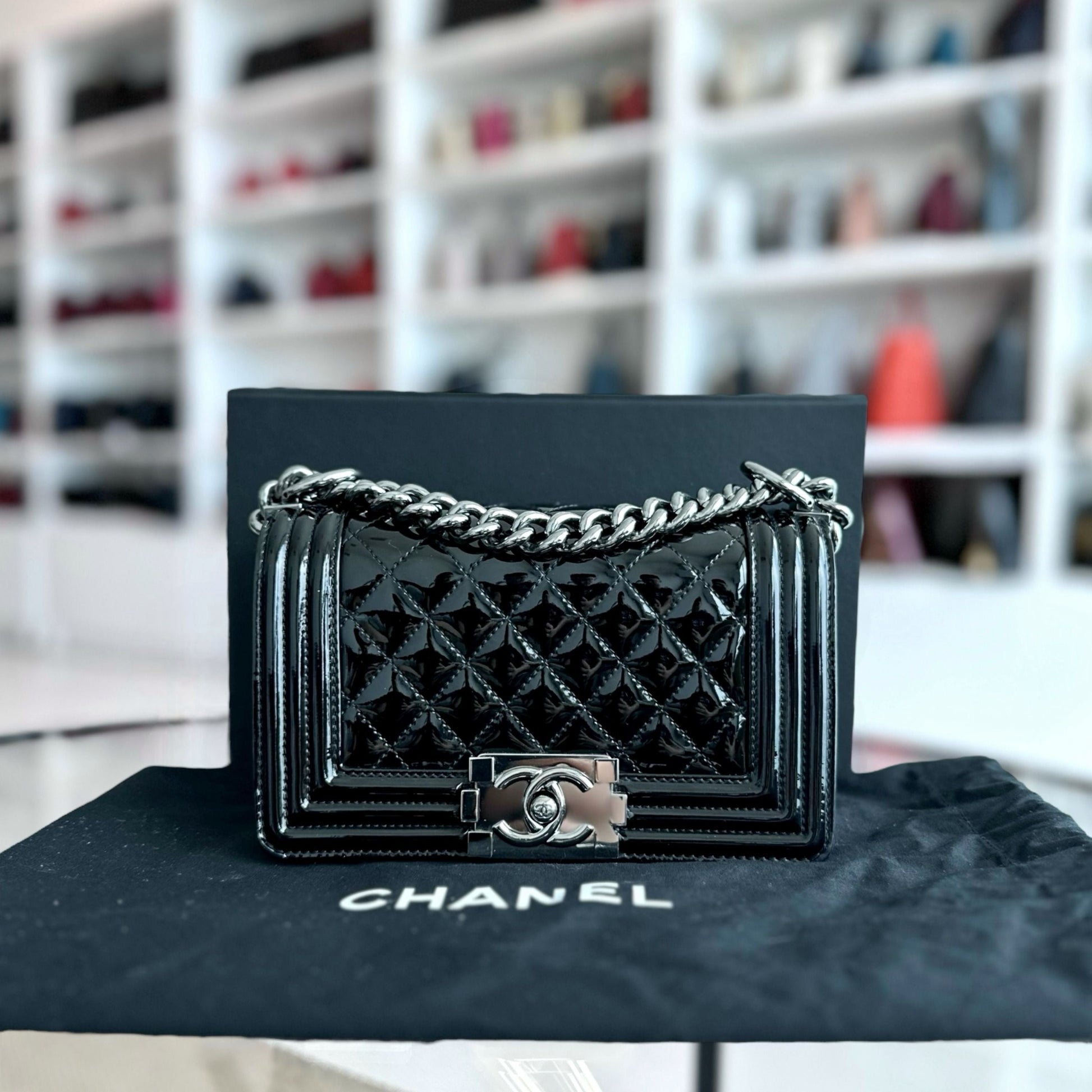 Boy Small 20CM Quilted Patent Leather Leboy Black SHW No 19
