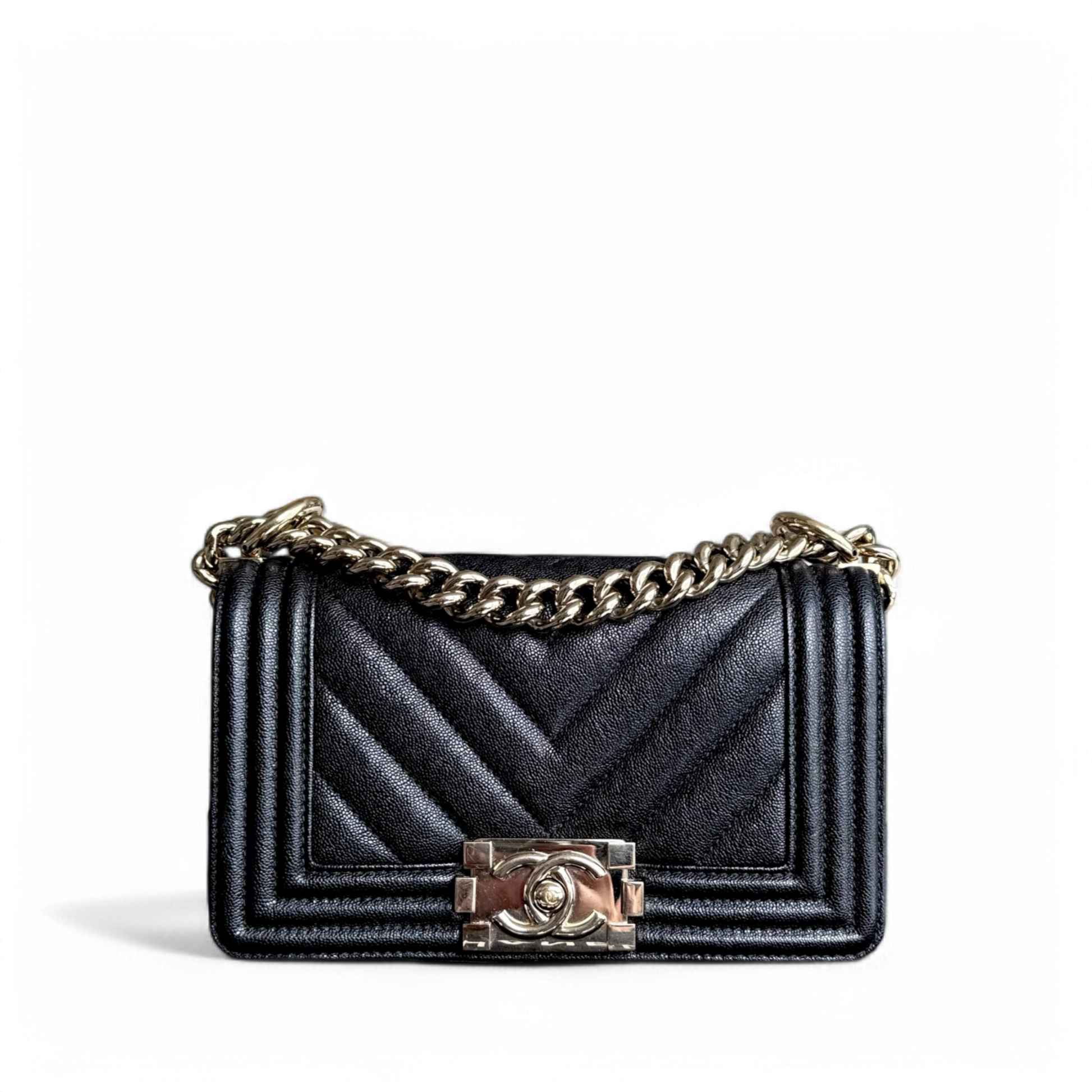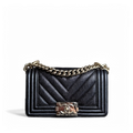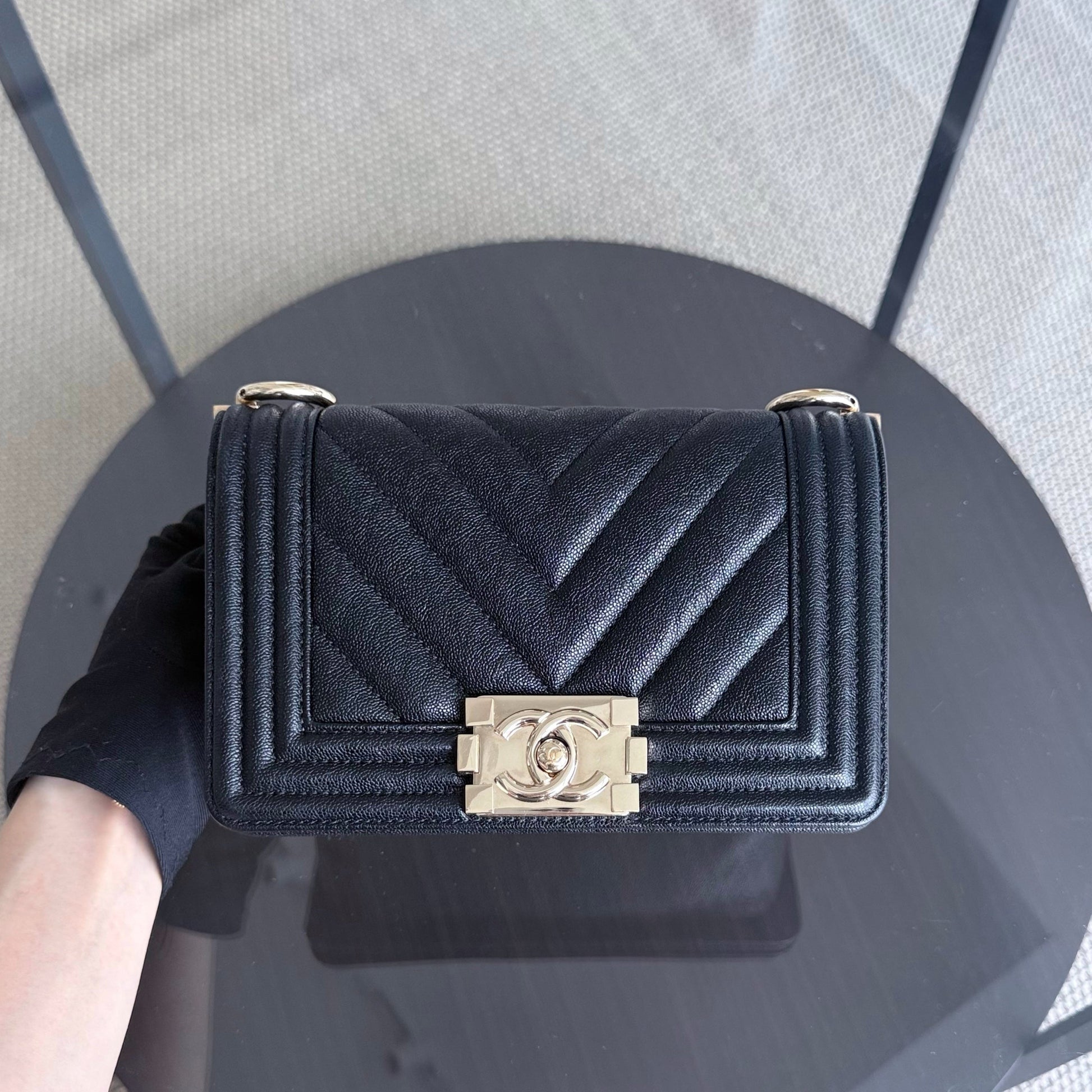 Chanel Boy Small - Caviar 20CM Chevron Black Shiny Gold Hardware Series 27