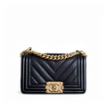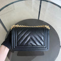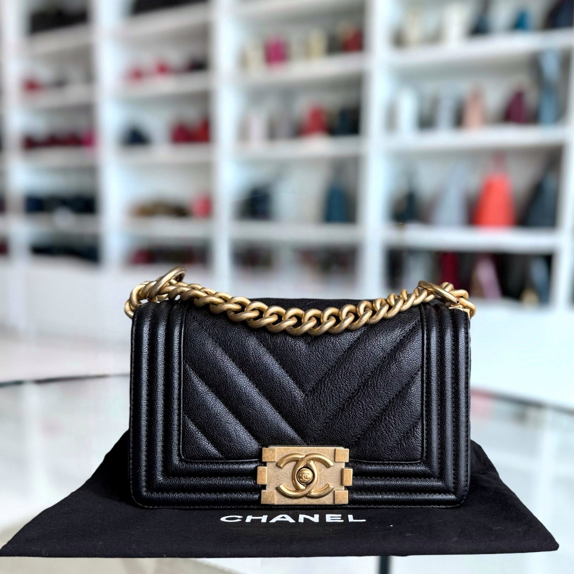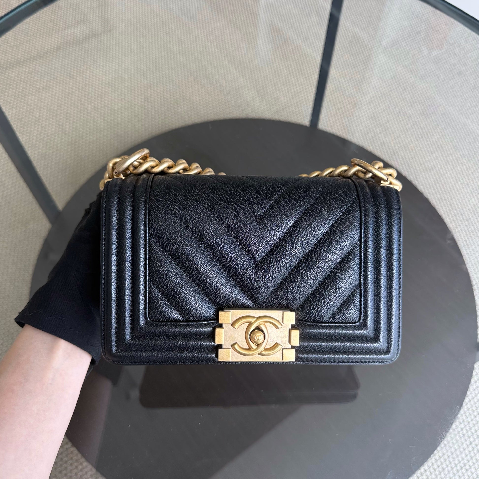 Chanel Boy Small - Caviar Chevron 20CM Black Gold Hardware