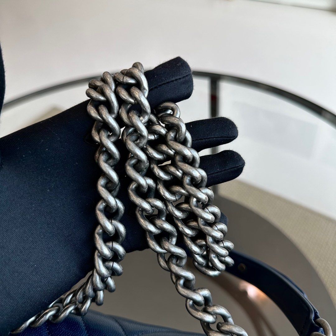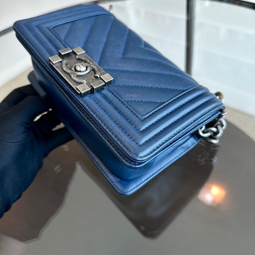 Boy Small Caviar Chevron Calfskin Leboy Dark Navy Blue Ruthenium RSHW No 25