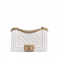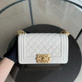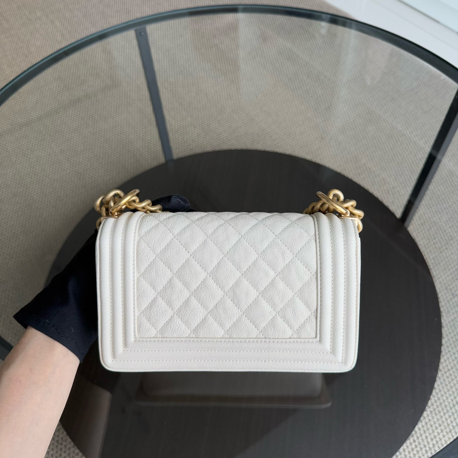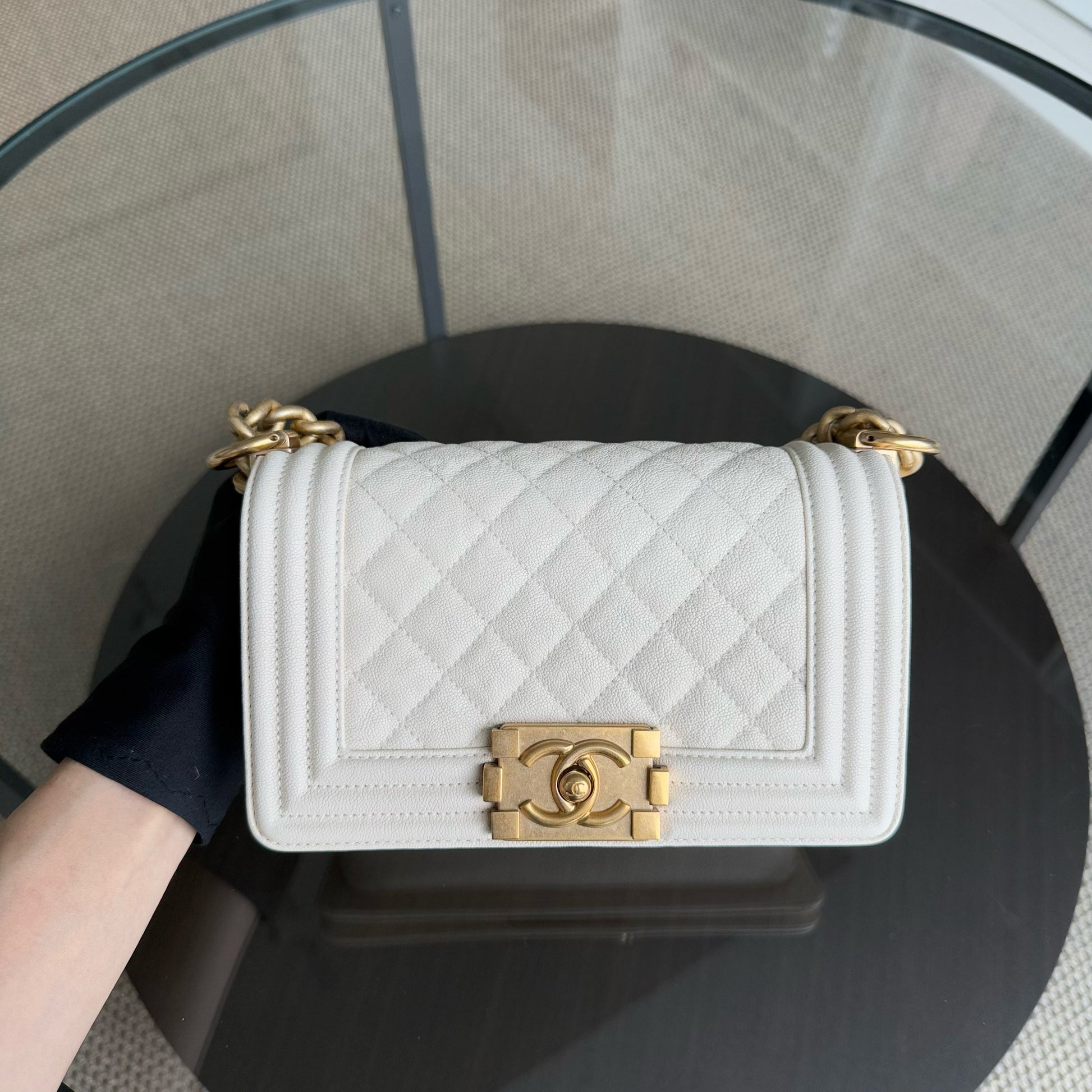 Chanel Boy Small - Caviar Quilted Cream White Gold Hardware