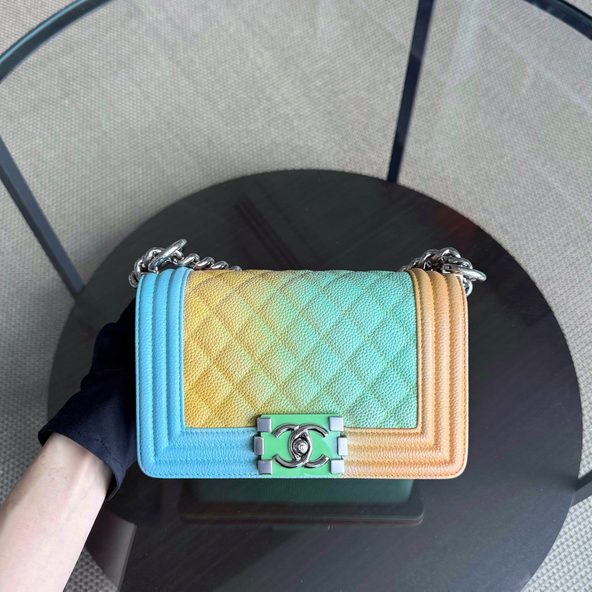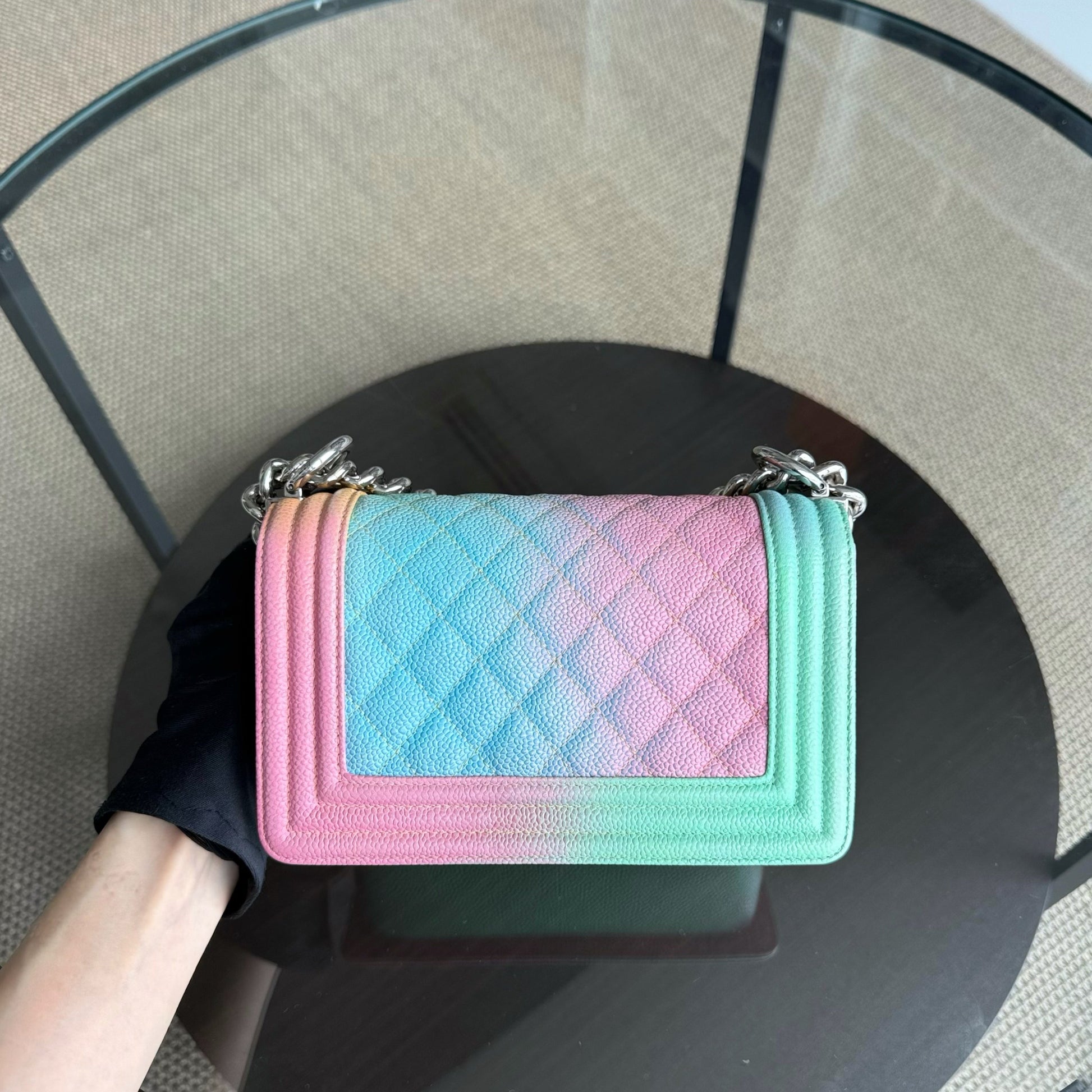 Chanel Boy Small - Caviar Quilted Grained Calfskin Rainbow Limited Edition Silver Hardware Series 23