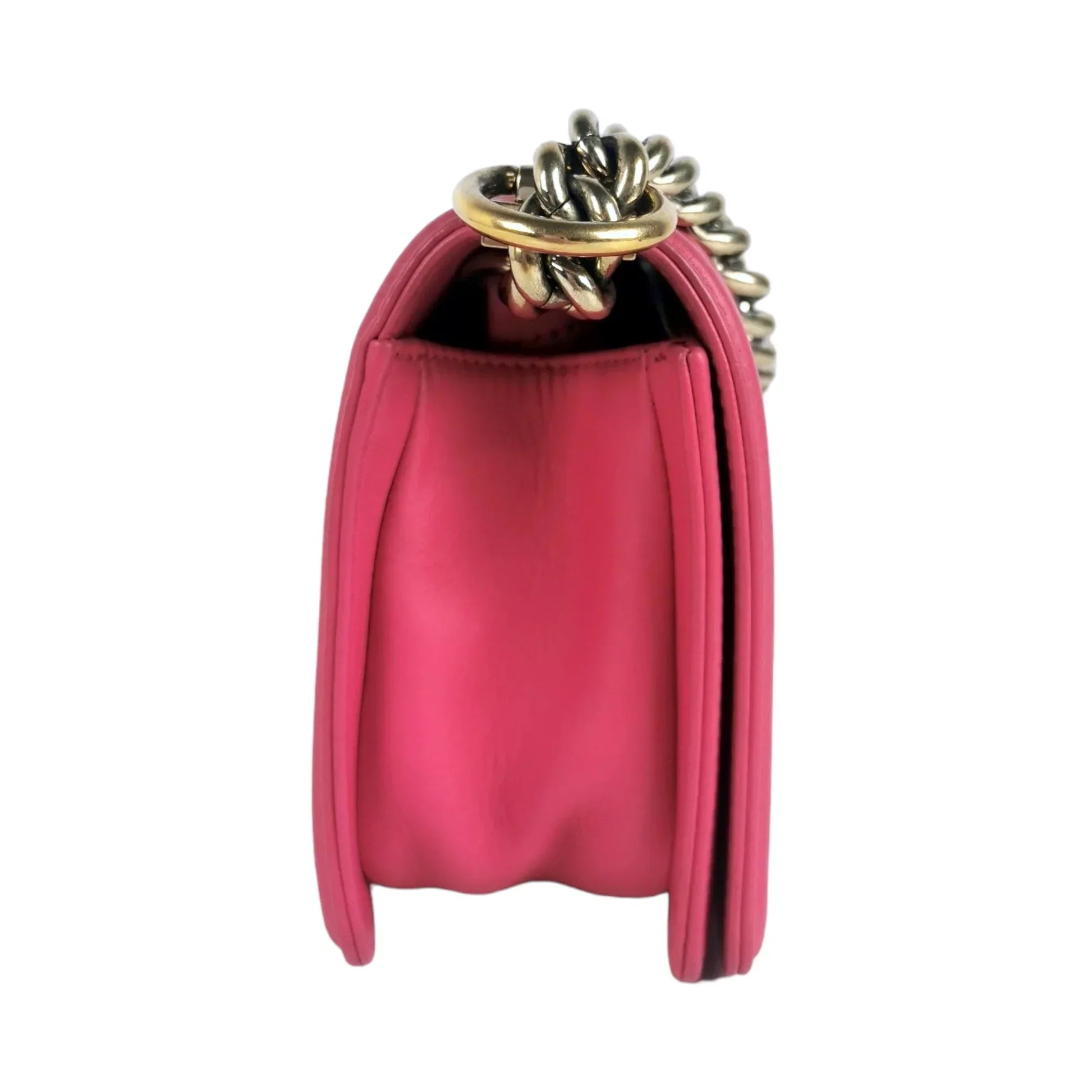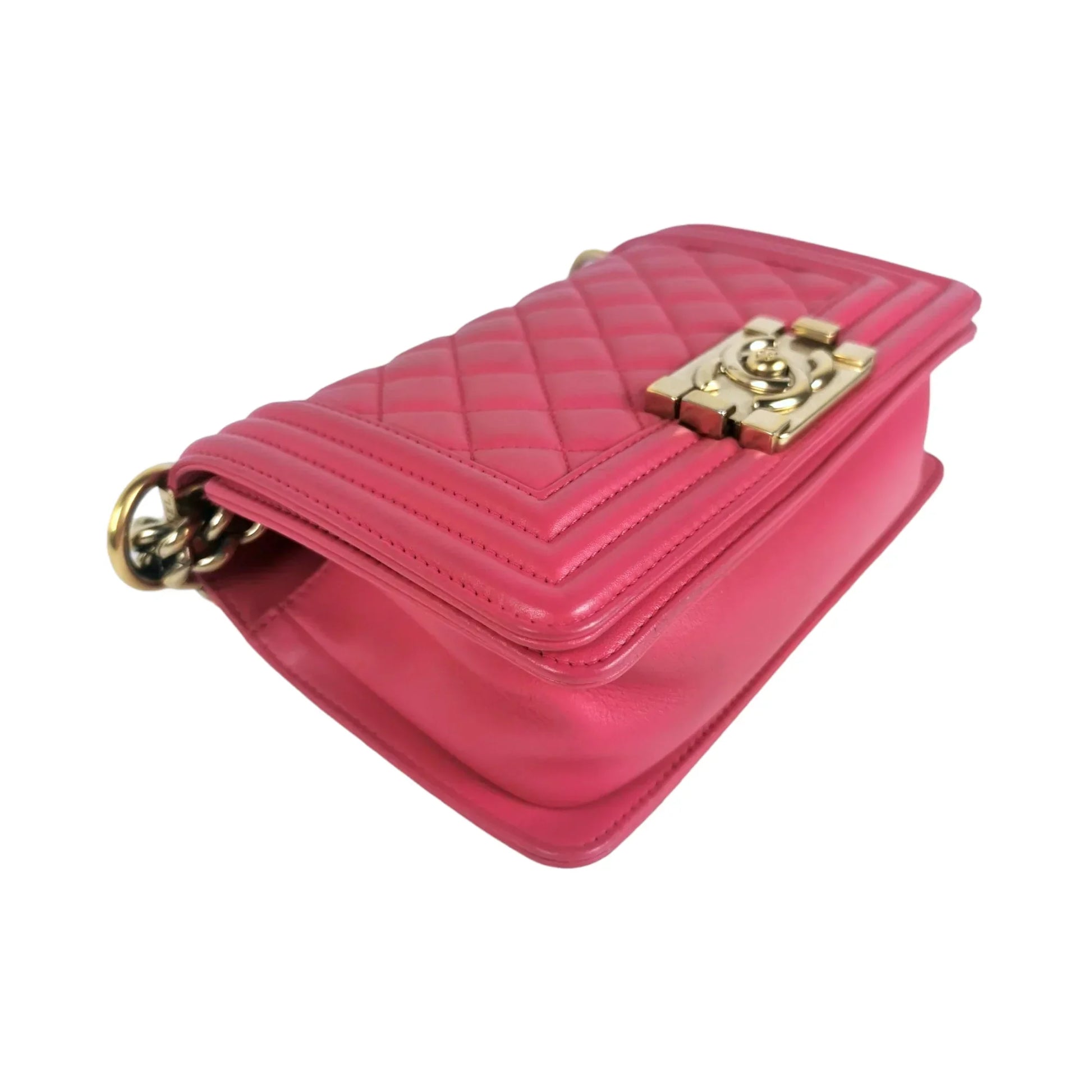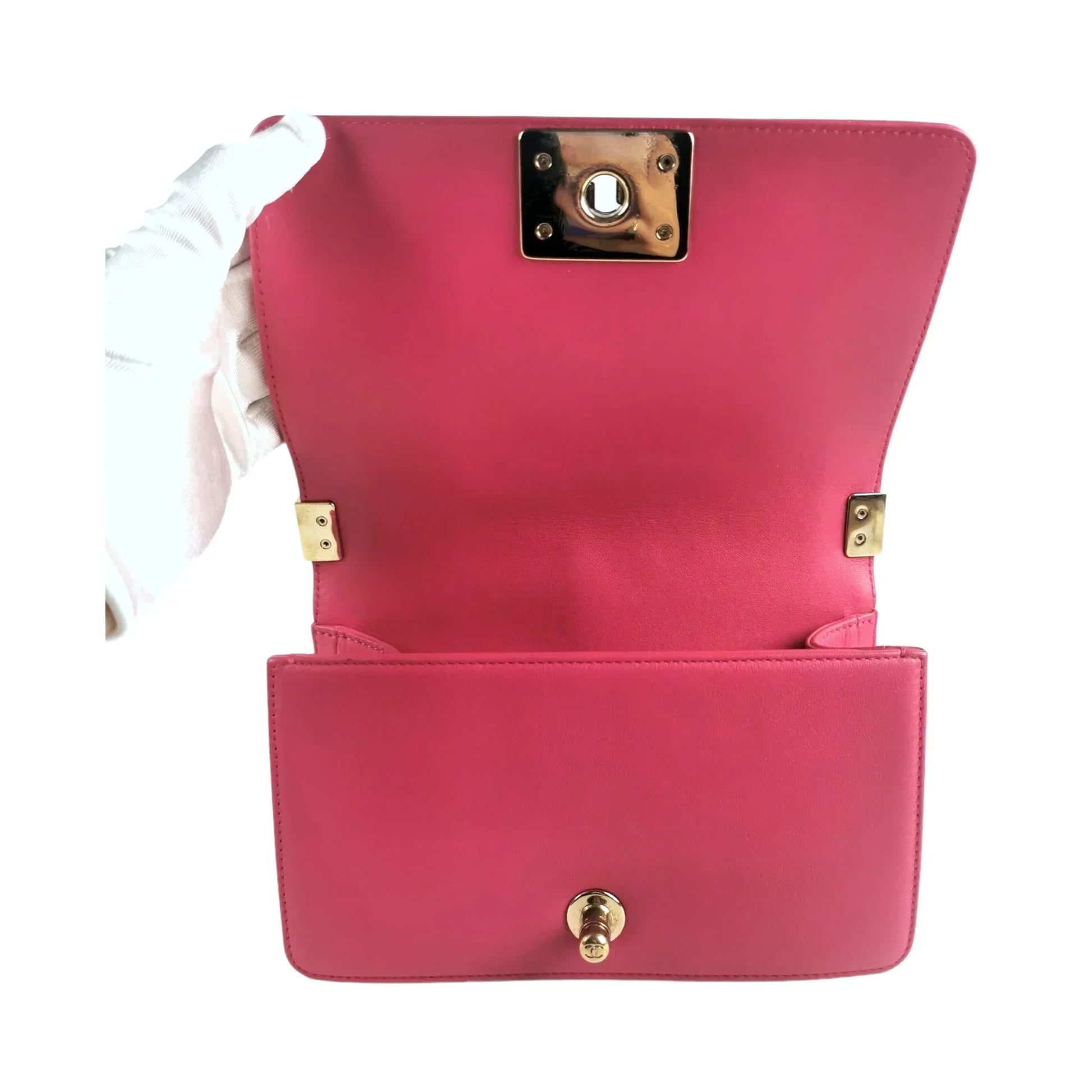 The Chanel Boy Bag was created by Karl Lagerfeld in 2011. The name bears the Bag in honor of Arthur "Boy" Capel, the childhood sweetheart of Coco Chanel. It is already one of the classics and impresses above all with its clean lines and simple elegance. The interior is lined with fine textile and has an open compartment.