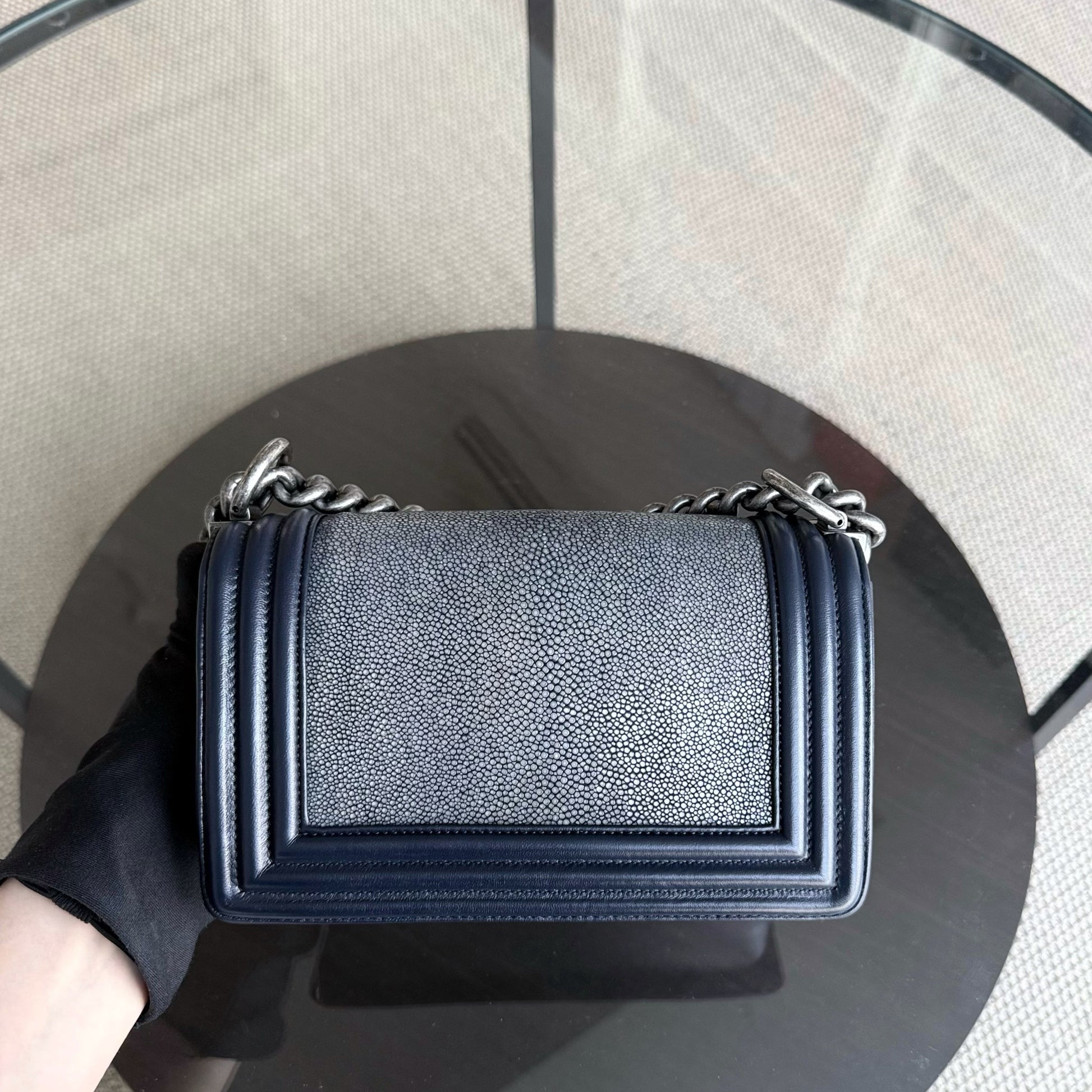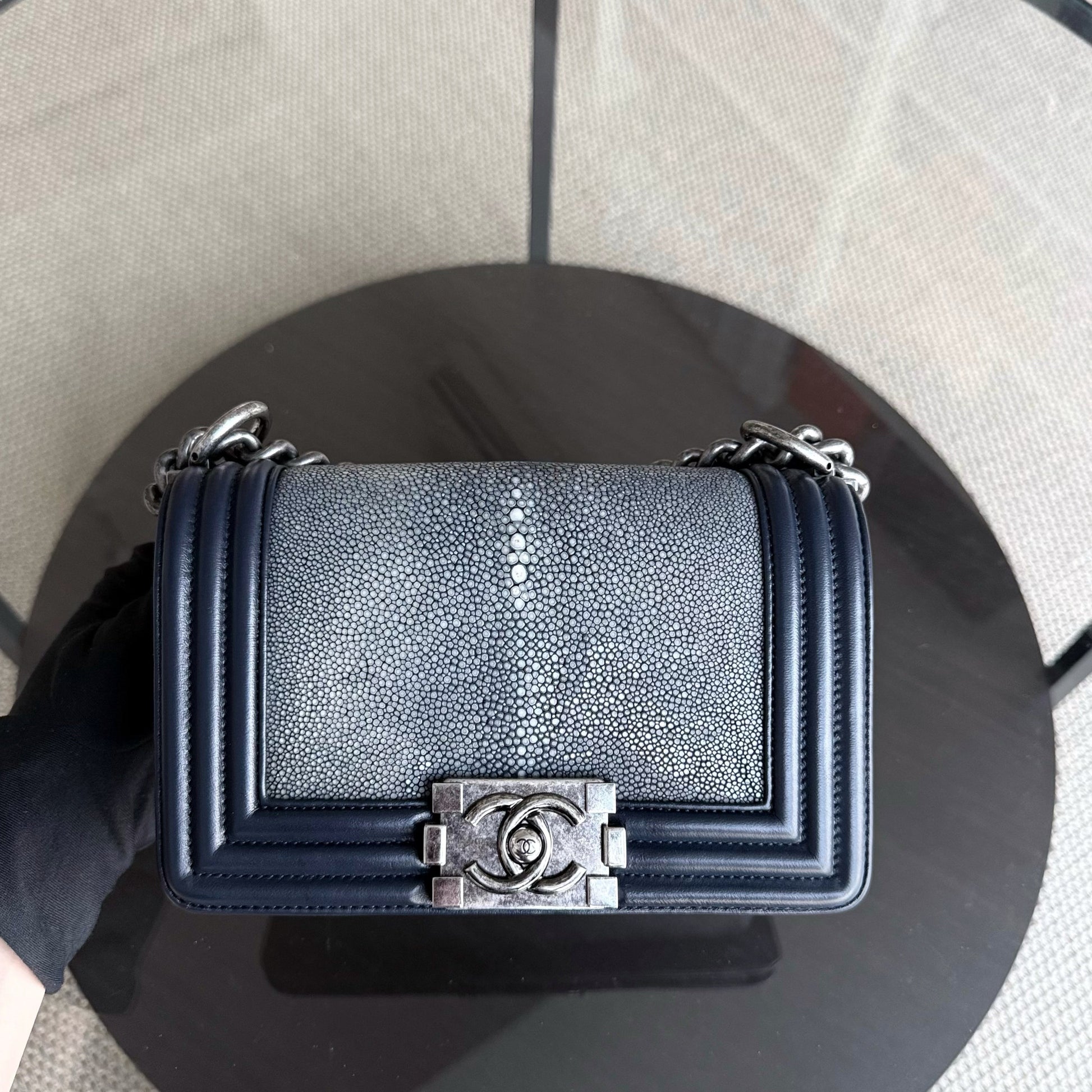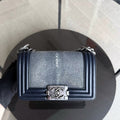 Chanel Boy Small - Small Galuchat Stingray Blue Ruthenium Silver Hardware Series 20