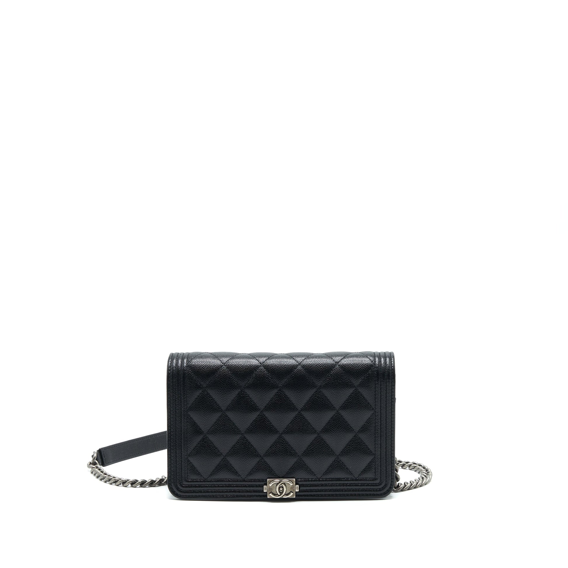 Chanel Boy Wallet On Chain Caviar Black Ruthenium Hardware (Microchip)