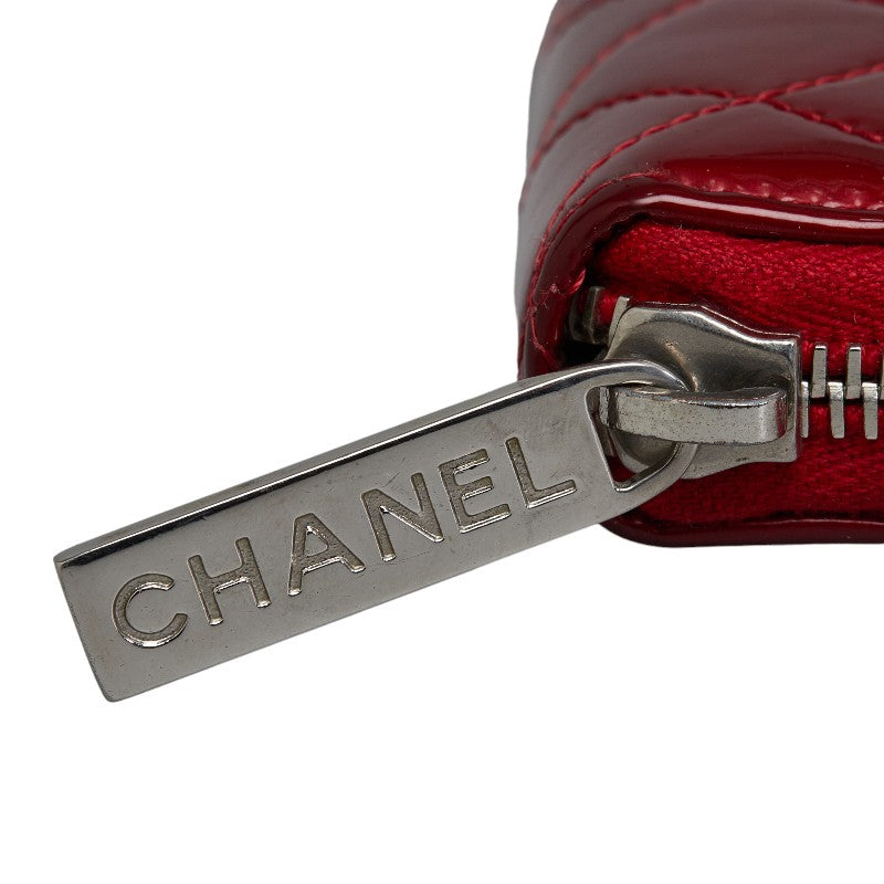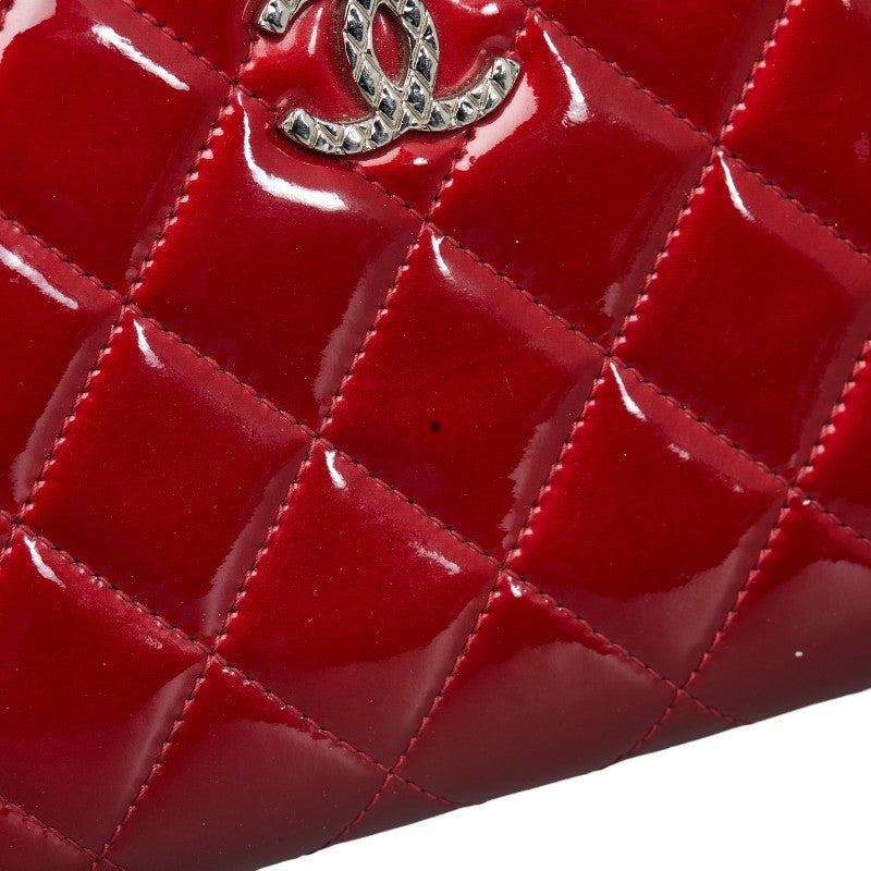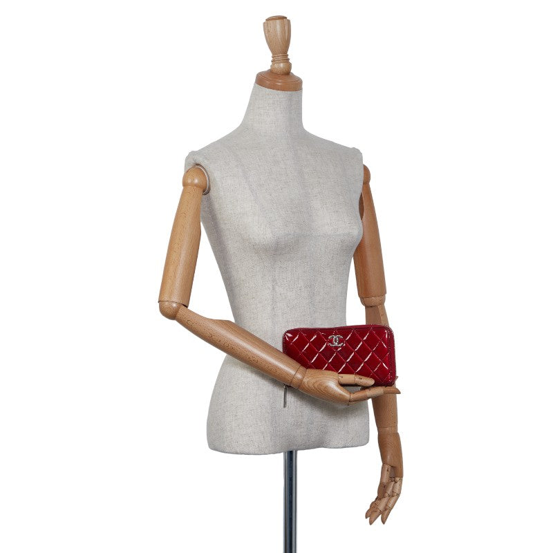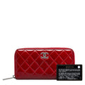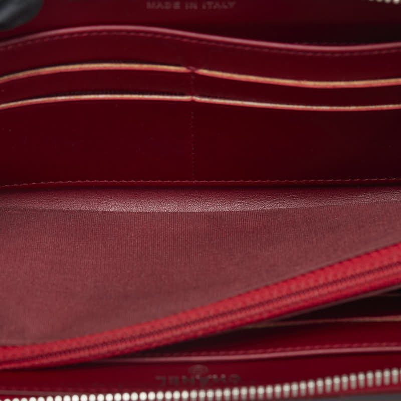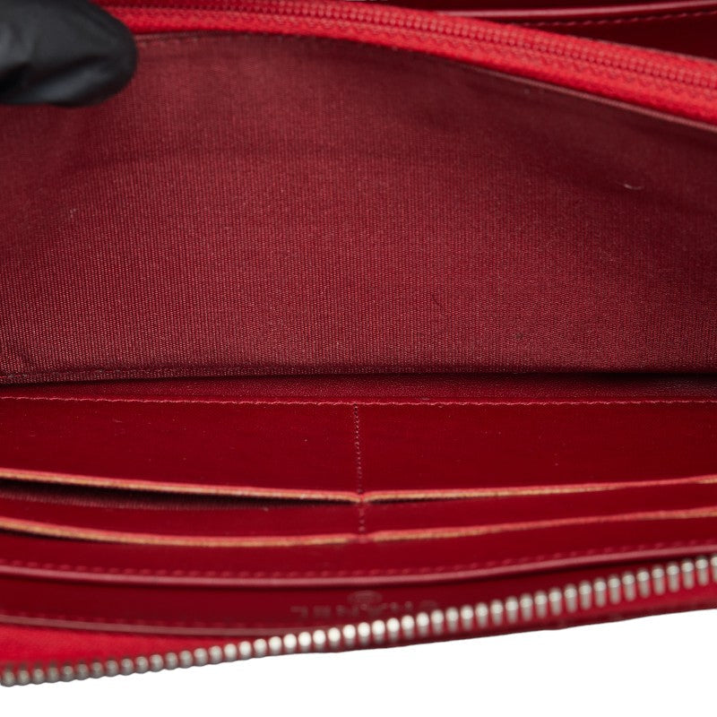 Chanel Brilliant Matelasse Round Zipper Long Wallet Red Enamel Calf
