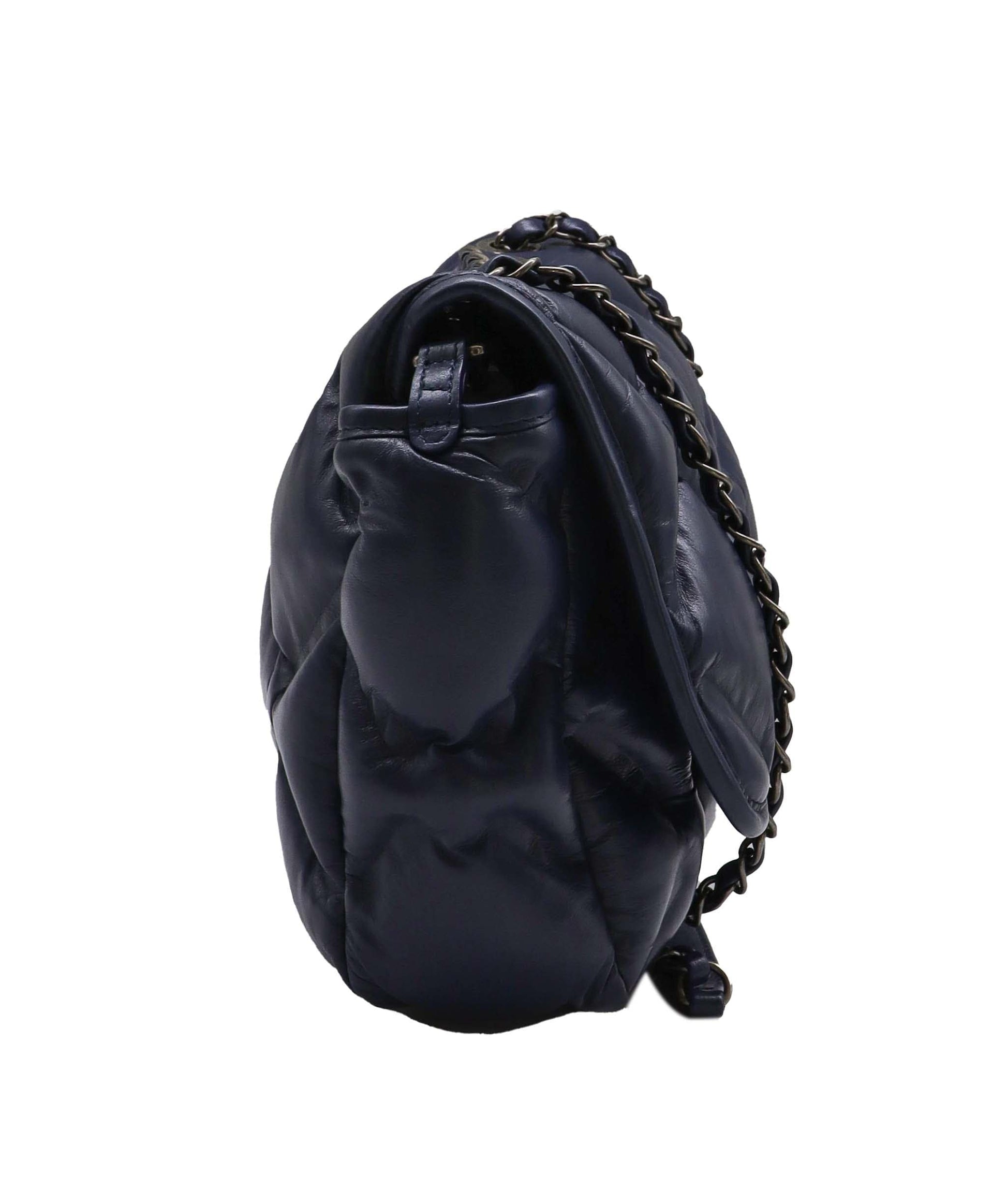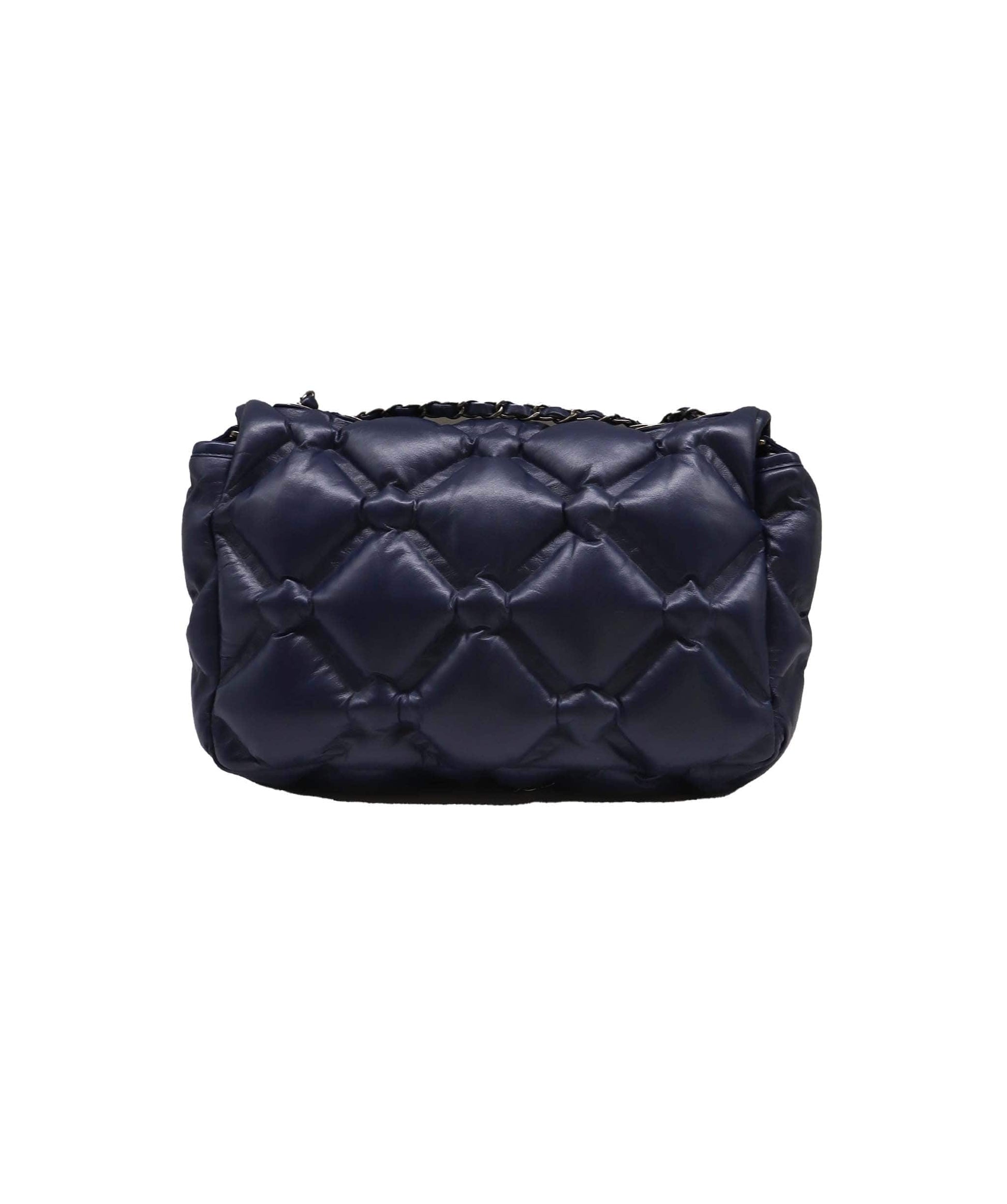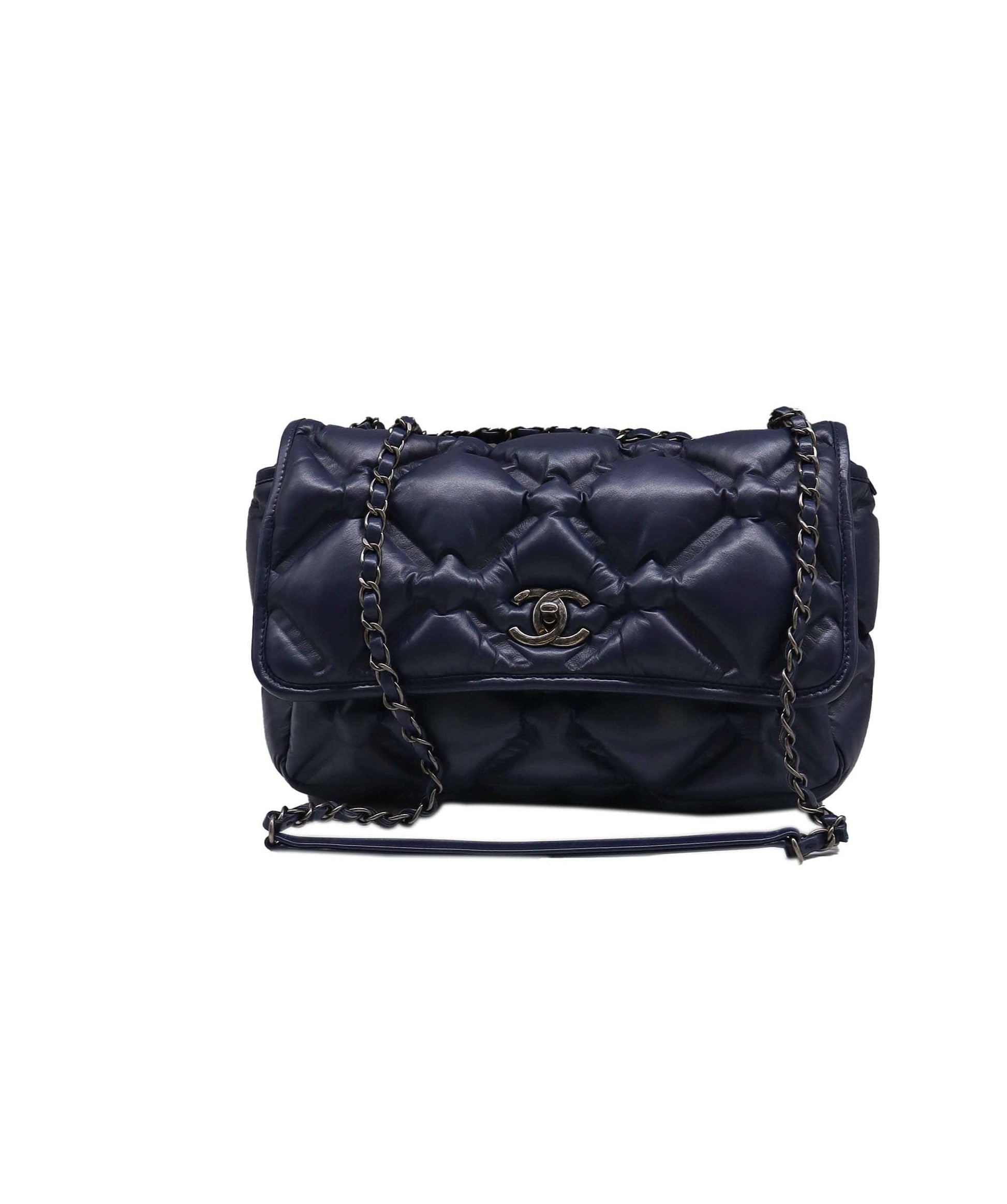 CHANEL BUBBLE QUILT CHAIN SHOULDER BAG BLUE CALF SKIN 90213935 90213935