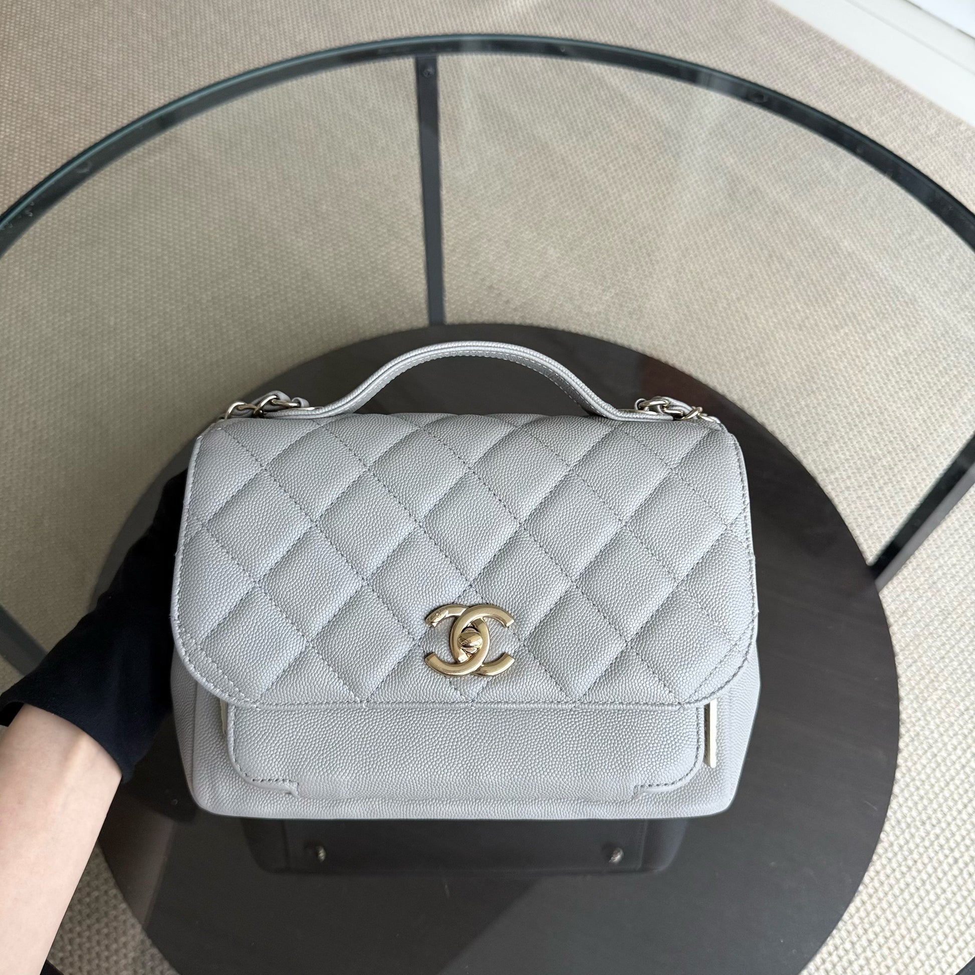 Chanel Business Affinity Medium - Caviar Quilted Grained Calfskin Grey Gray Gold Hardware Series 28