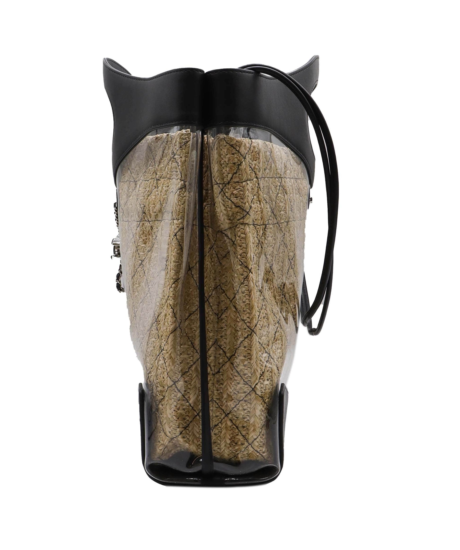 Description: Shop this very special Chanel By The Sea PVC & raffia tote bag, crafted from black leather, clear PVC and brown raffia. Finished with silver hardware. The bag is in a very New condition, no clouding to the PVC and no wear to the corners. 27 series.