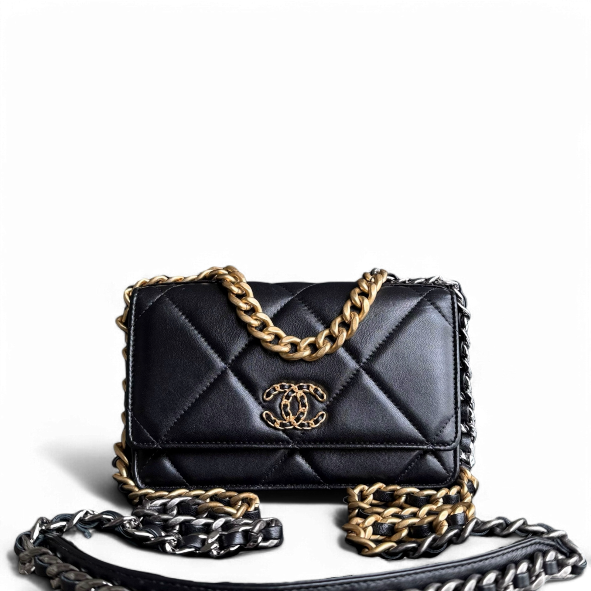 Chanel C19 WOC - 19 Bag Wallet On Chain Quilted Lambskin Black Two Tone Gold Hardware Microchip