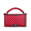 Chanel Calfskin Boy Handle New Medium 28CM Quilted Leboy Palladium Silver Hardware Series 23