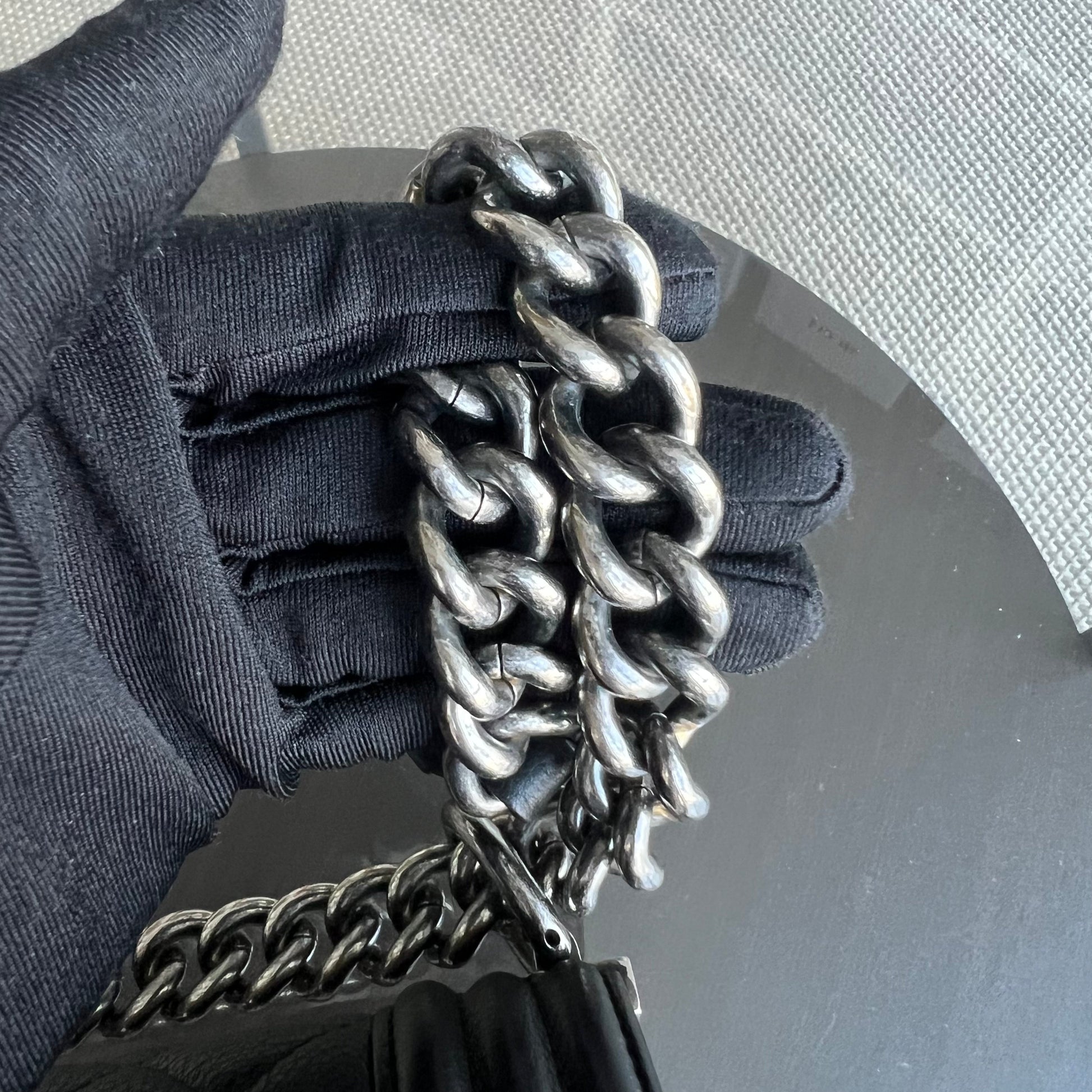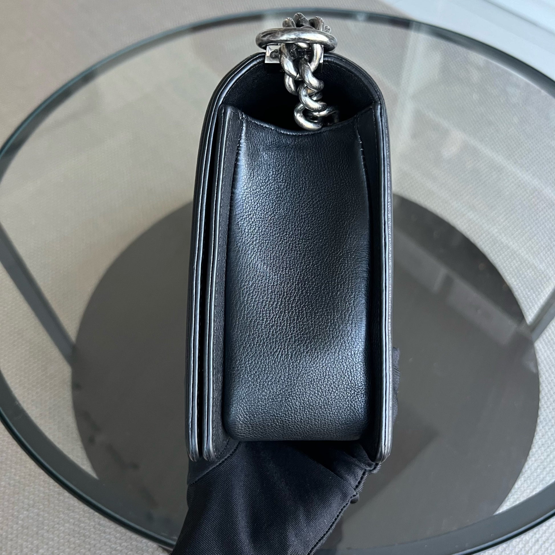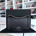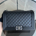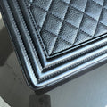 Calfskin Boy New Medium 28CM Quilted Grained Calfskin Caviar Black Ruthenium Silver Hardware Series 23