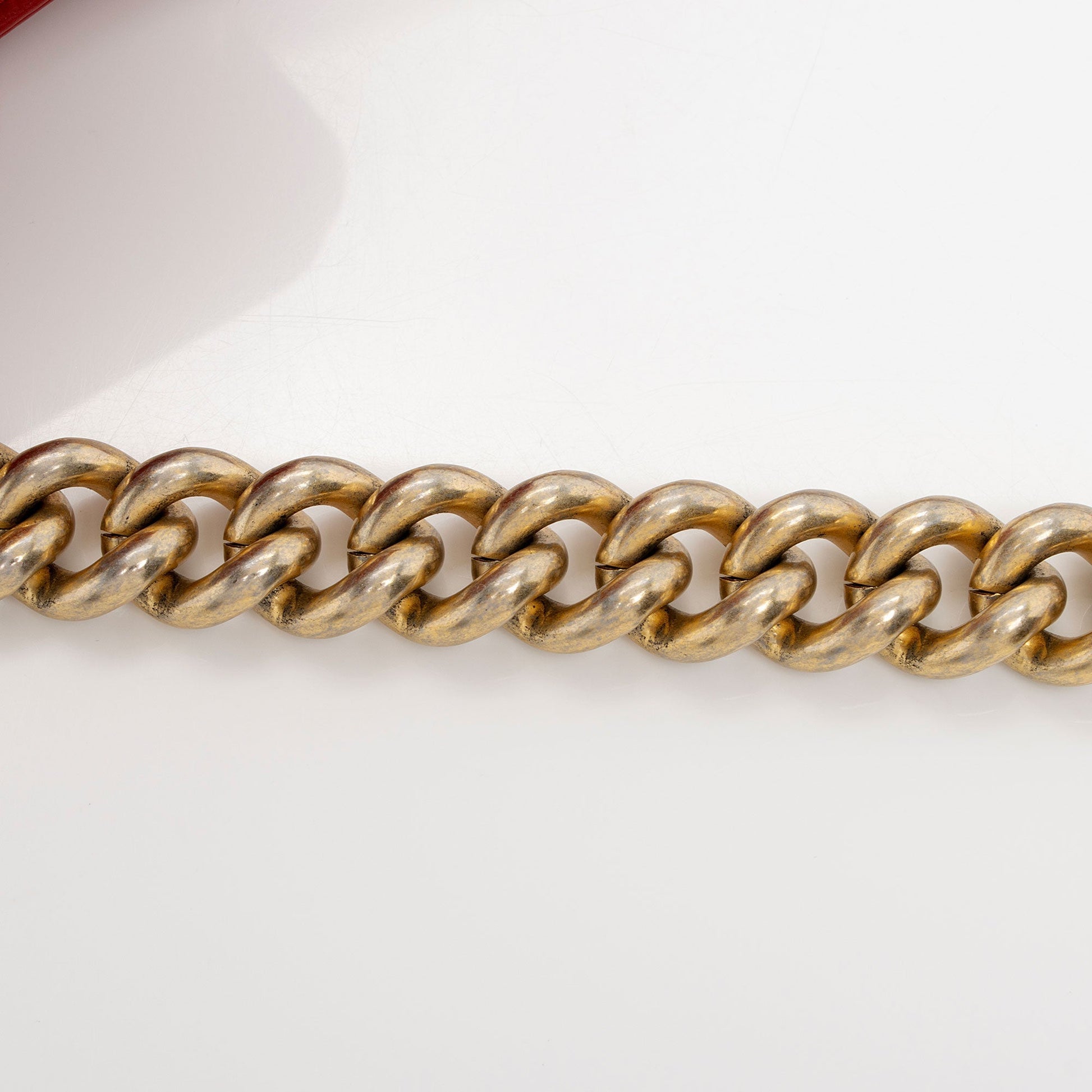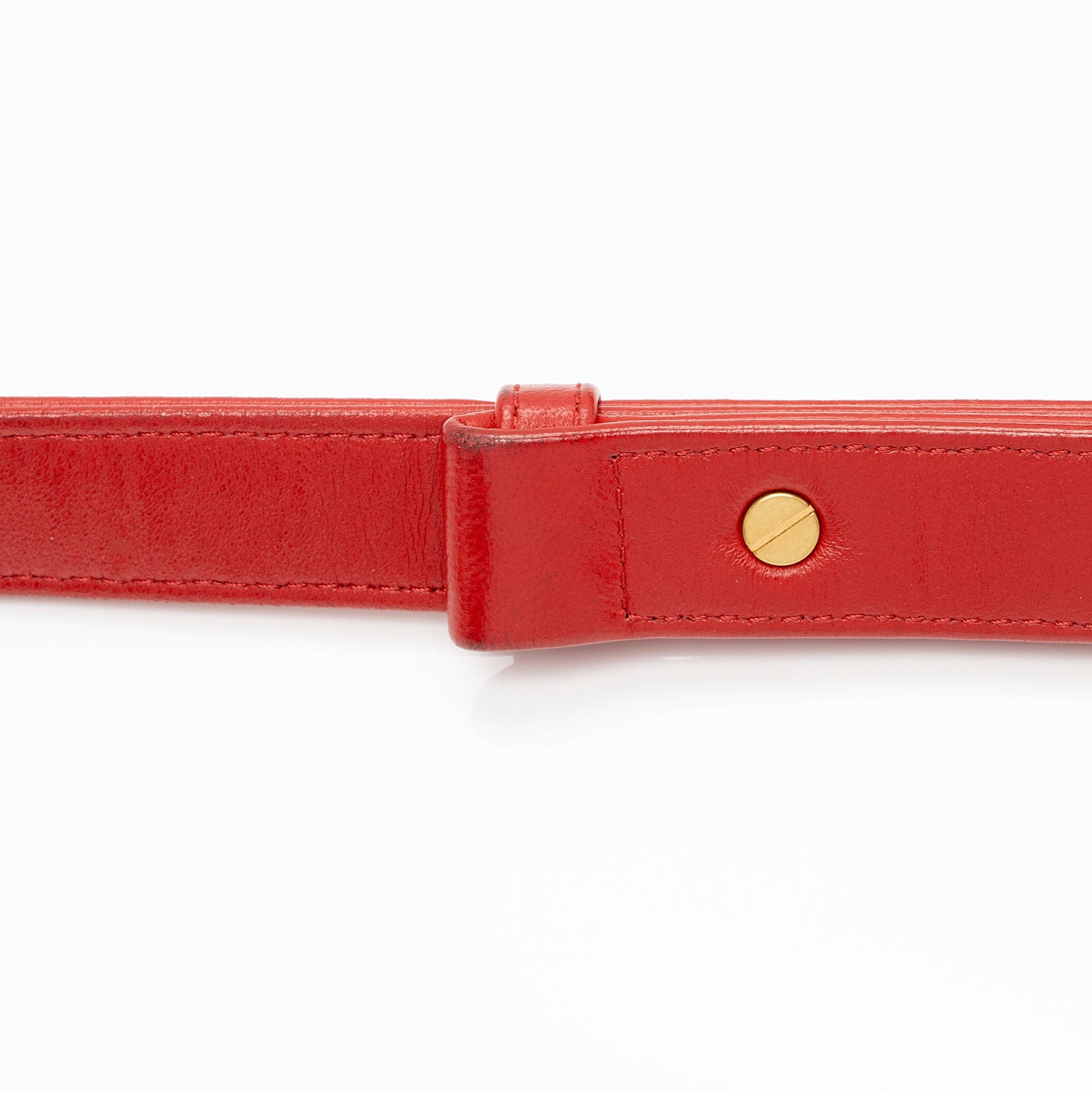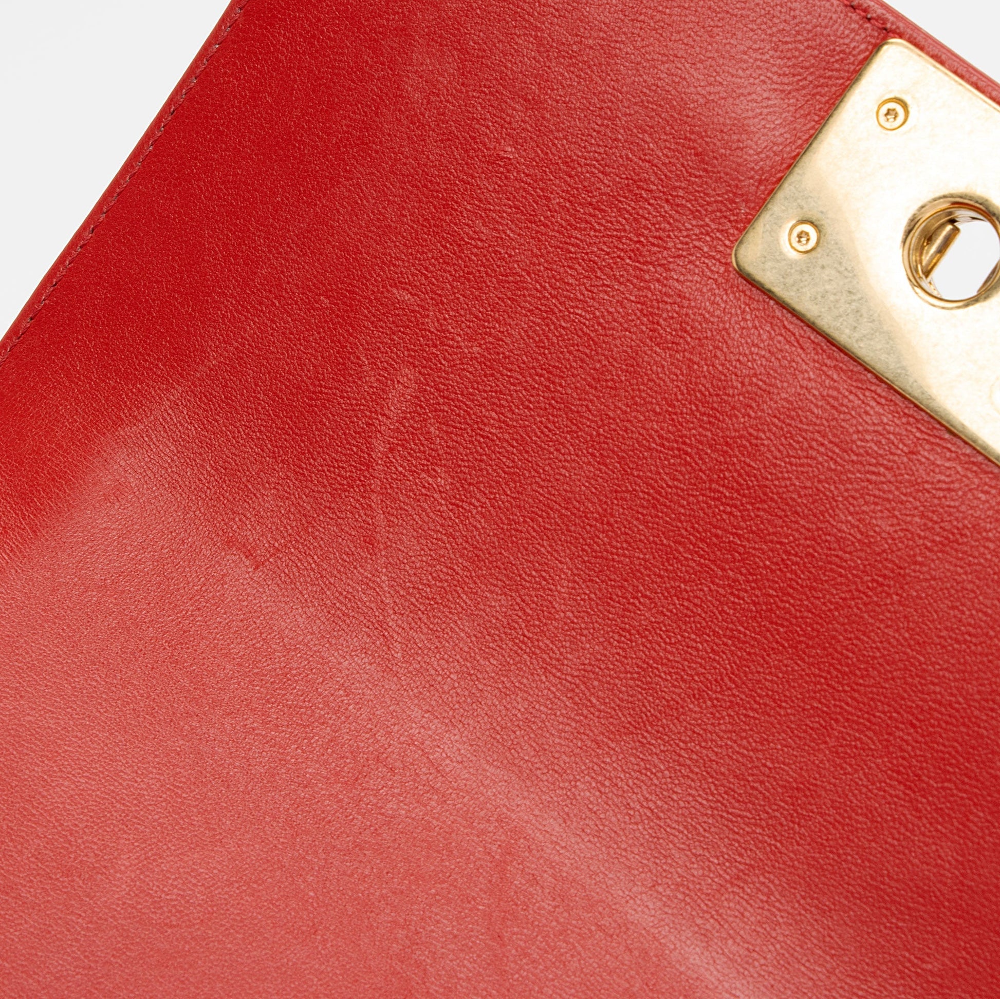 Condition Notes: Darkening and marks to exterior bottom corners. Light marks and minor imprints throughout exterior. Creasing and light marks throughout calfskin shoulder strap. Light surface scratches to hardware. Creasing to interior front by closure. Visible scuffs throughout interior flap. Light marks throughout interior.