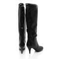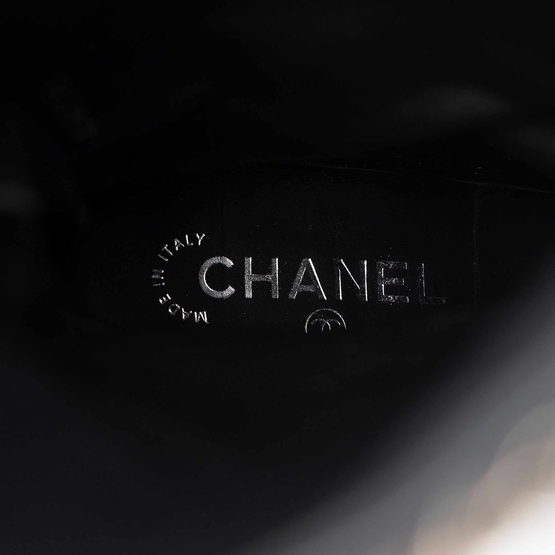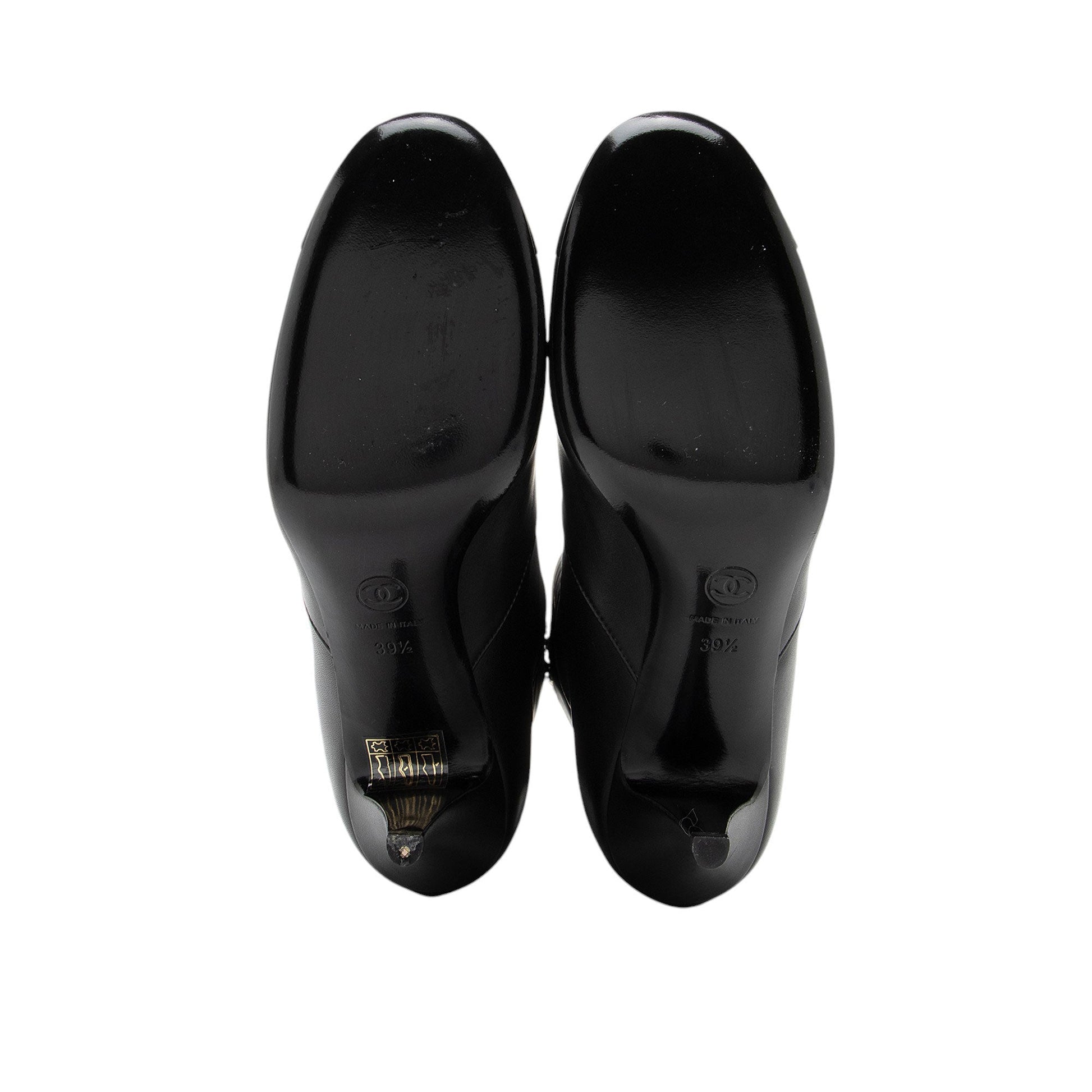 Condition Notes: Creasing throughout uppers and insoles. Heavy wear to right boot heel tip (comes with extra set). Please note: Chanel shoes typically run 1 to 1 1/2 smaller. All sizing is dependent of shoe style.