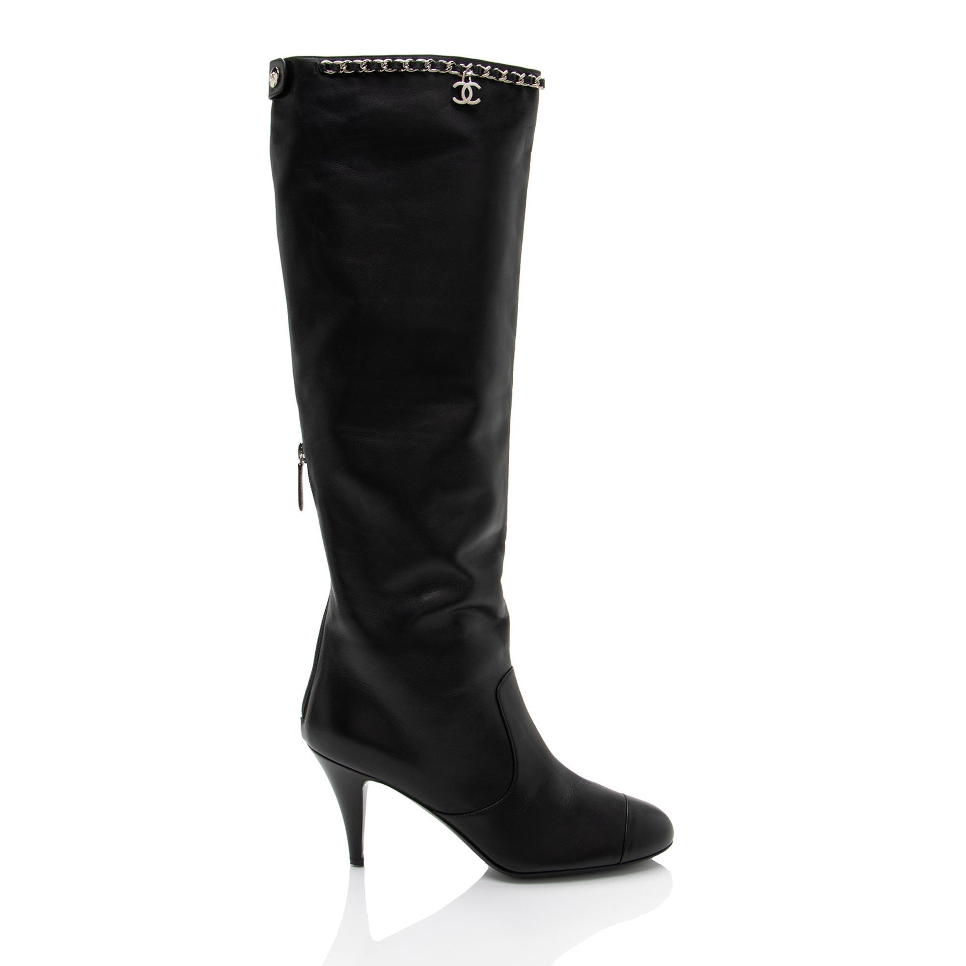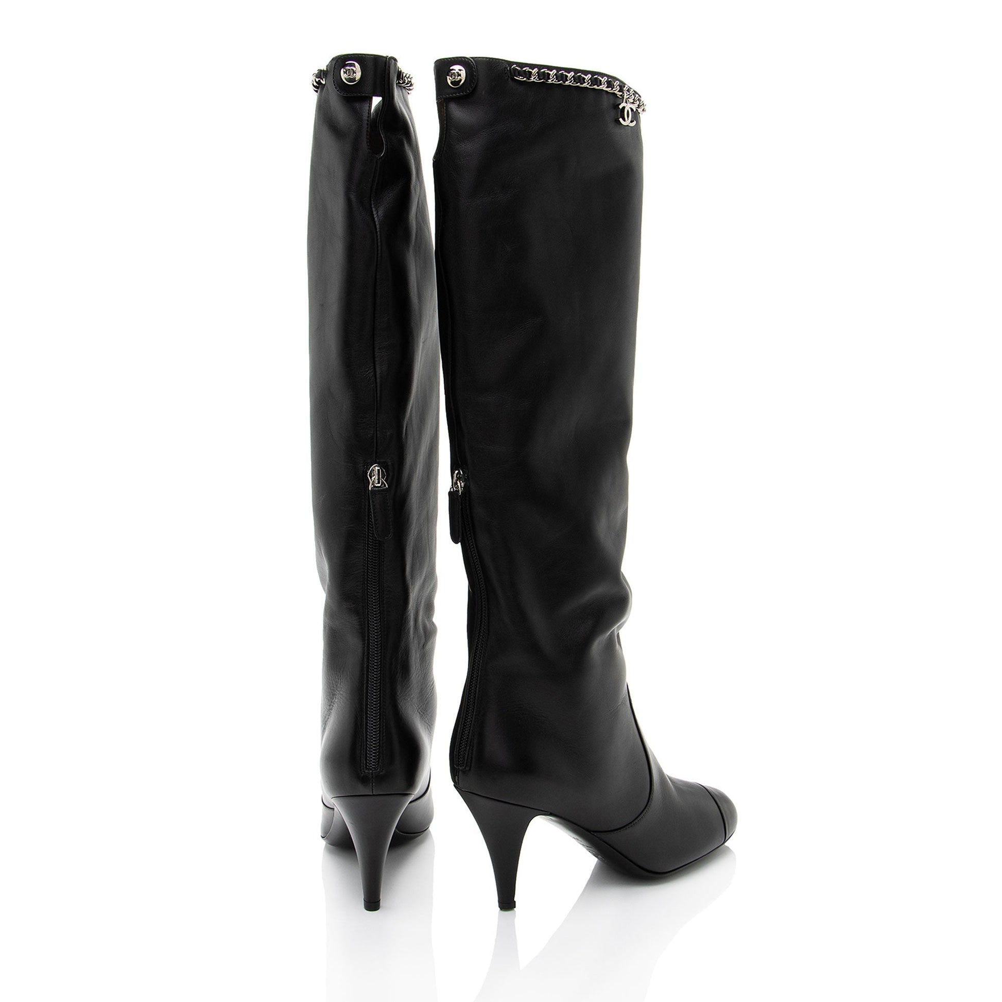 Chanel Calfskin CC Chain Knee High Boots - Size 9.5 / 39.5