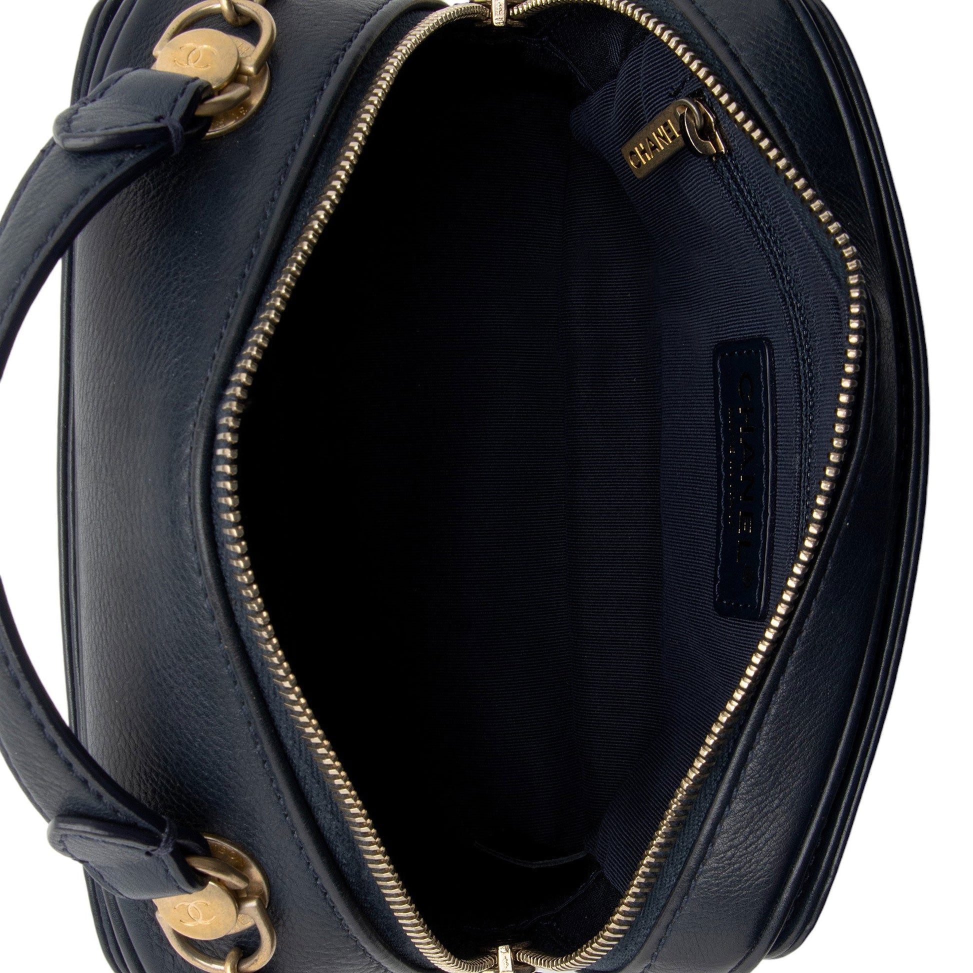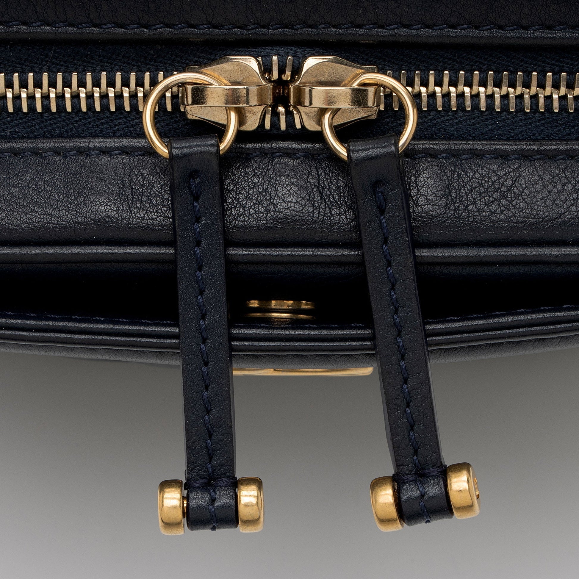 Condition Notes: Creasing throughout exterior causing light loss of structure. Minor scuffs throughout exterior. Light creasing to top handle. Light surface scratches to hardware. Please note: Read product details carefully. This is a dark blue bag.