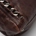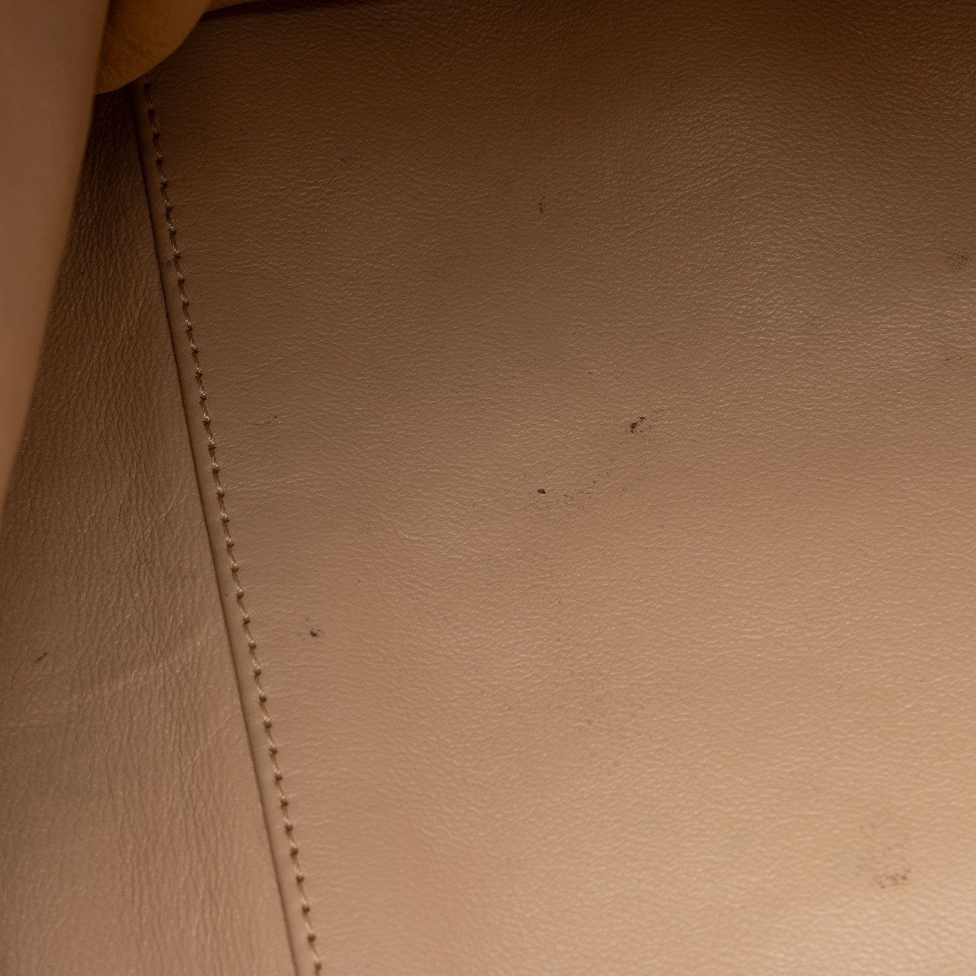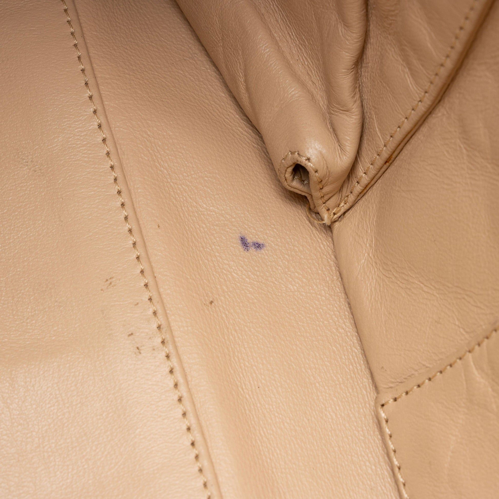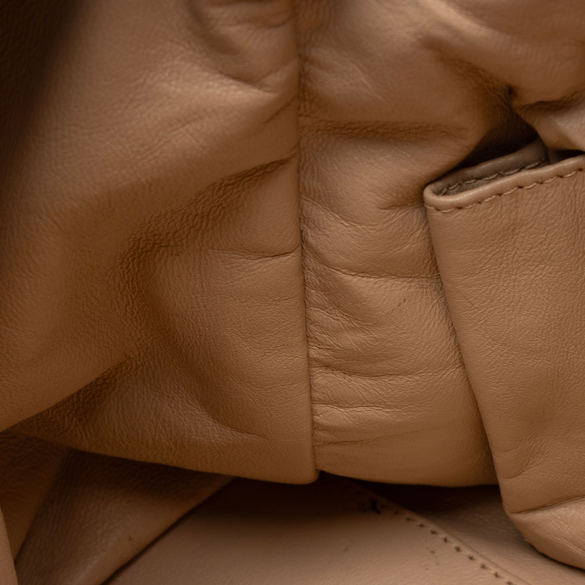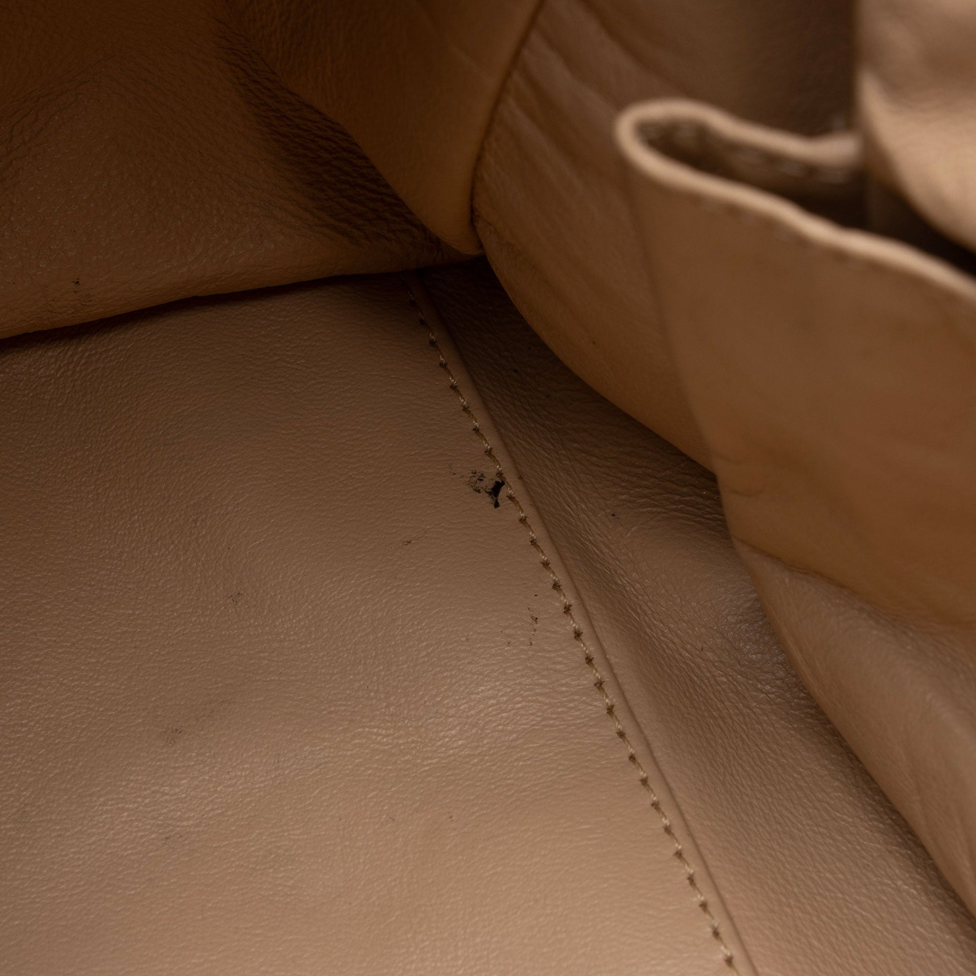 Condition Notes: Visible scuffs to exterior bottom corners. Light creasing and scuffs throughout exterior. Scuffs throughout leather woven into chains. Light surface scratches to hardware. Marks, ink marks, and wear throughout interior. Please note: Read product details carefully. This is a dark brown bag.