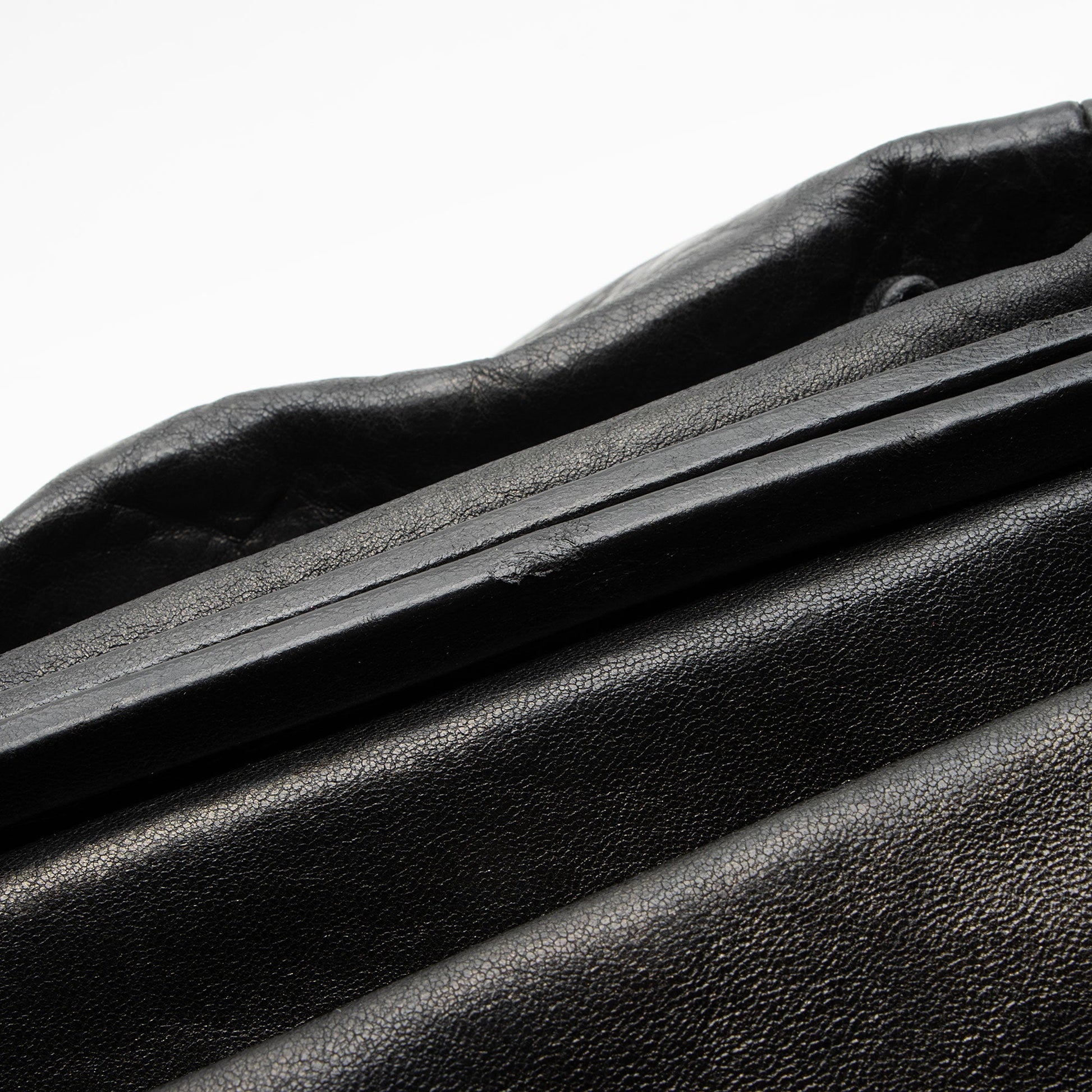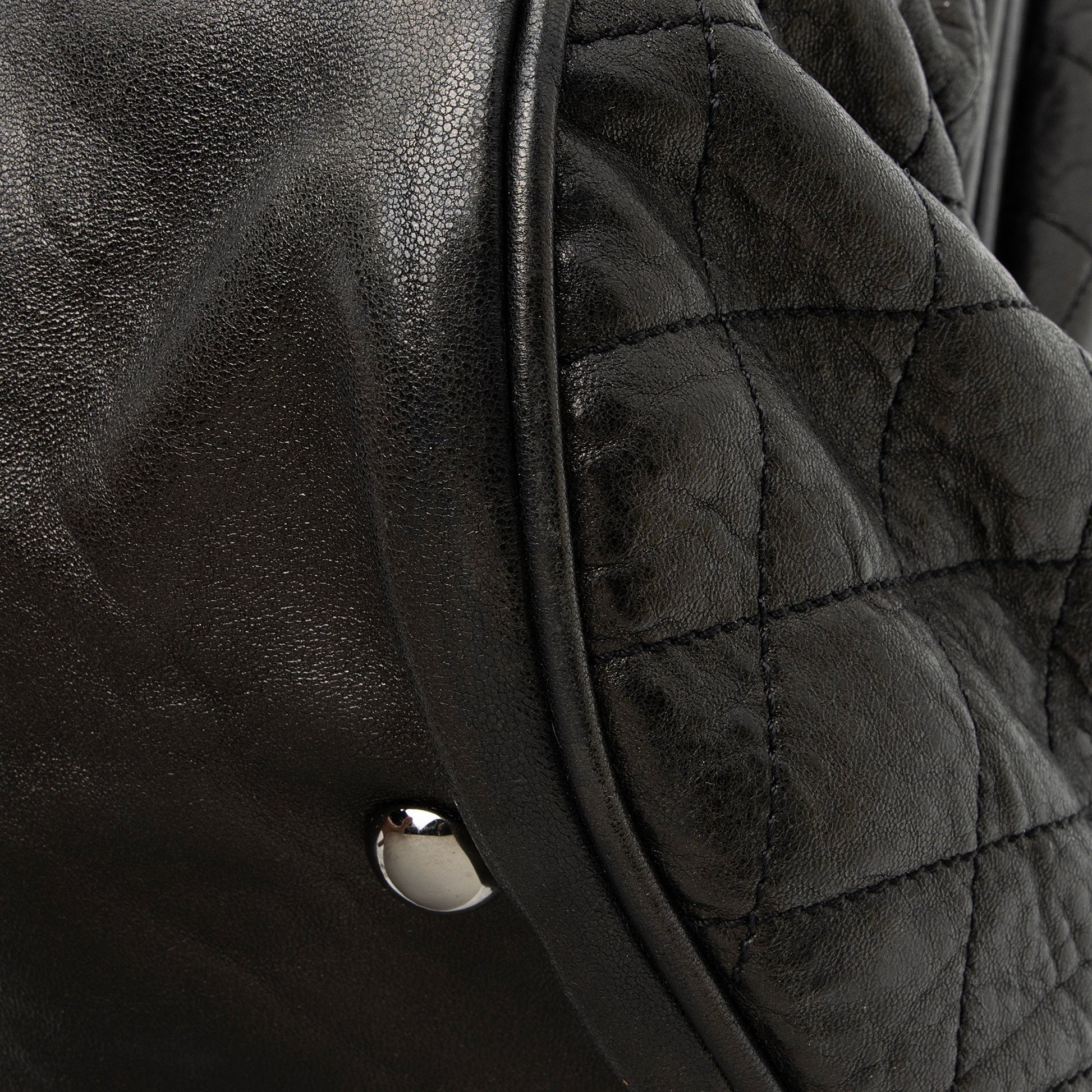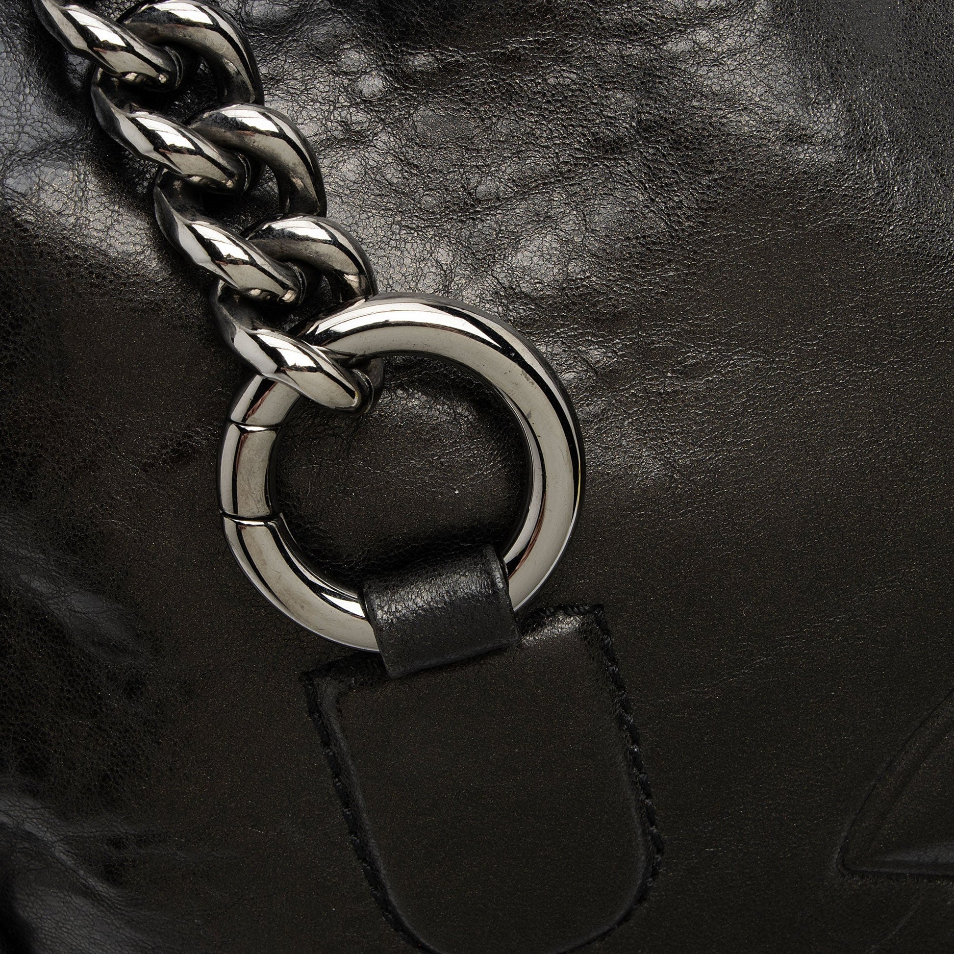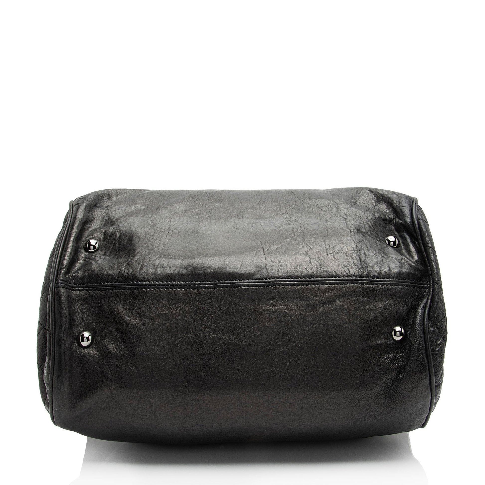 Condition Notes: Light scuffs and wear to exterior bottom corners. Light creasing and scuffs throughout exterior and handles. Surface scratches to hardware. Light marks and wear throughout interior. Light discoloration and wear to interior hologram. Kisslock closure is loose.