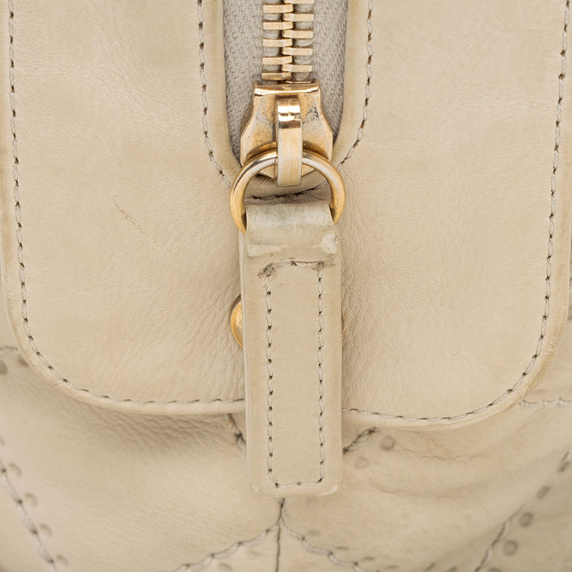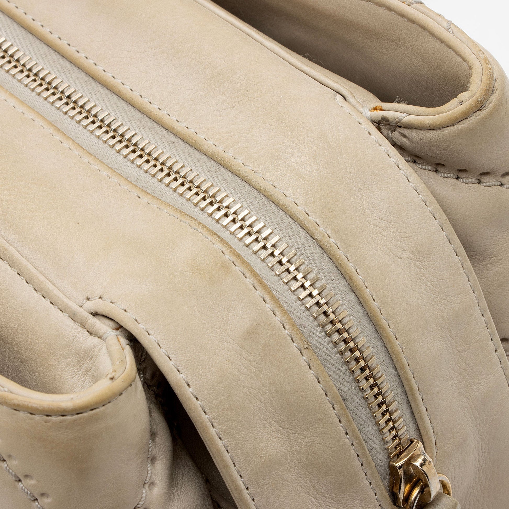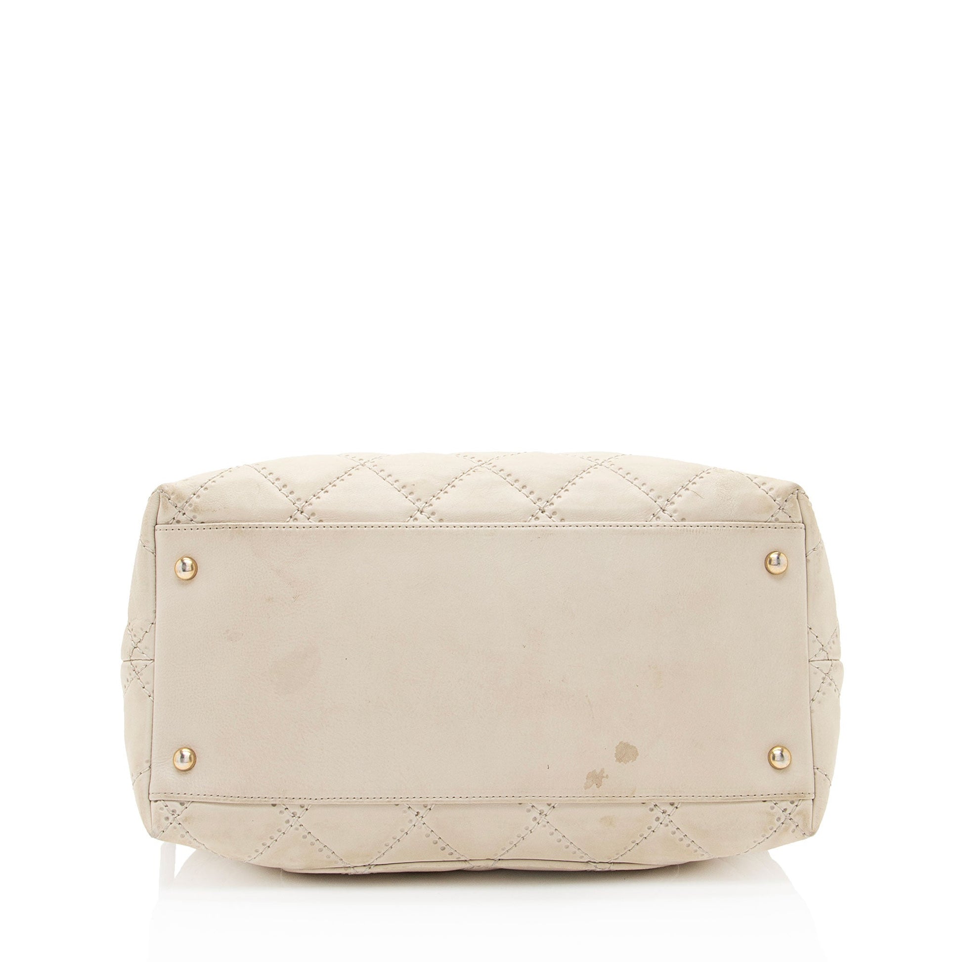 Condition Notes: Moderate creasing throughout exterior causing loss of structure. Moderate discoloration and marks throughout exterior and bottom corners. Cracking and light fraying throughout handle calfskin casing. Heavy surface scratches and tarnishing to hardware. Marks and wear throughout interior.