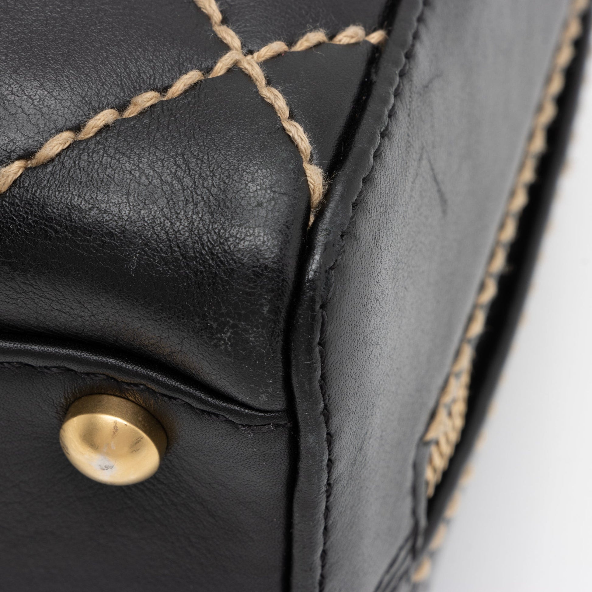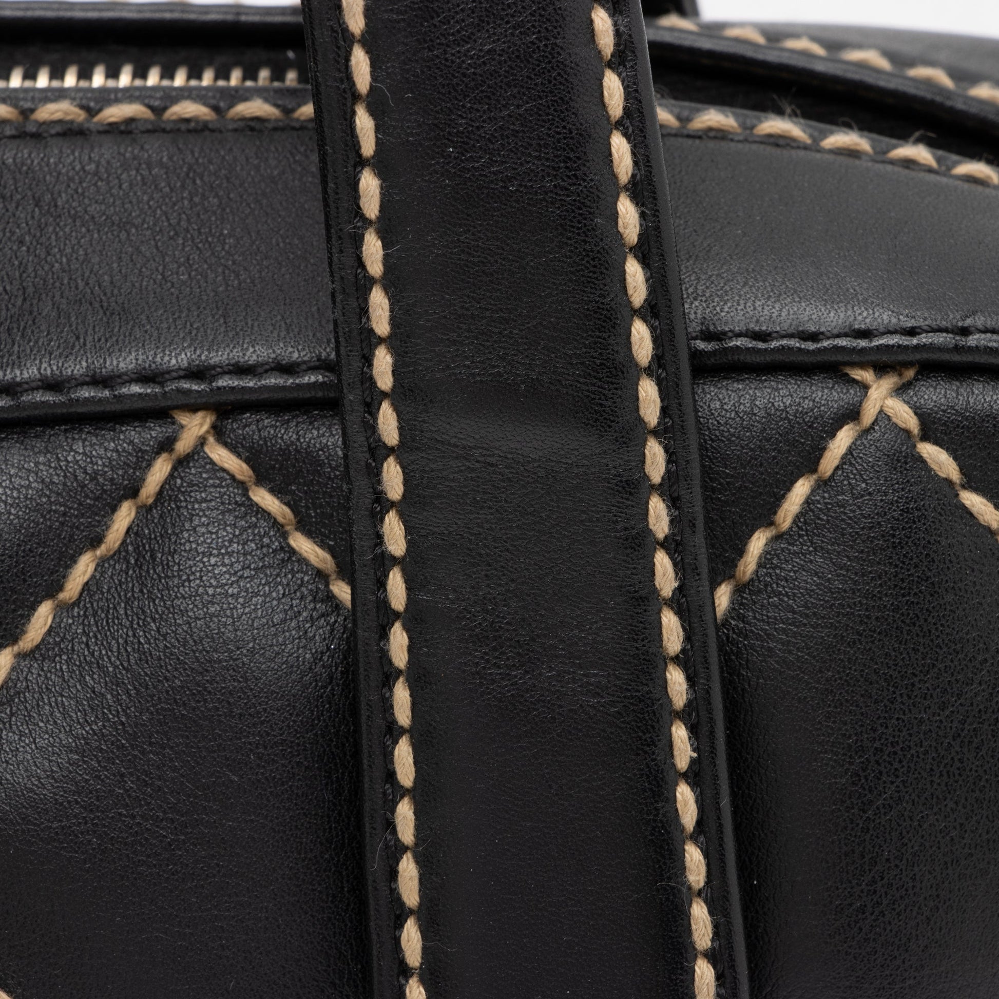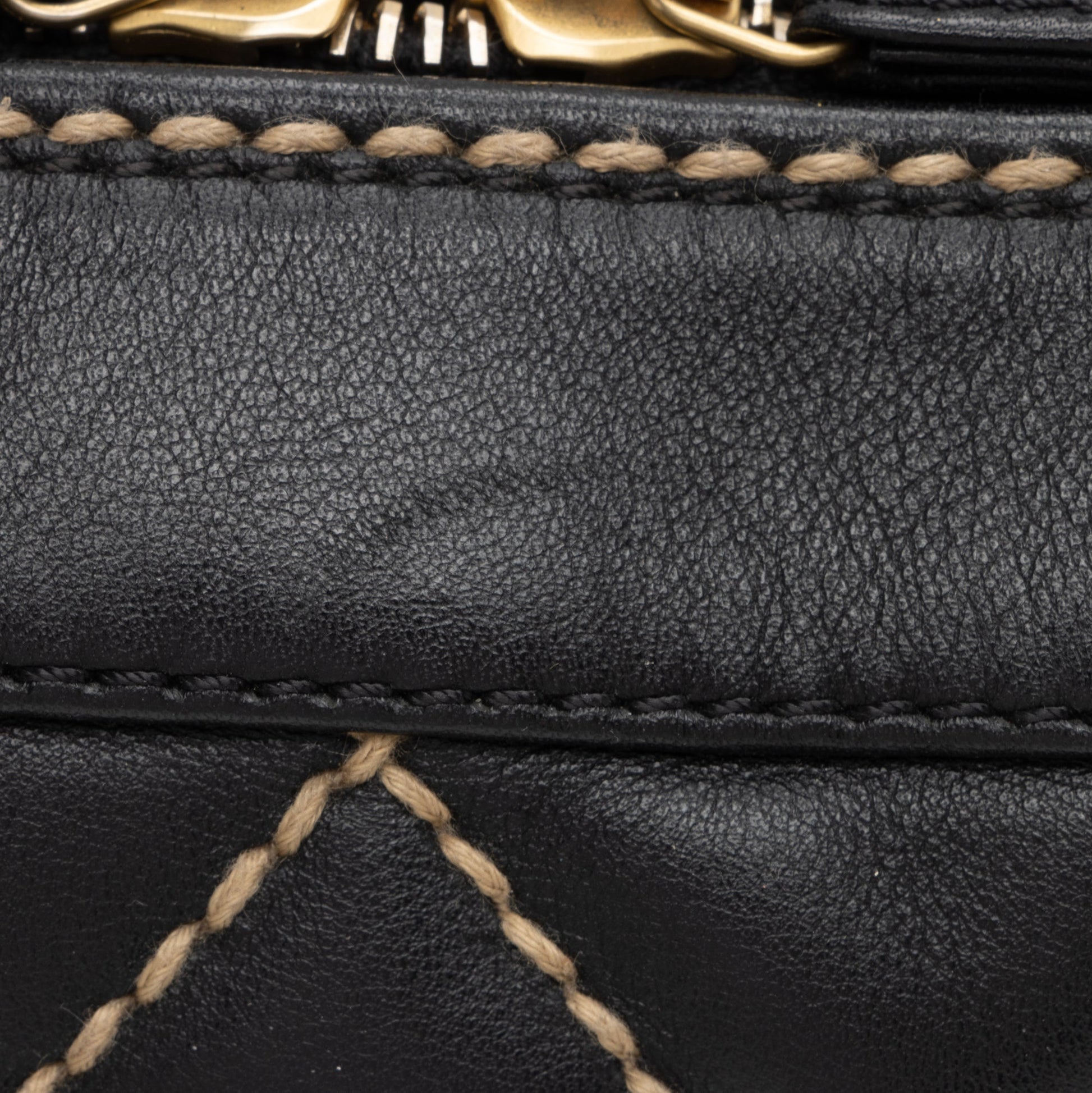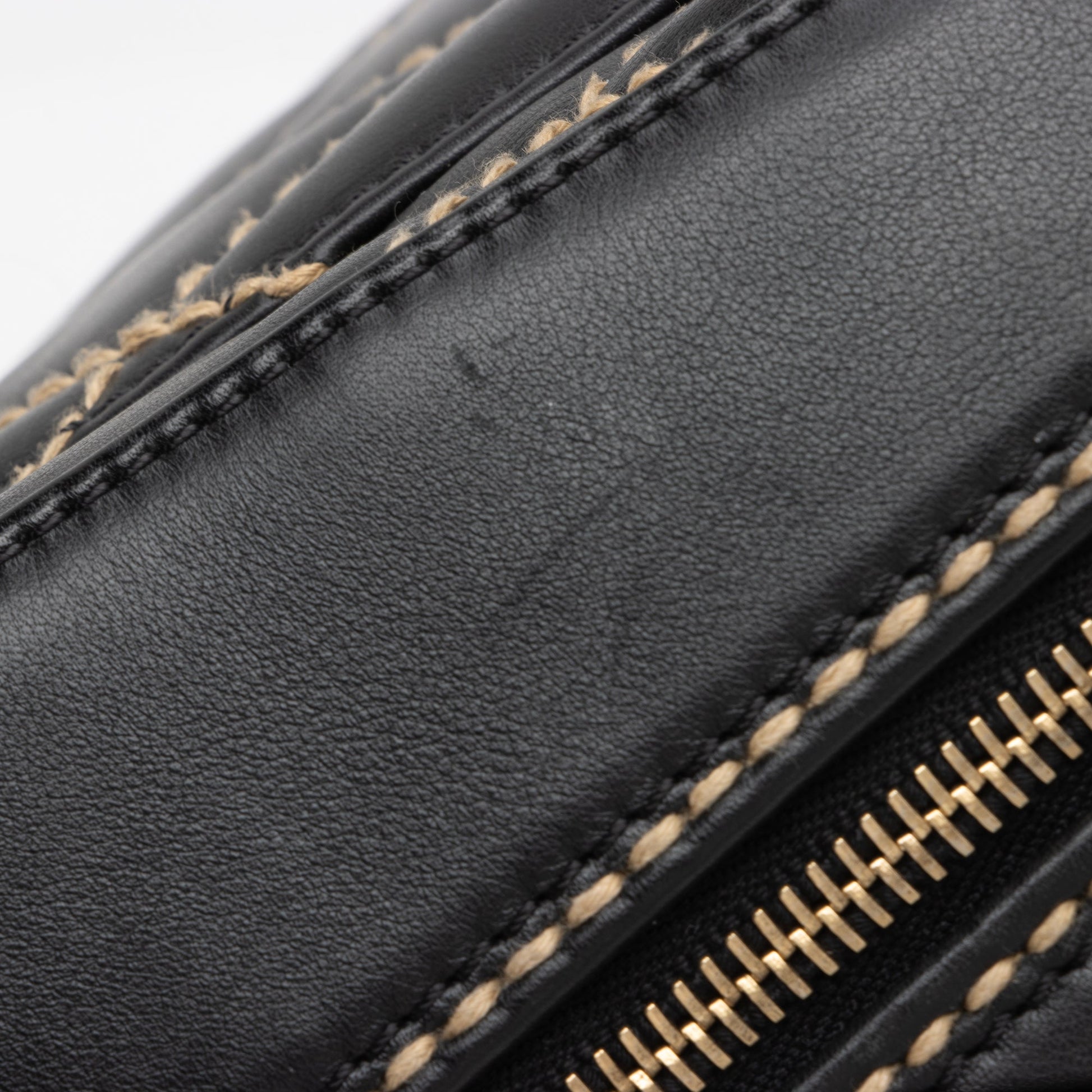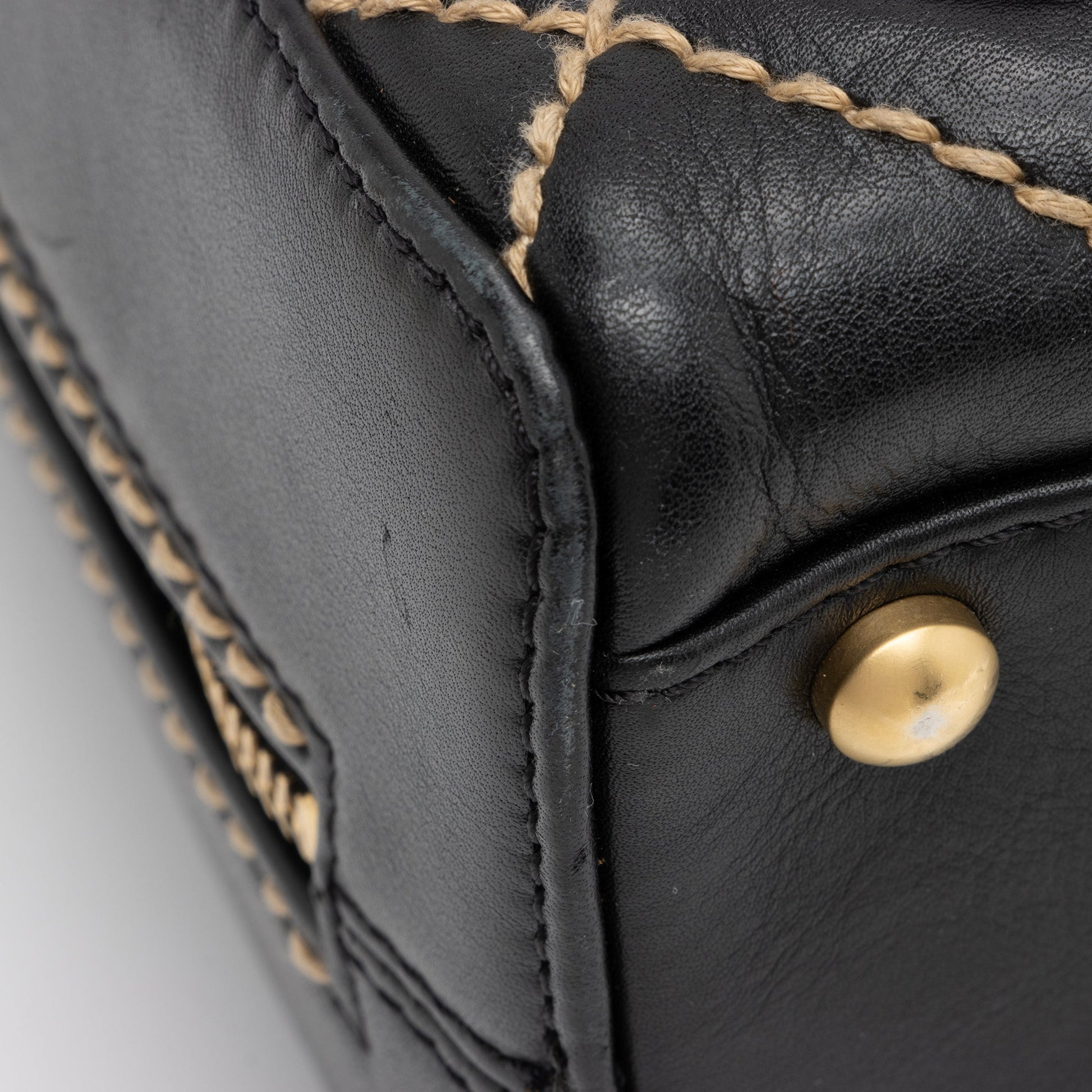 Condition Notes: Minor scuffs to exterior bottom corners. Light scuffs and minor creasing throughout exterior. Creasing and wear throughout handles. Darkening and marks throughout exterior stitching. Light surface scratches to hardware. Light marks and wear throughout interior.
