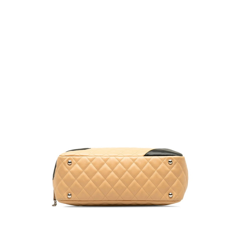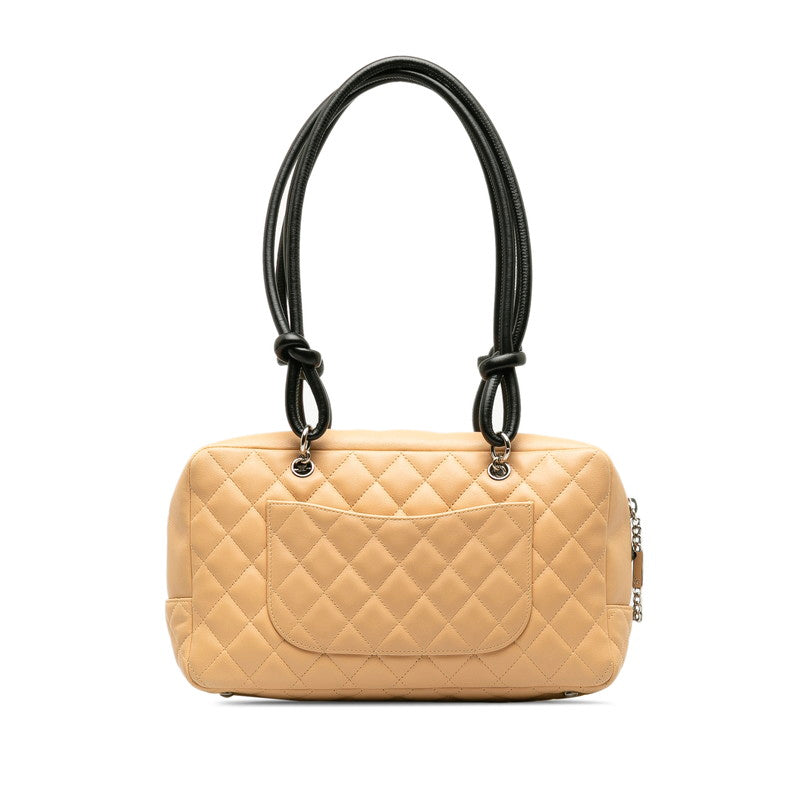 Chanel Cambon Cocomark Bowling Bag Handbag Mini Boston Bag Beige Leather CHANEL