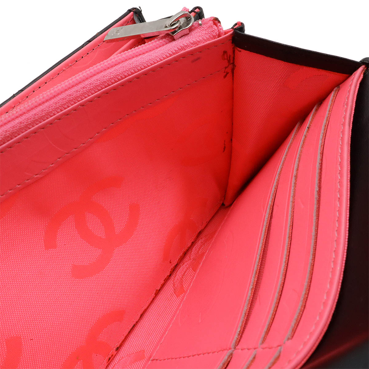Item name : Chanel Cambon Line Bifold Long Wallet Soft Calf/Enamel Black Pink A50077