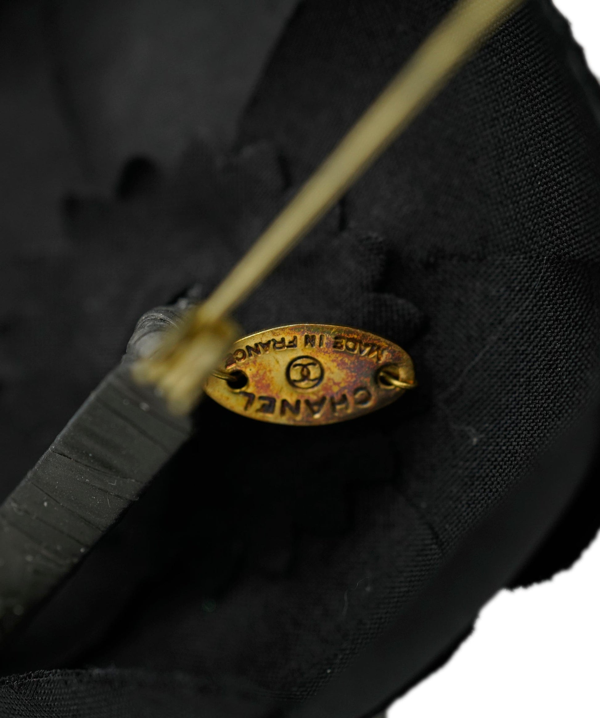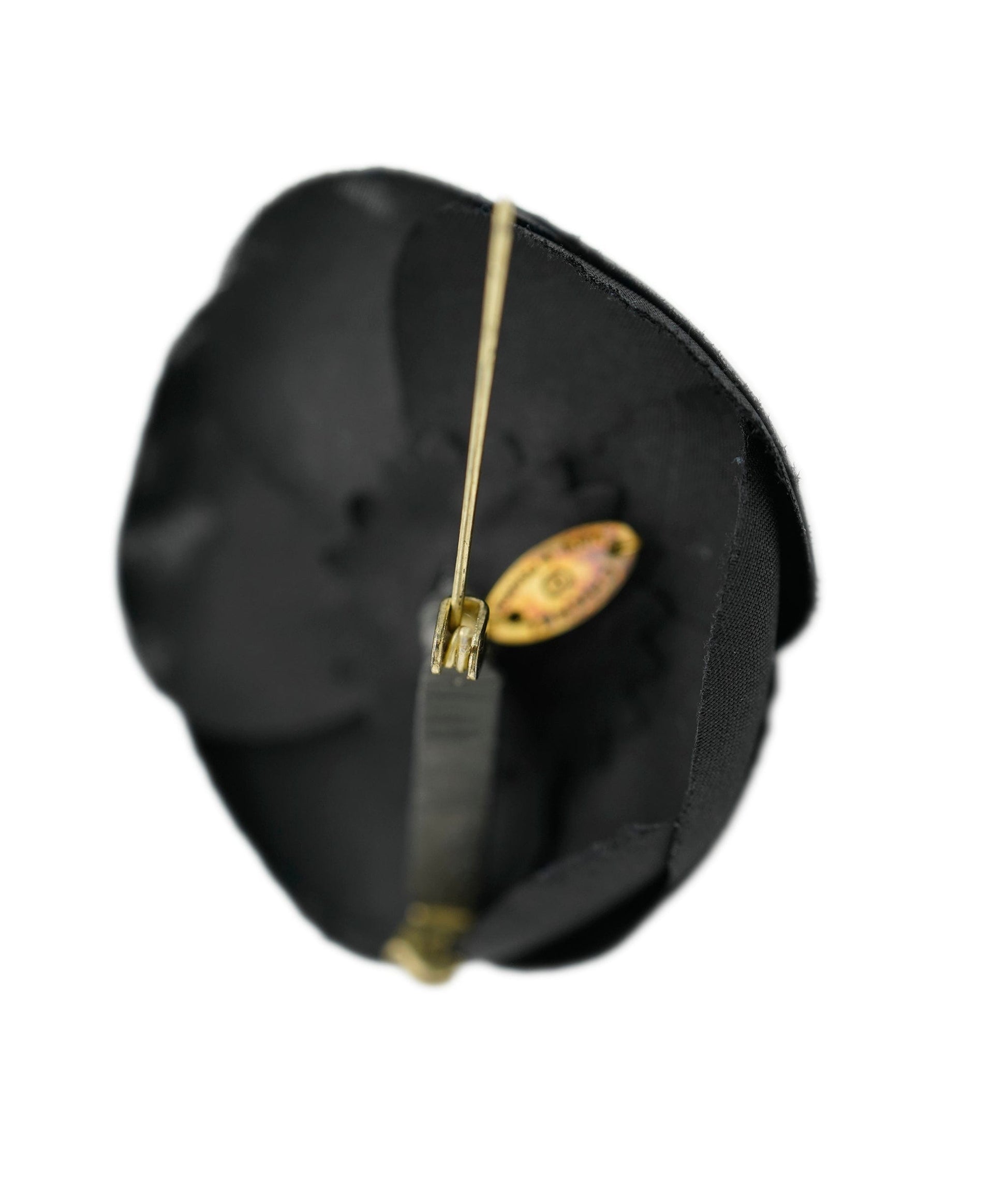 Add a touch of timeless elegance to your wardrobe with this stunning Chanel Camelia brooch, expertly crafted from luxurious black silk organza. This exquisite accessory epitomizes Chanel’s iconic style and attention to detail, making it an ideal addition for elevating any outfit.