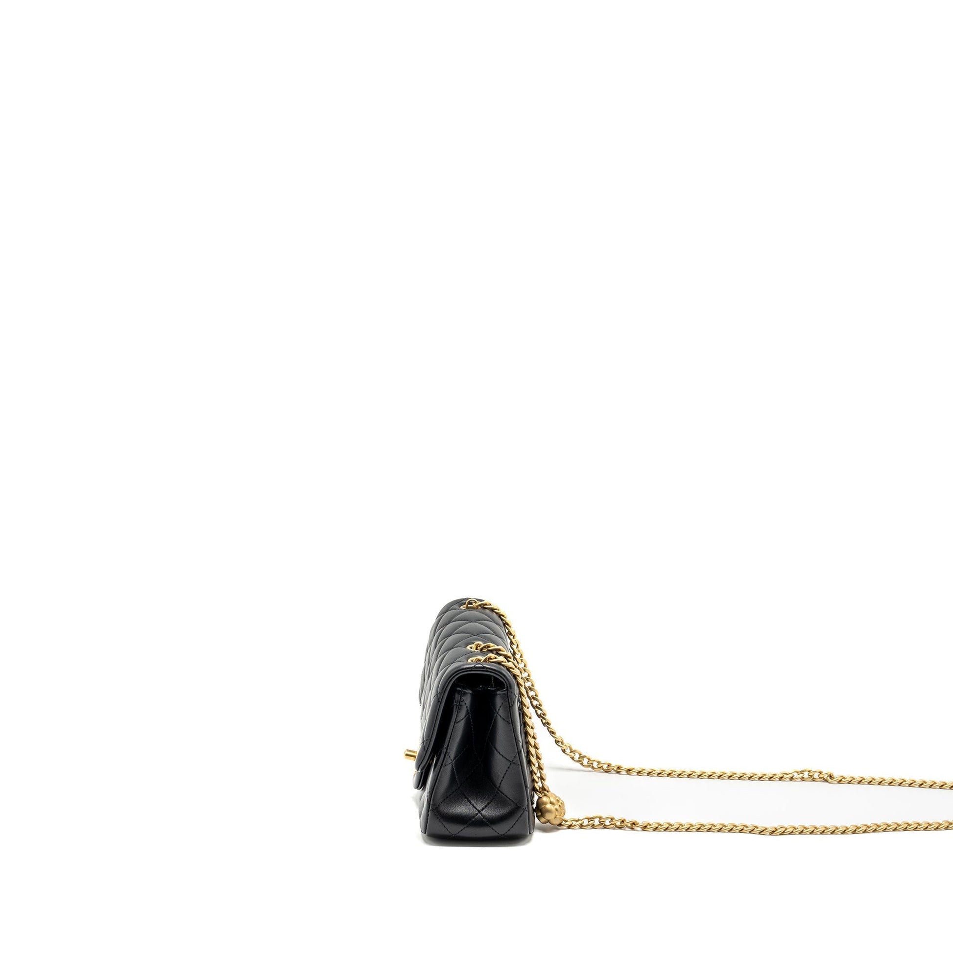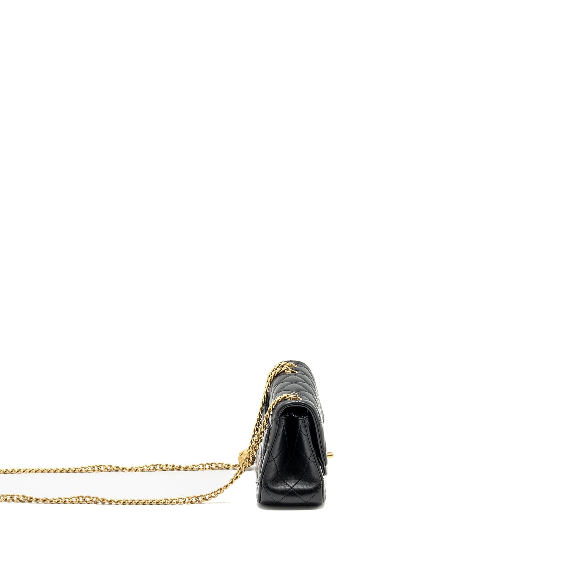 Chanel Camellia Adjustable Chain Mini Square Flap bag Lambskin black GHW (microchip)