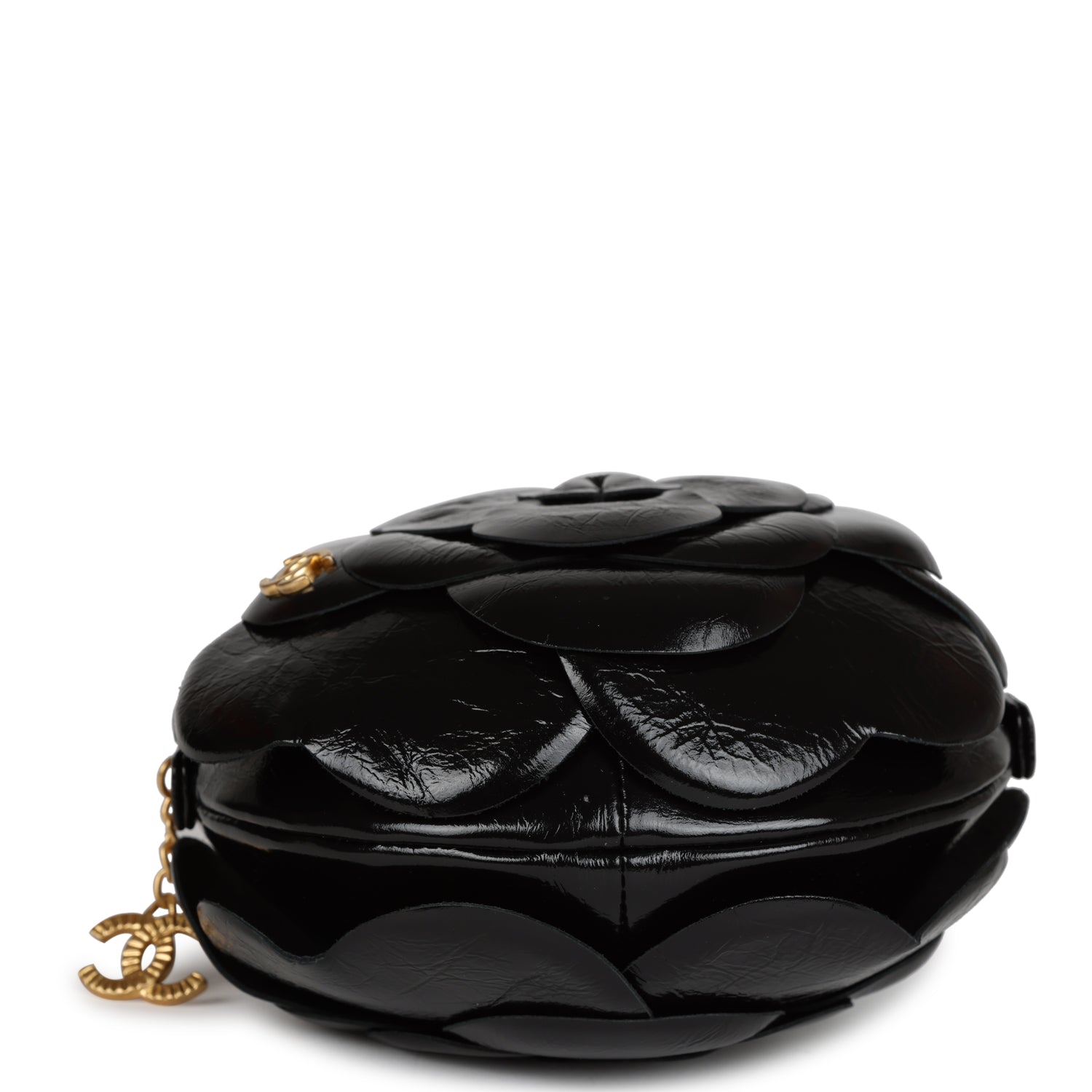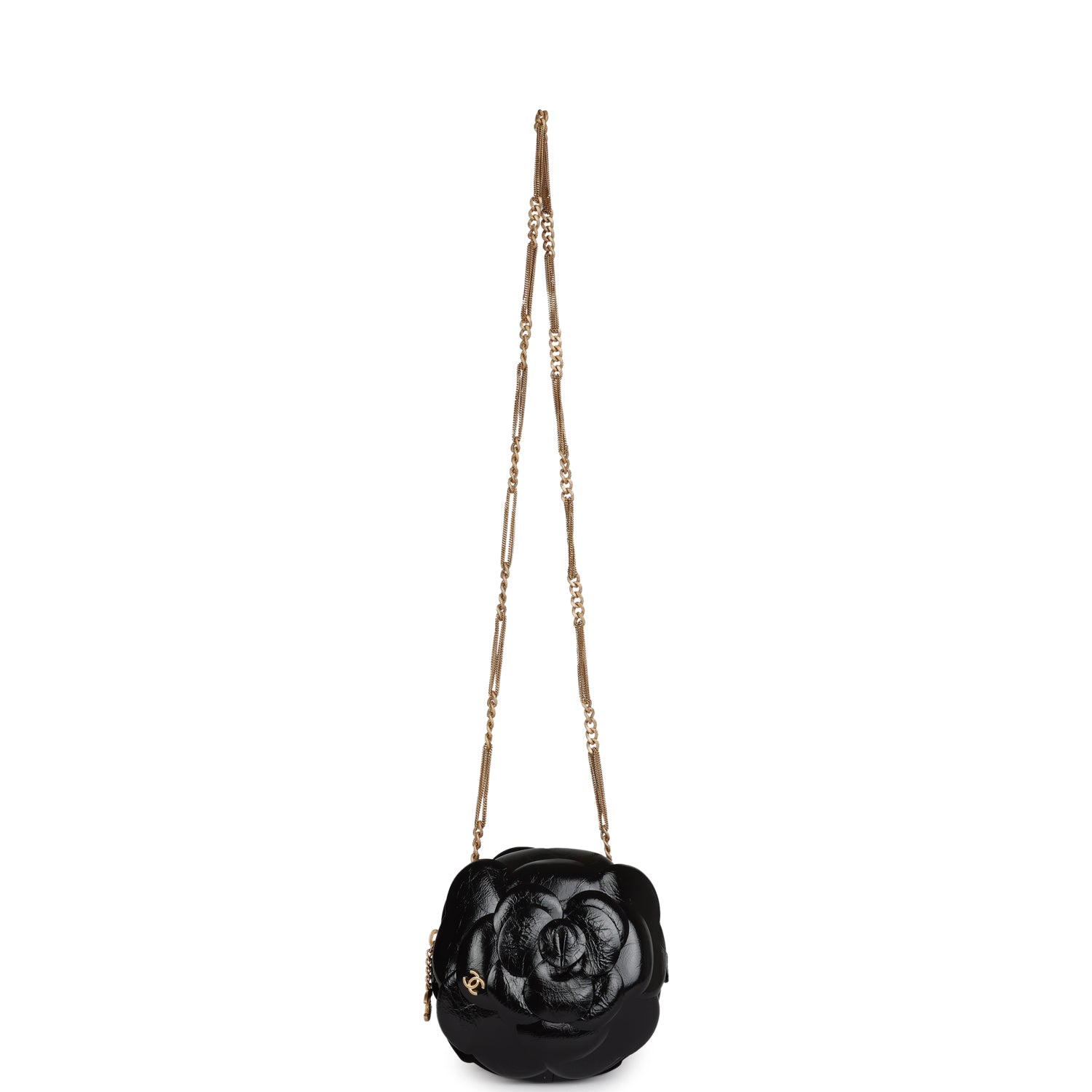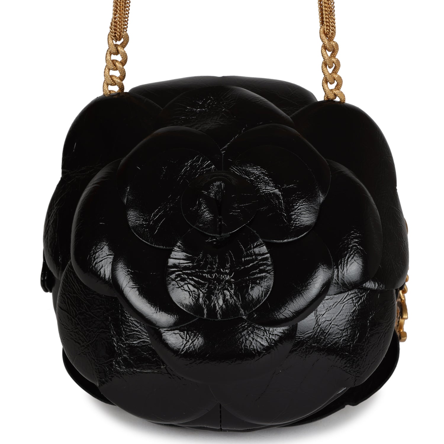 Chanel Camellia Clutch with Chain Black Shiny Calfskin Gold Hardware