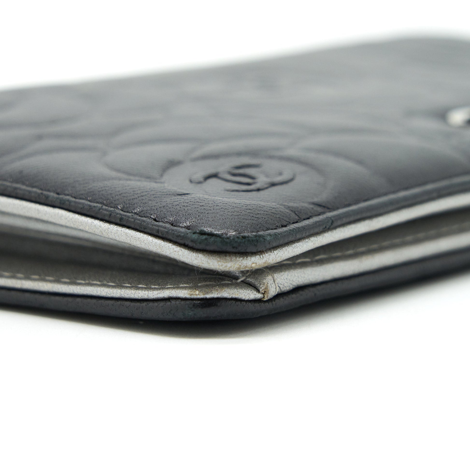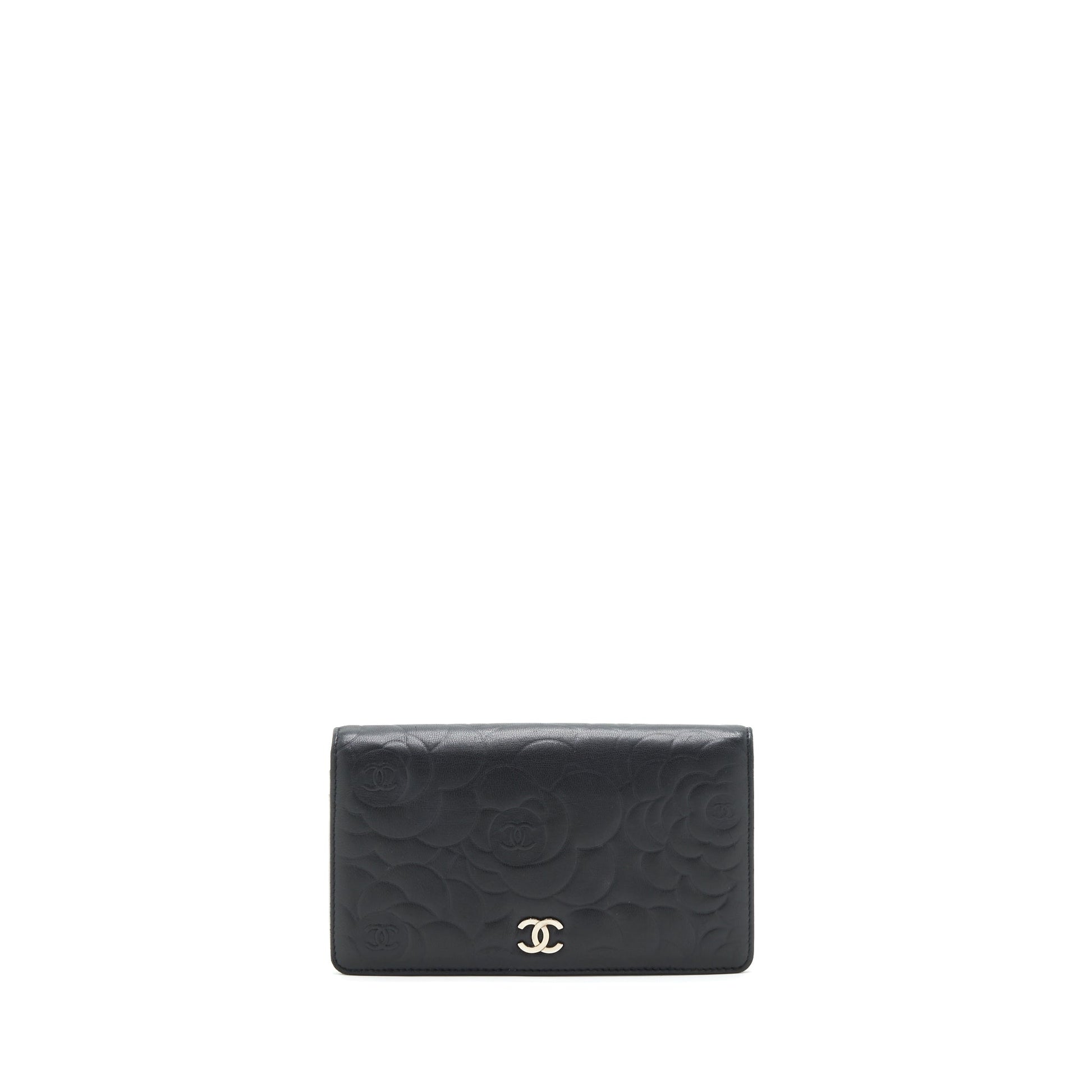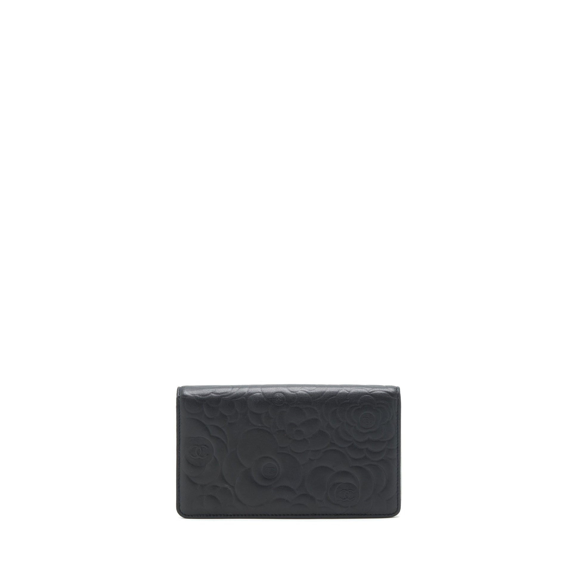 Chanel Camellia Fold Long Wallet Lambskin black / silver SHW