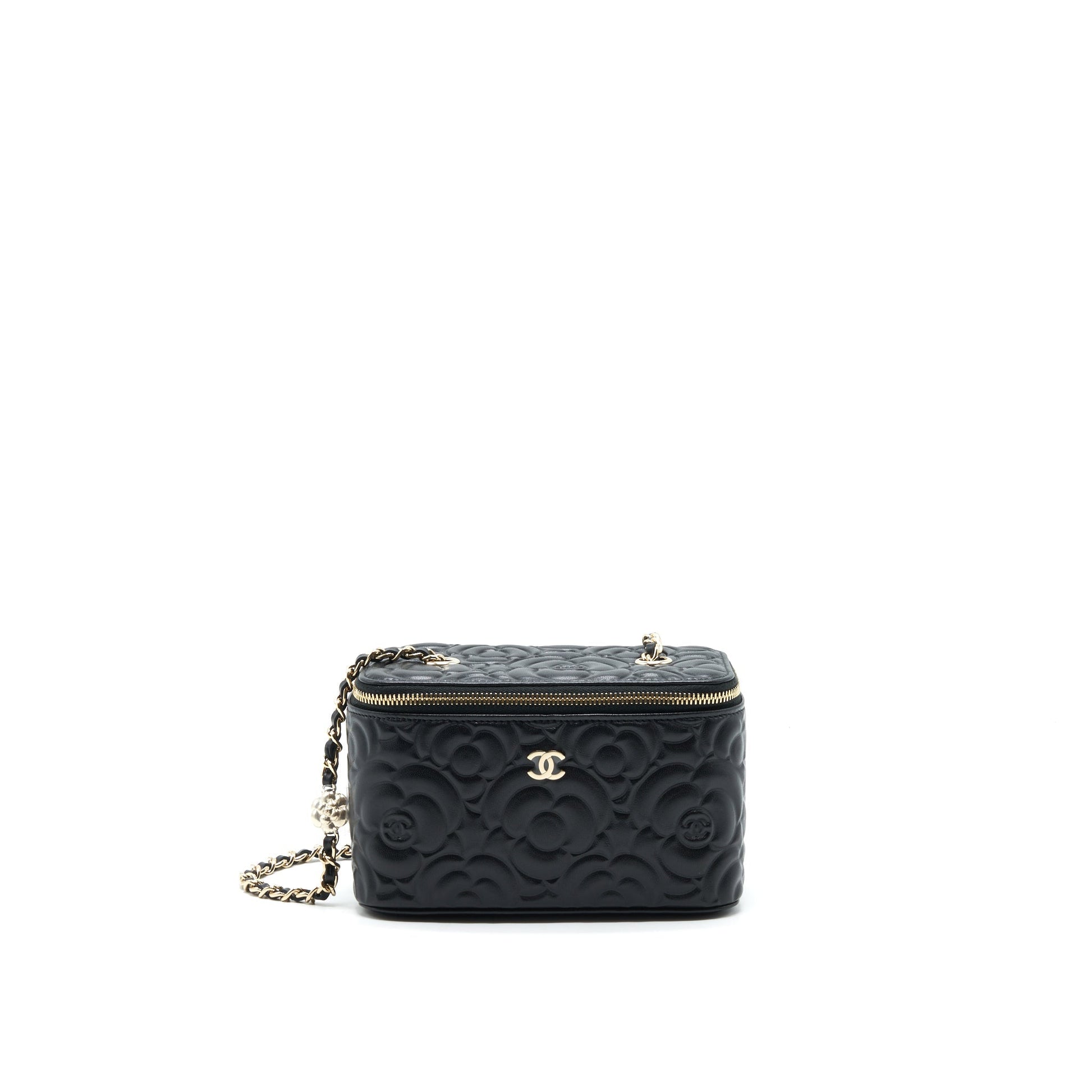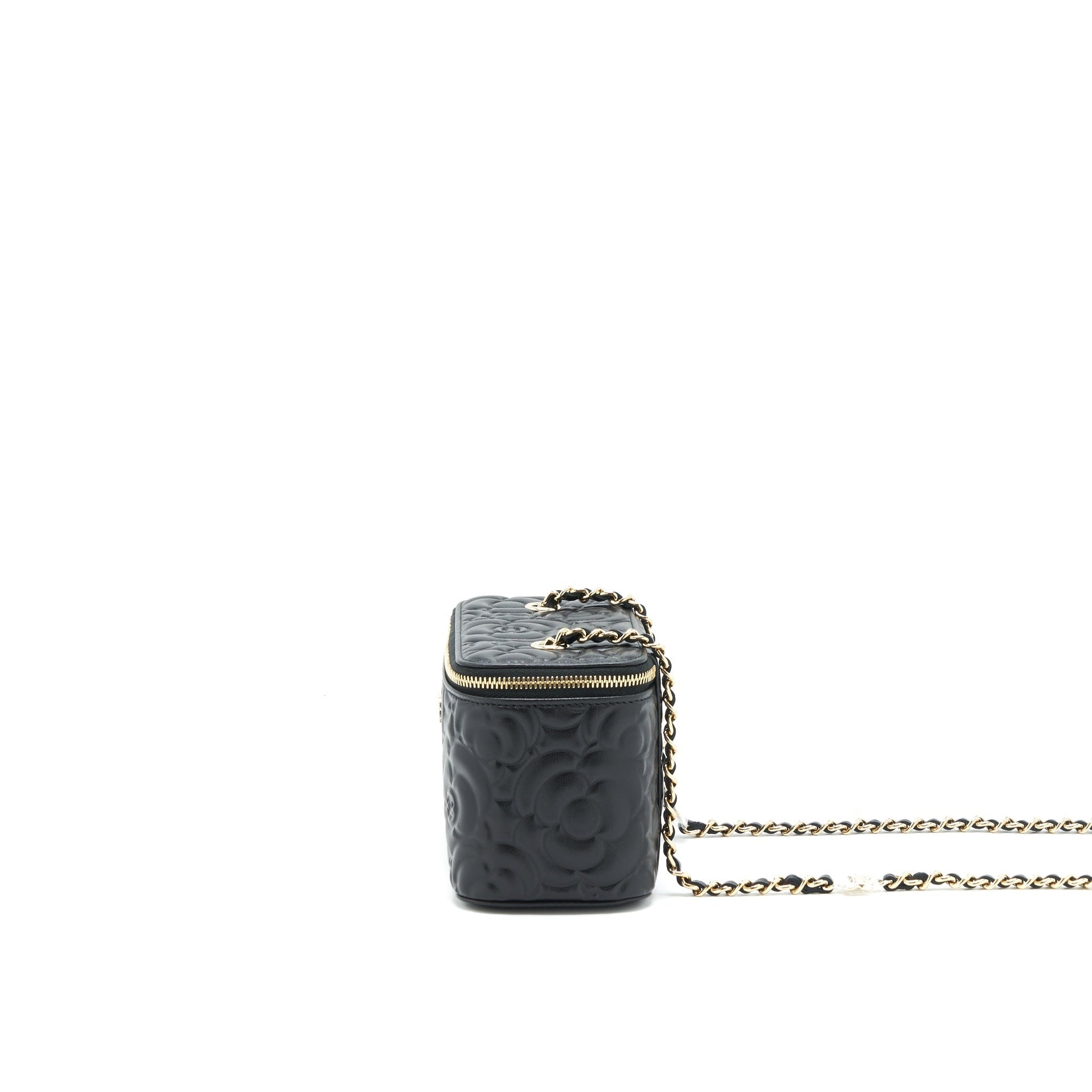 Chanel Camellia Long vanity with chains lambskin black LGHW