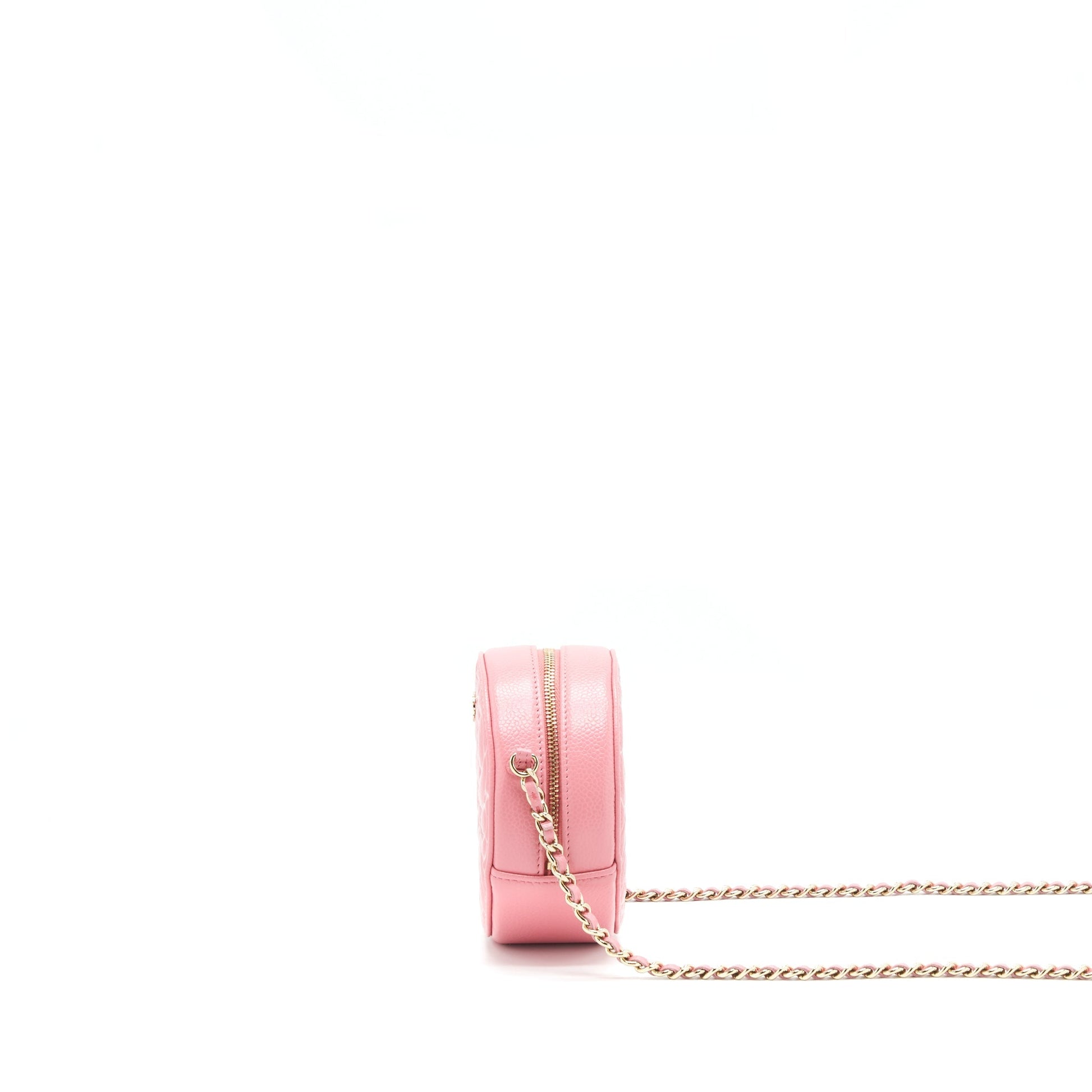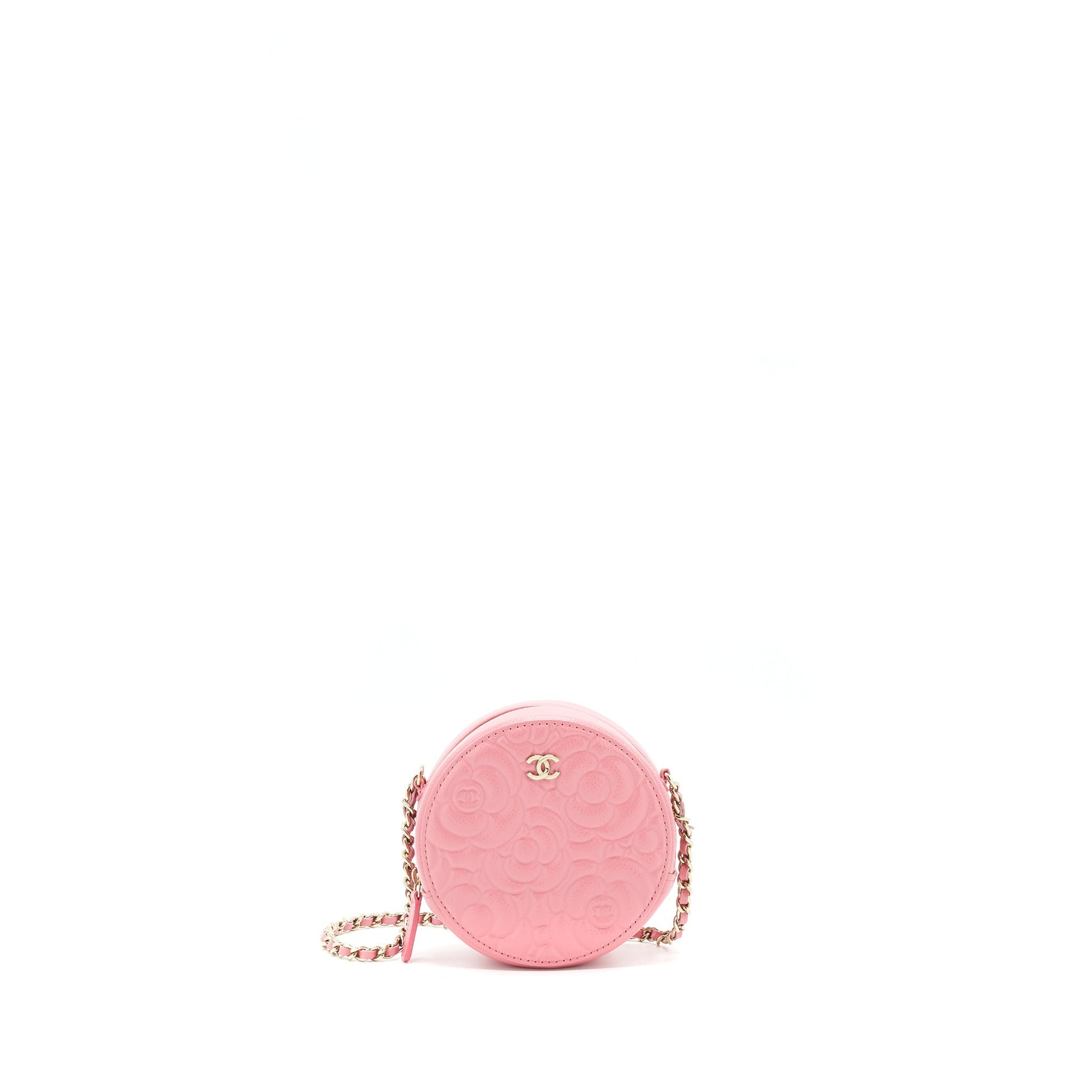 Chanel Camellia Round Clutch With Chain Pink LGHW