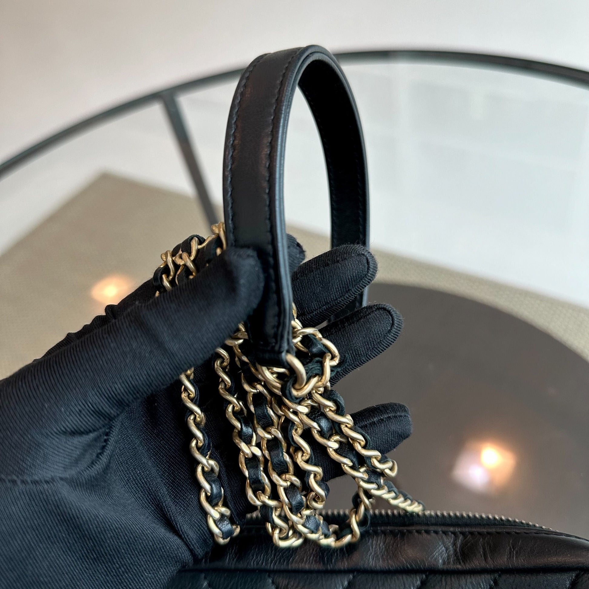 Chanel Camera Bag - Chevron Calfskin Small Black Shoulder Bag Series 21