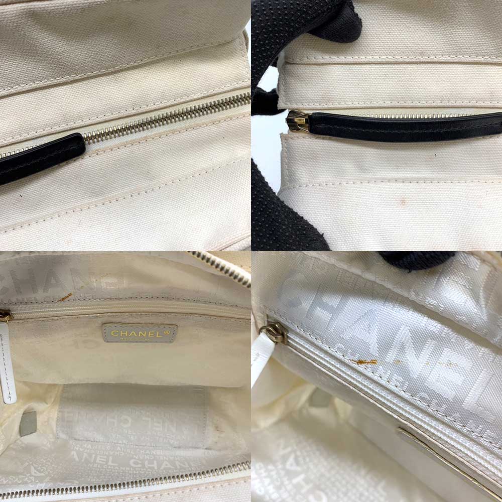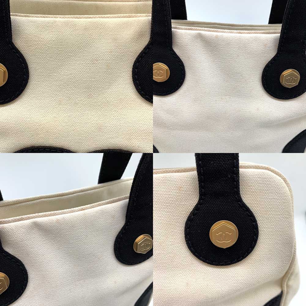 Item name : Chanel Canvas Marshmallow Handbag Ivory Black