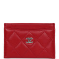 Chanel Card Holder Wallet Red Lambskin Silver Hardware