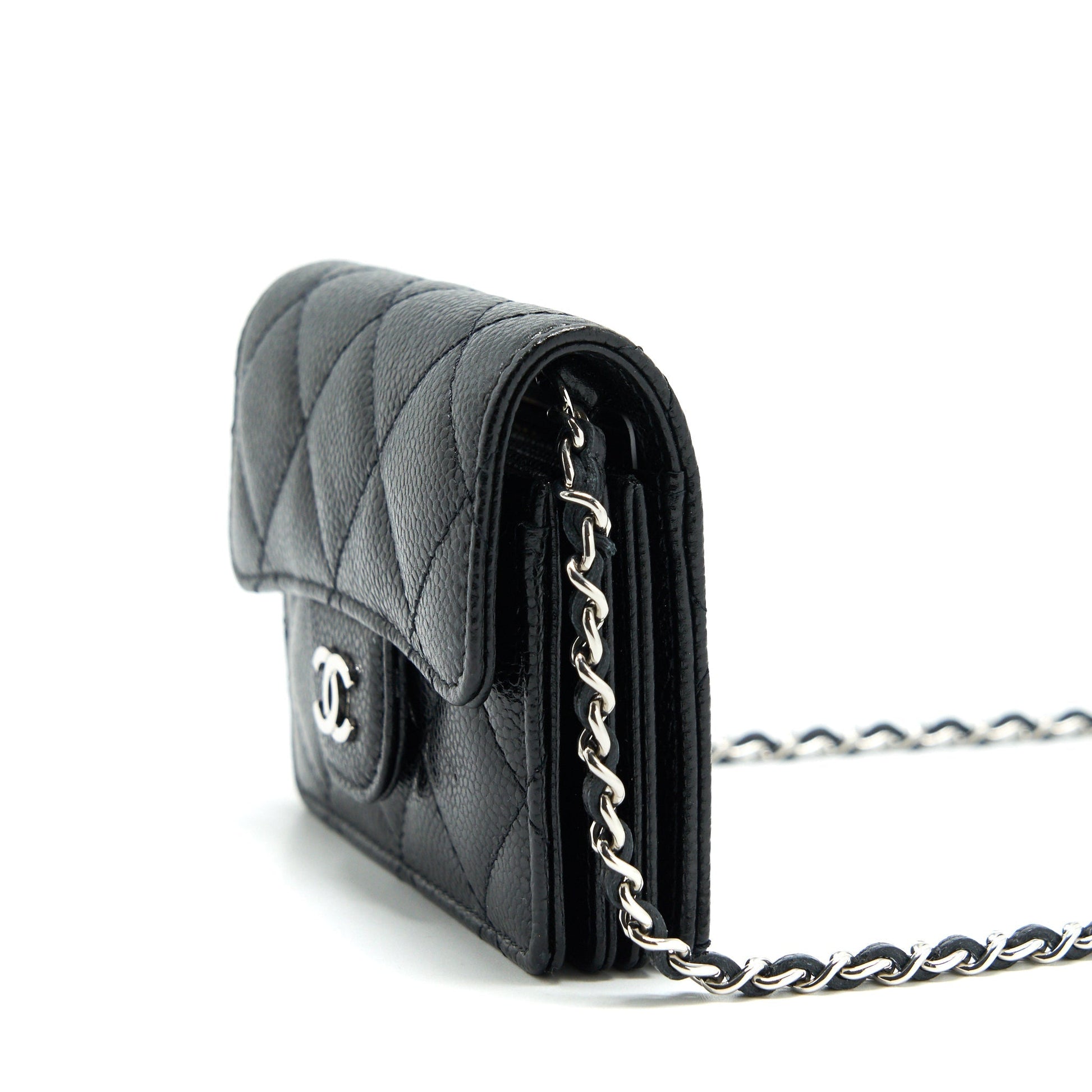 Chanel Card Holder With Chain Black Caviar SHW