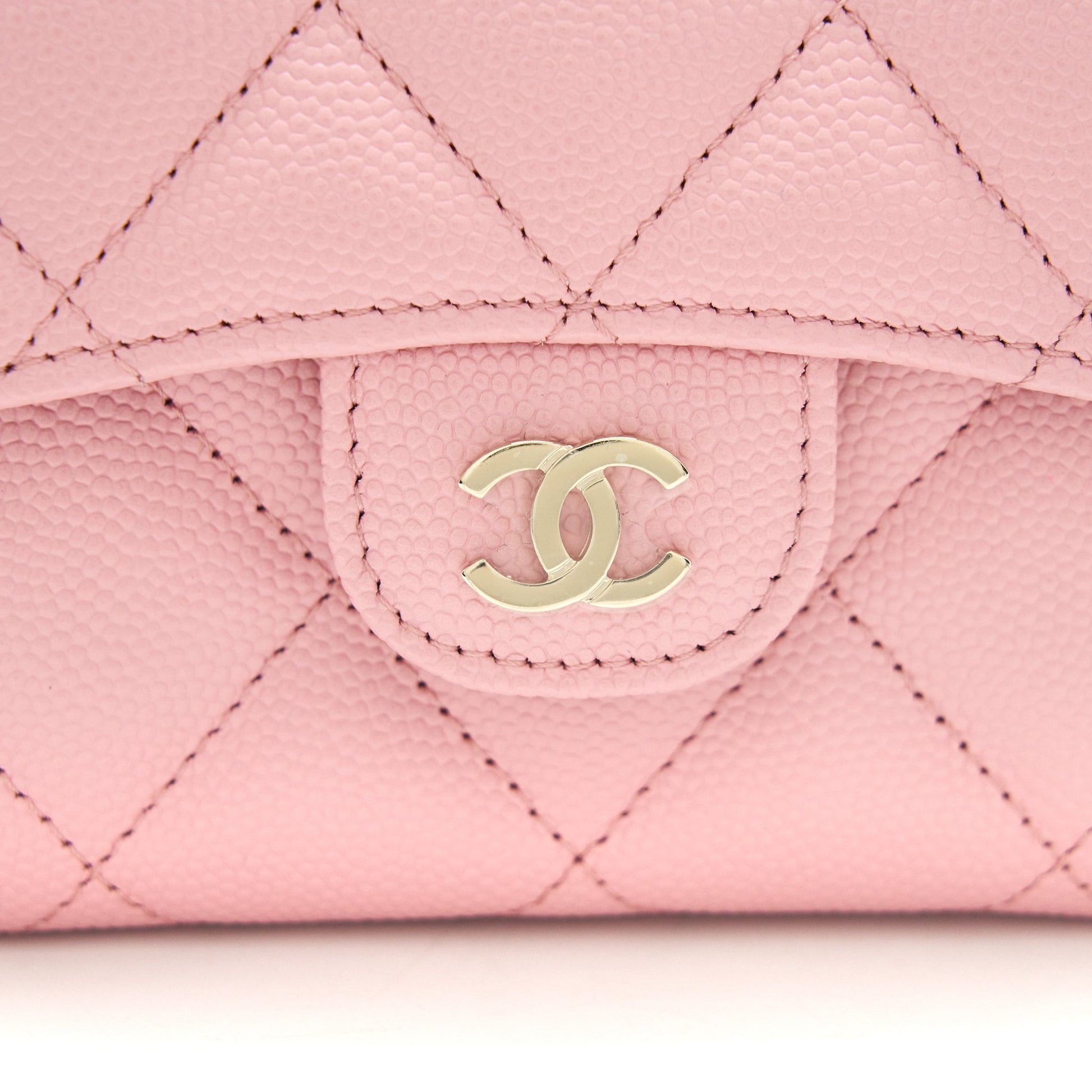 Chanel Card Holder On Chain Caviar Pink LGHW