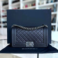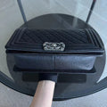 Caviar Boy Medium 25CM Quilted Grained Calfskin Black Leboy Ruthenium Silver Hardware Series 23