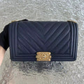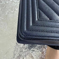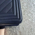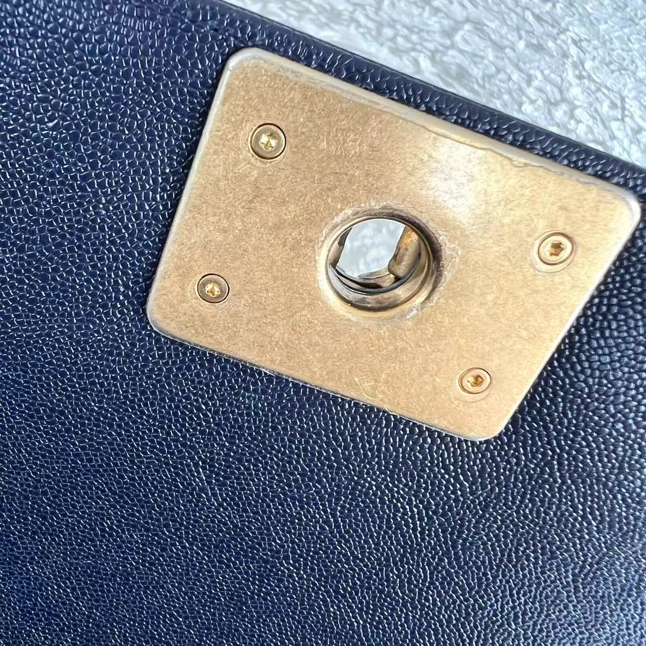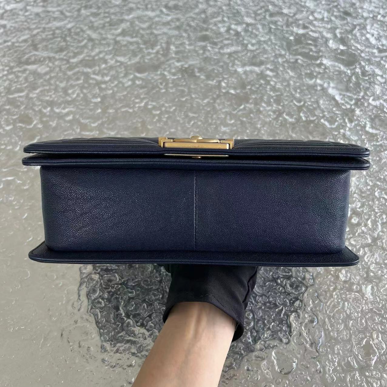 Caviar Boy Old Medium 25CM Chevron Grained Calfskin Dark Blue Leboy Golden Hardware Series 26