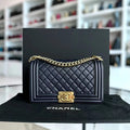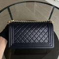 Caviar Boy Old Medium 25CM Quilted Calfskin Dark Blue Leboy GHW No 23
