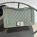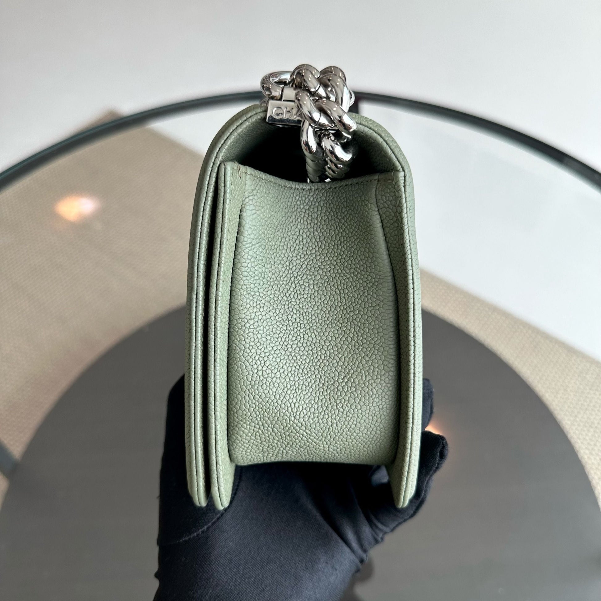 Caviar Boy Old Medium 25CM Quilted Calfskin Leboy Green SHW No 25