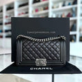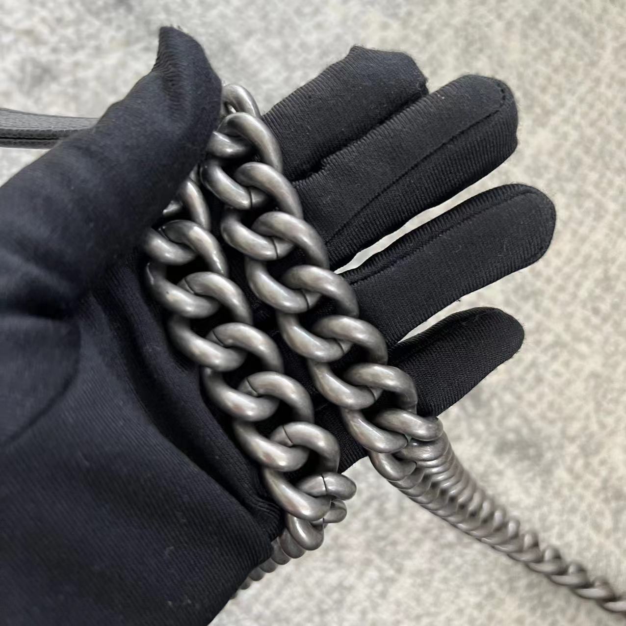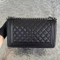 Caviar Boy Old Medium 25CM Quilted Grained Calfskin Black Leboy Ruthenium Silver Hardware Series 19