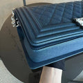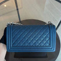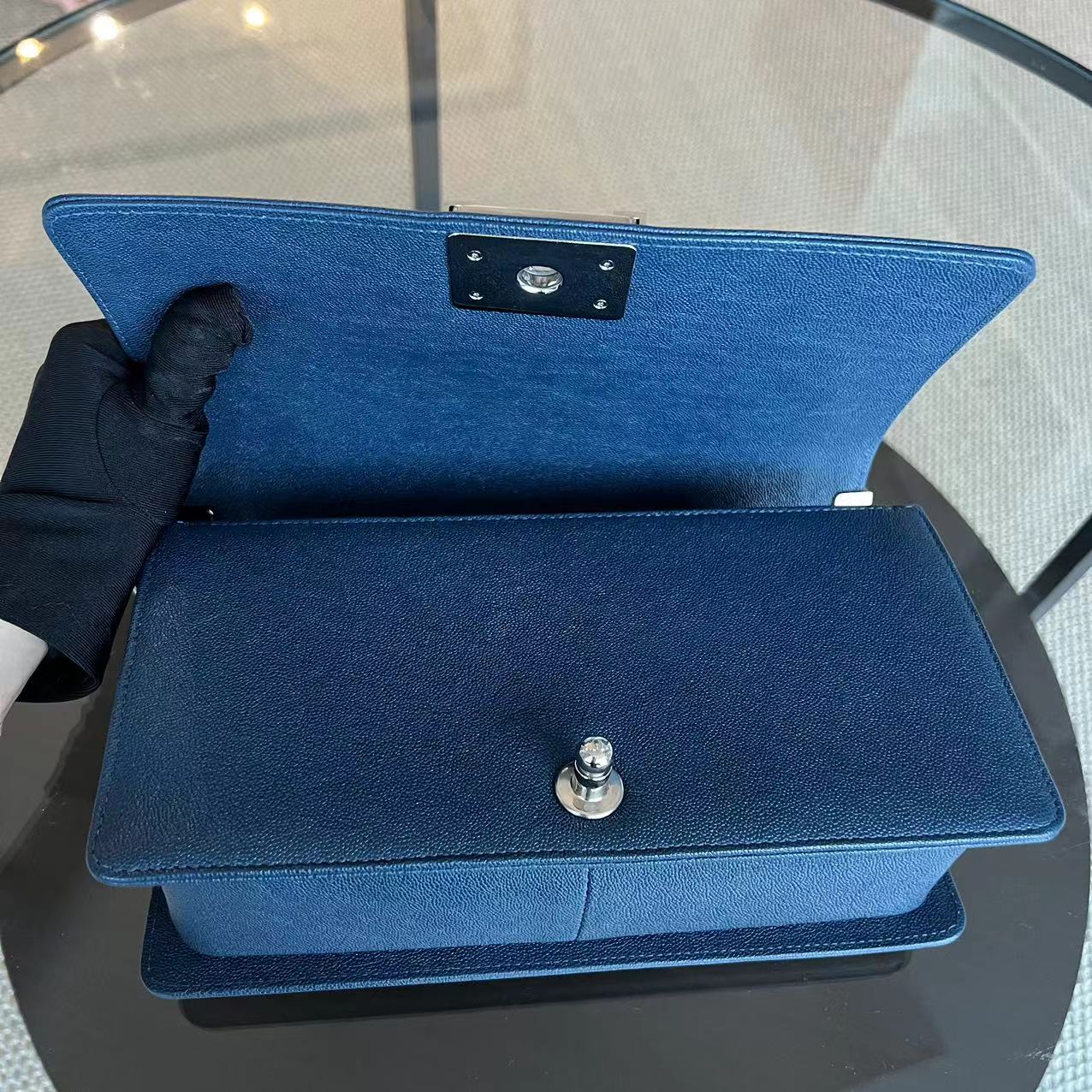 Caviar Boy Old Medium 25CM Quilted Grained Calfskin Blue Leboy Silver Hardware Series 28