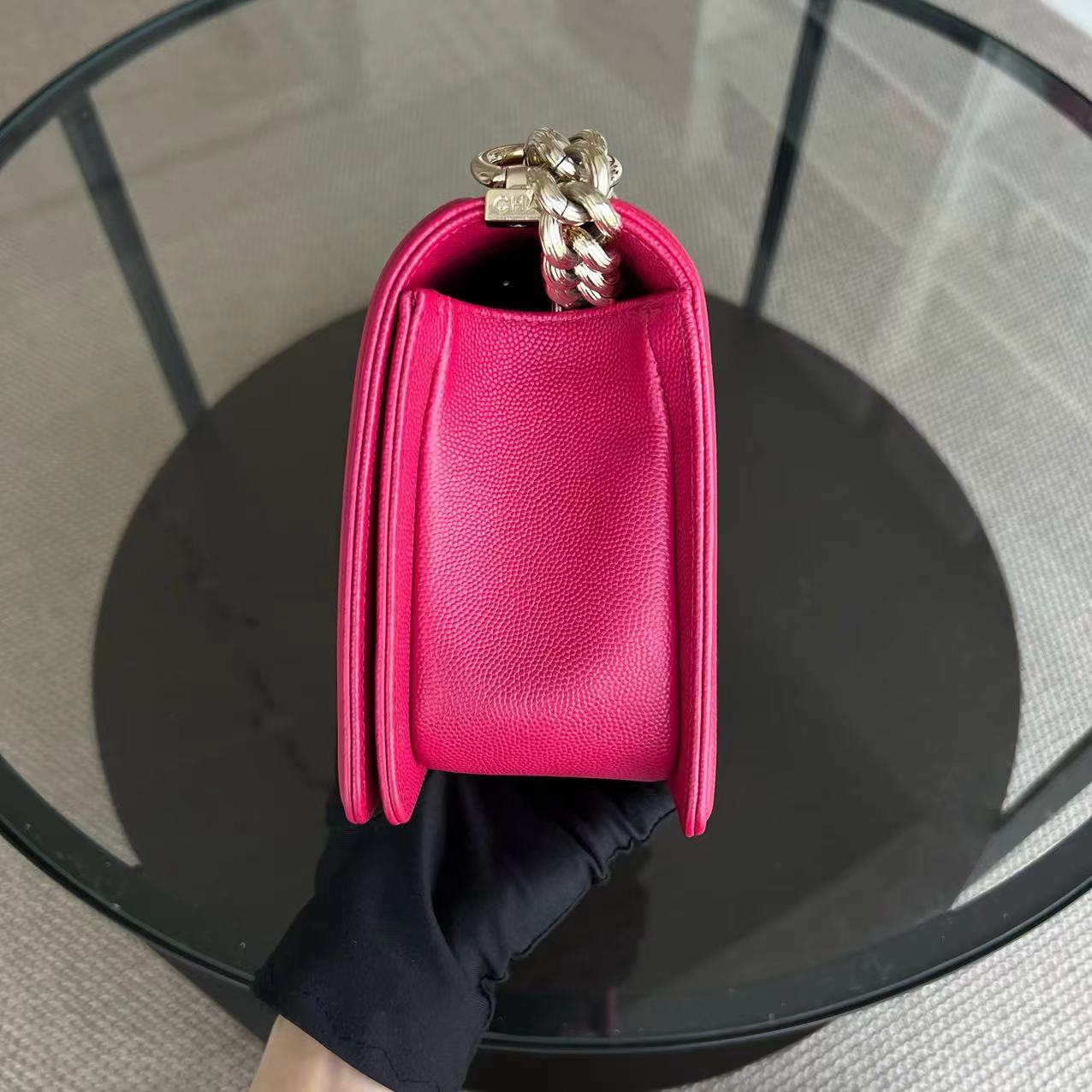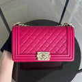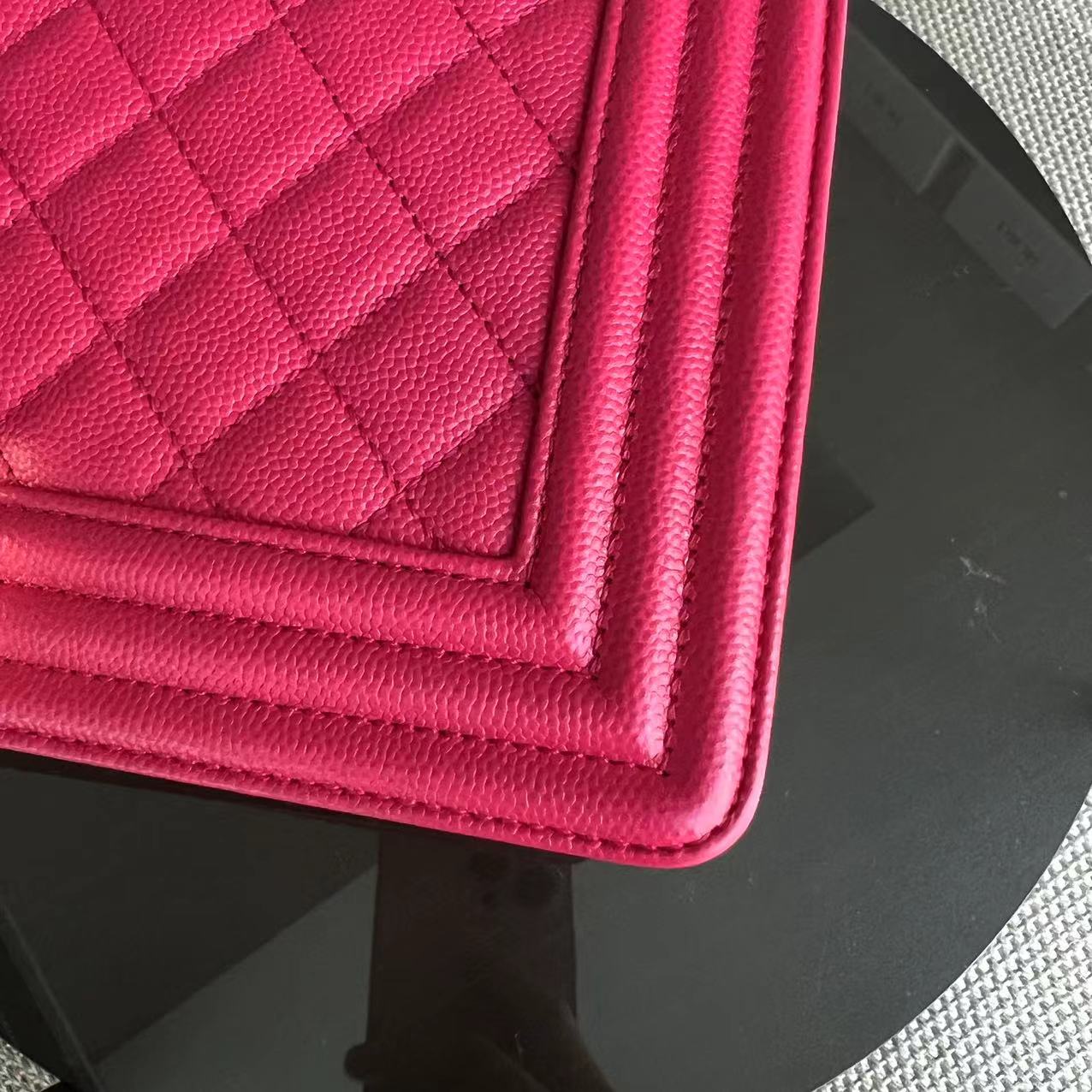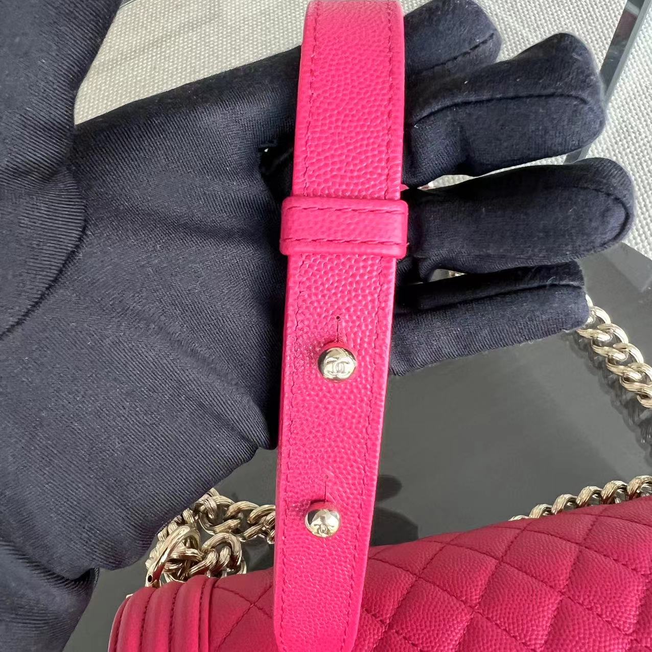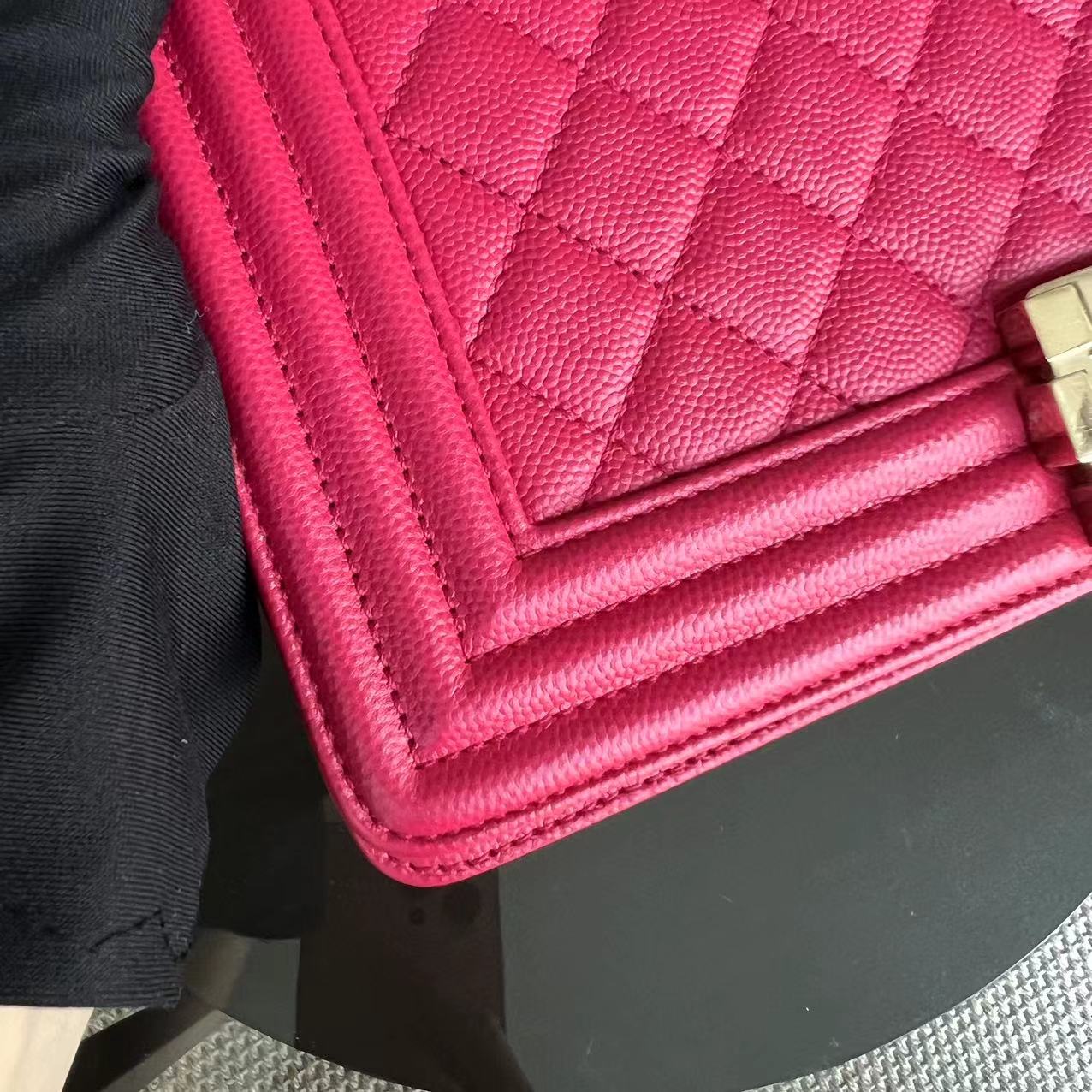 Caviar Boy Old Medium 25CM Quilted Grained Calfskin Hot Pink Golden Hardware Series 23
