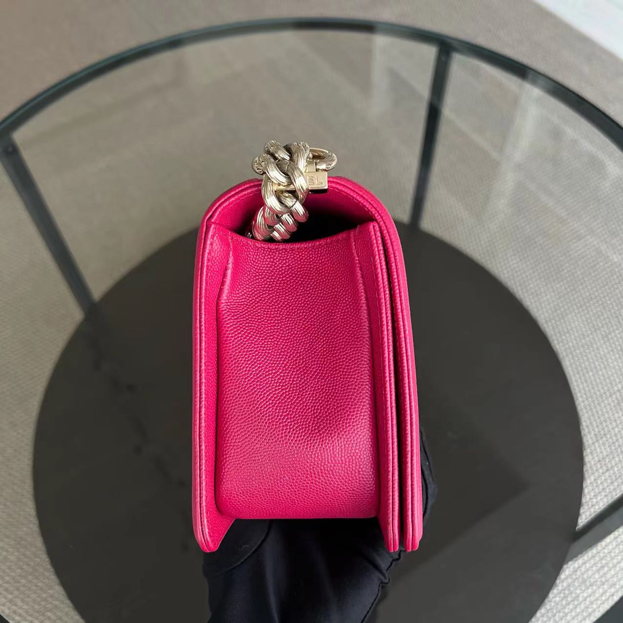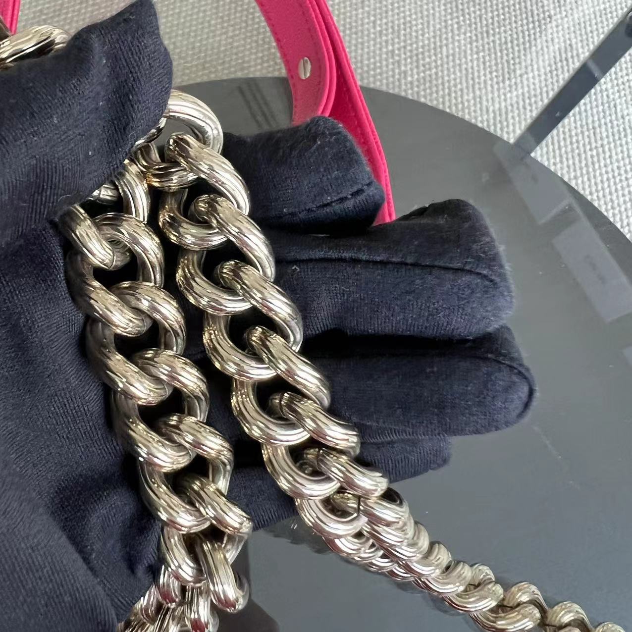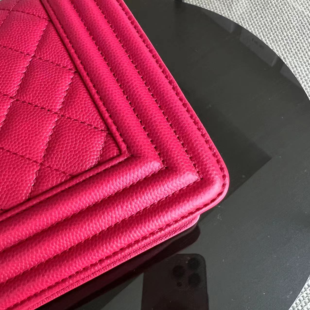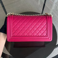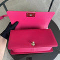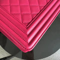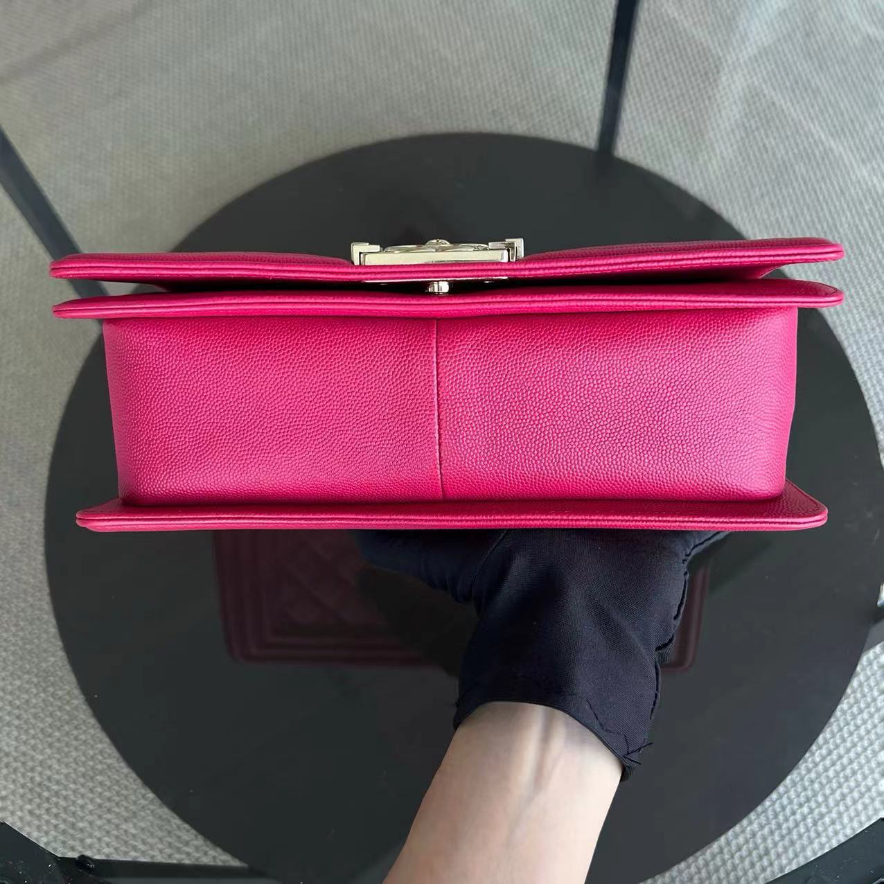 Caviar Boy Old Medium 25CM Quilted Grained Calfskin Hot Pink Golden Hardware Series 23