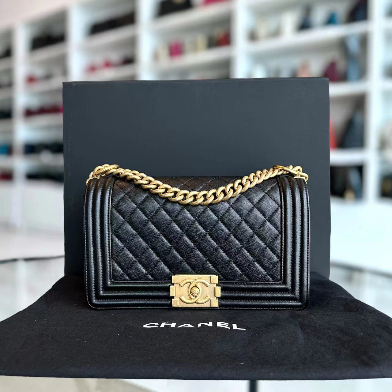 Chanel Caviar Boy Old Medium 25CM Quilted Grained Calfskin Leboy Black GHW