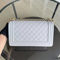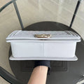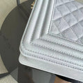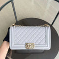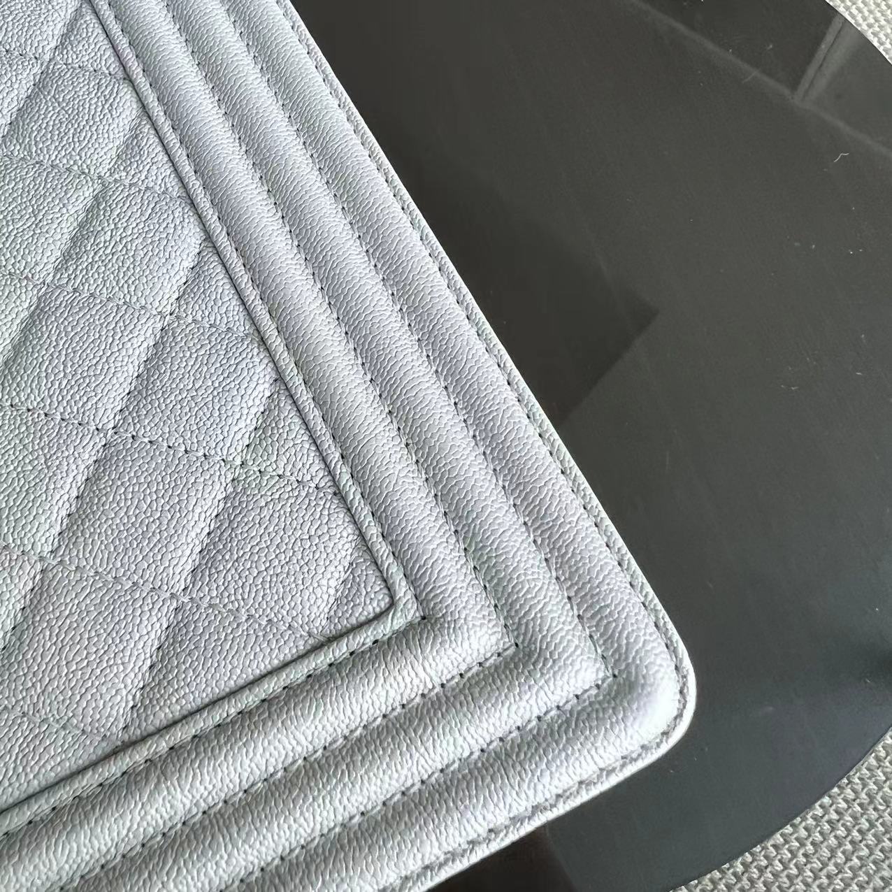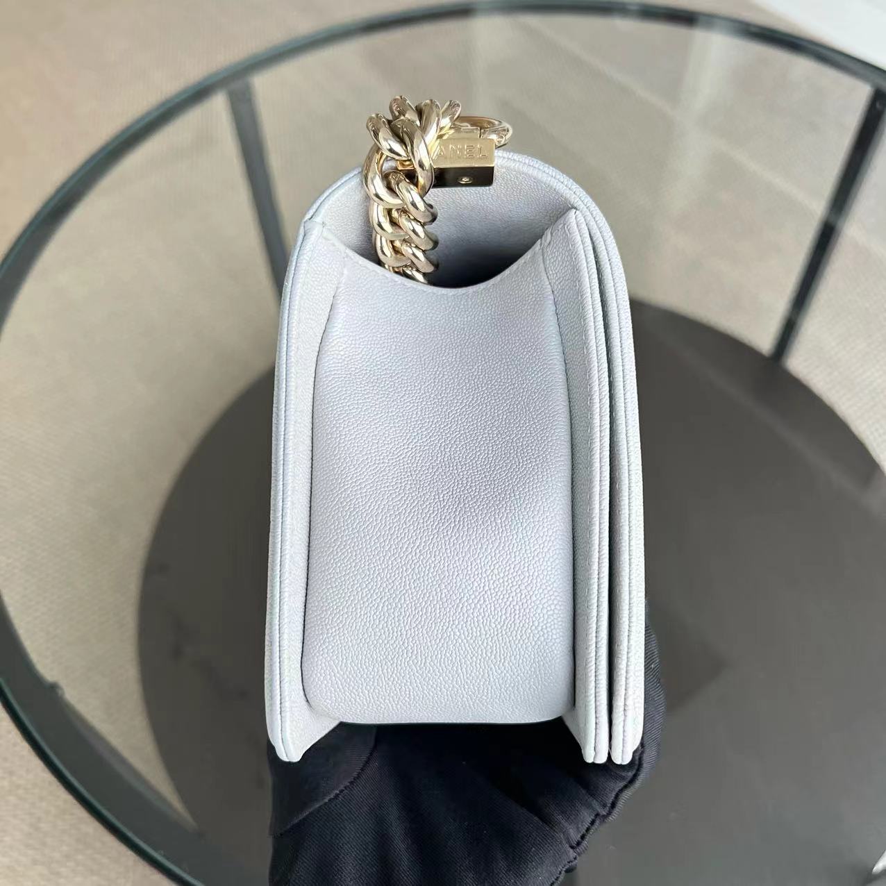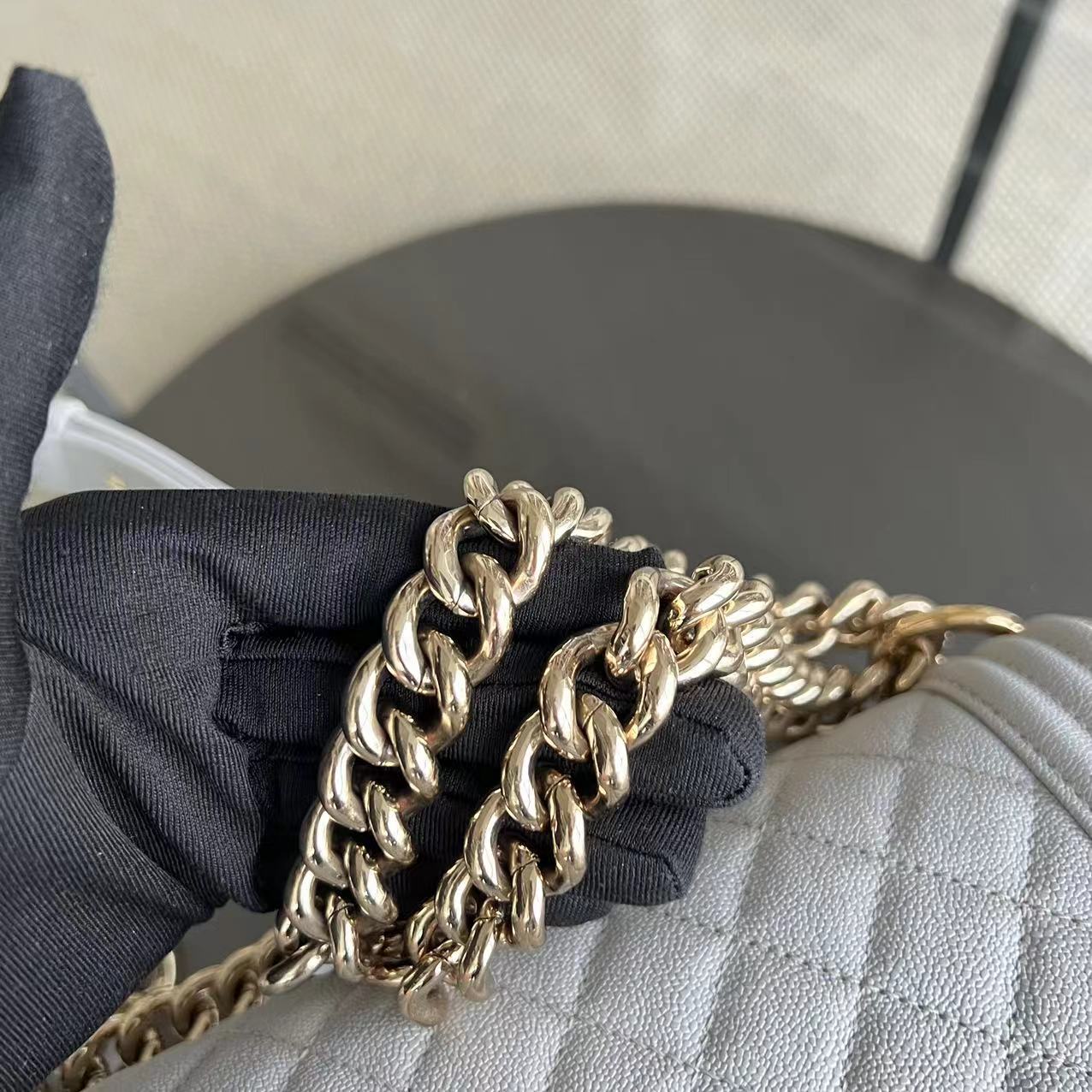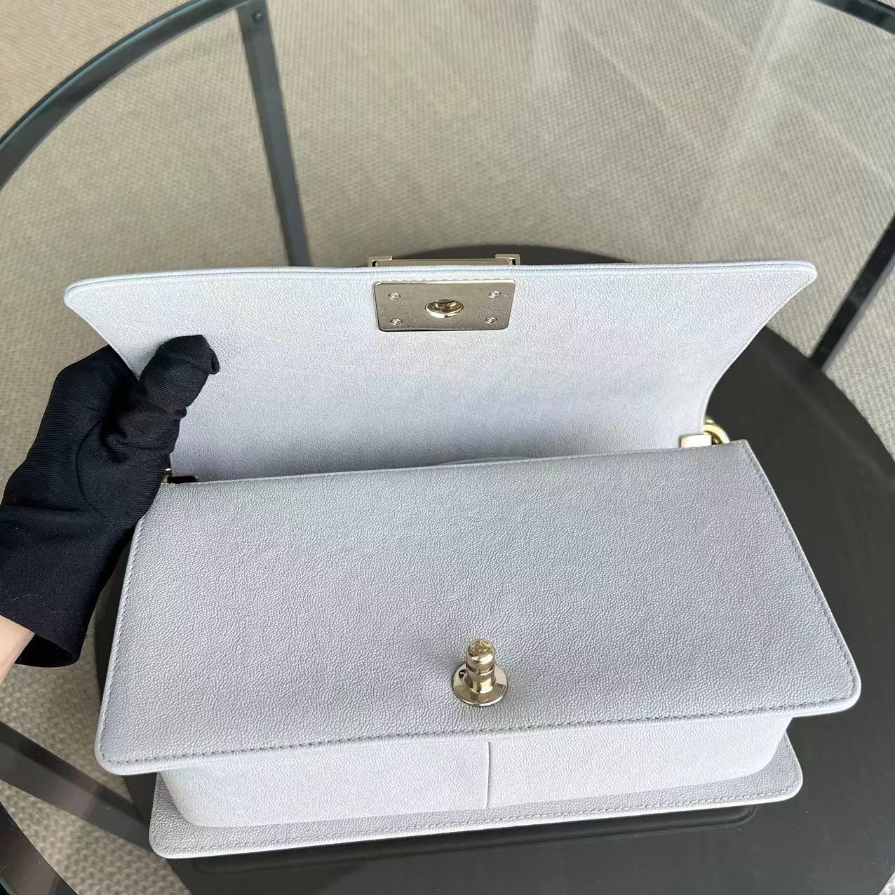 Caviar Boy Old Medium 25CM Quilted Grained Calfskin Light Grey Gray Golden Hardware Series 28