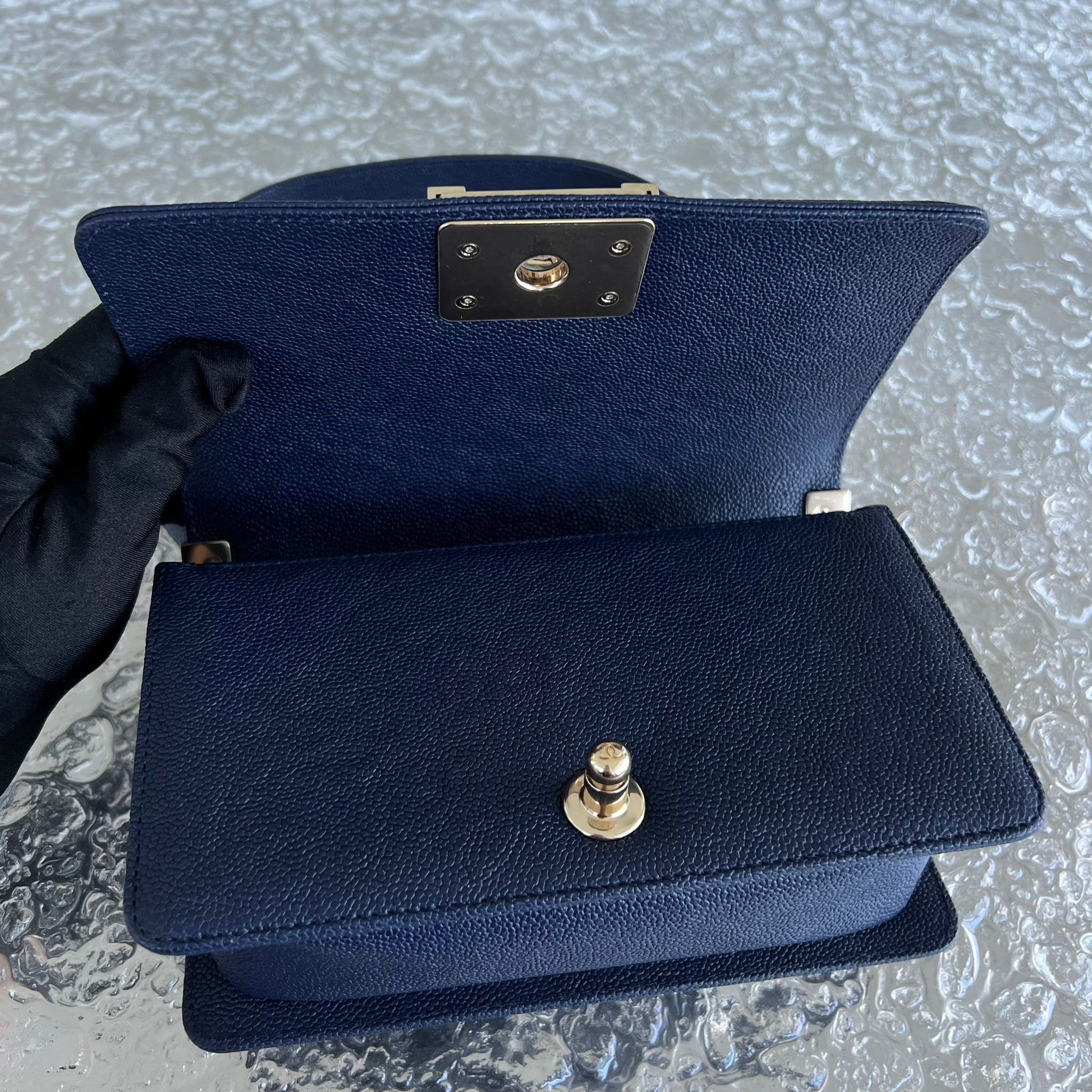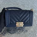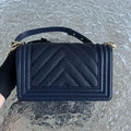 Chanel Caviar Boy Small 20CM Chevron Grained Calfskin Dark Blue No 24