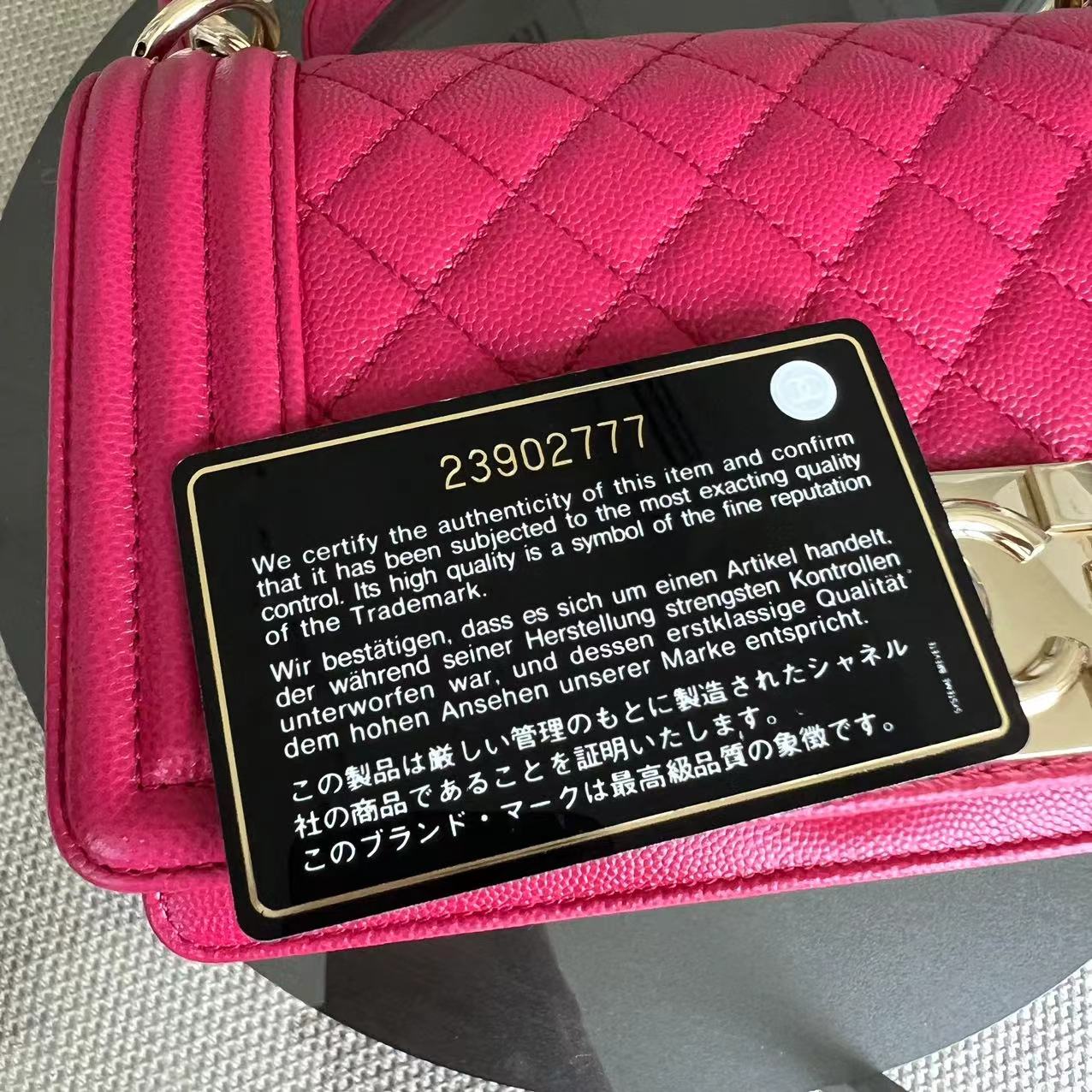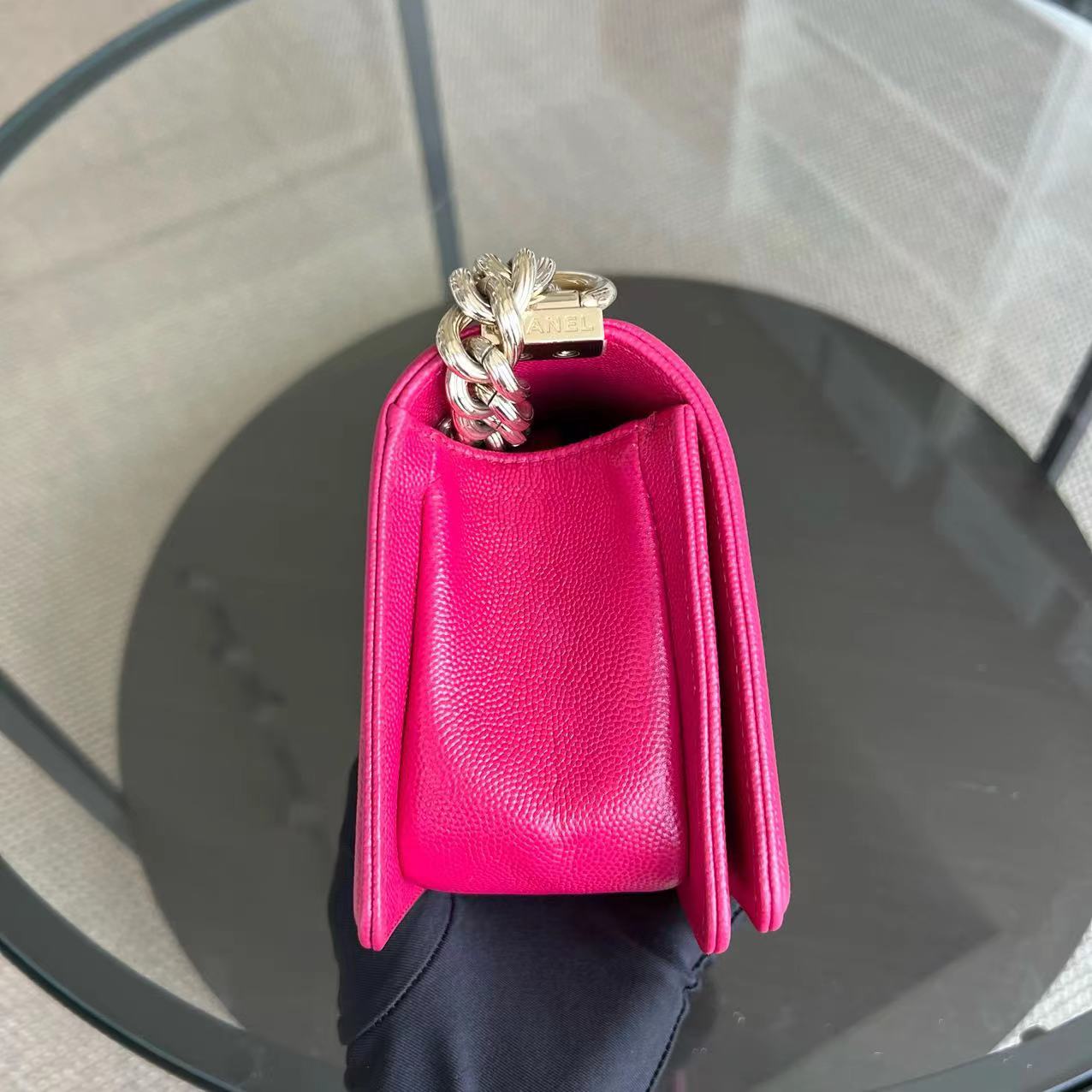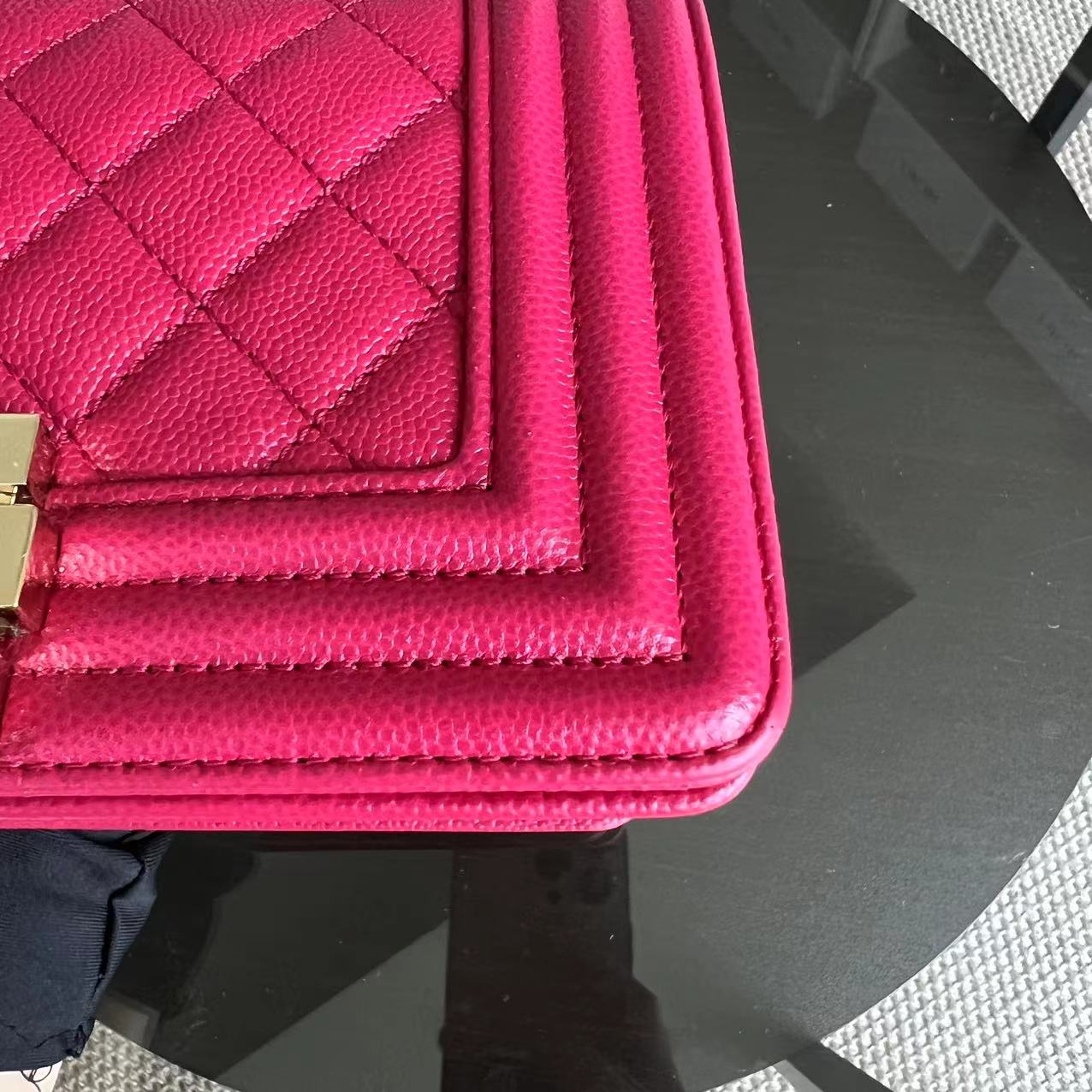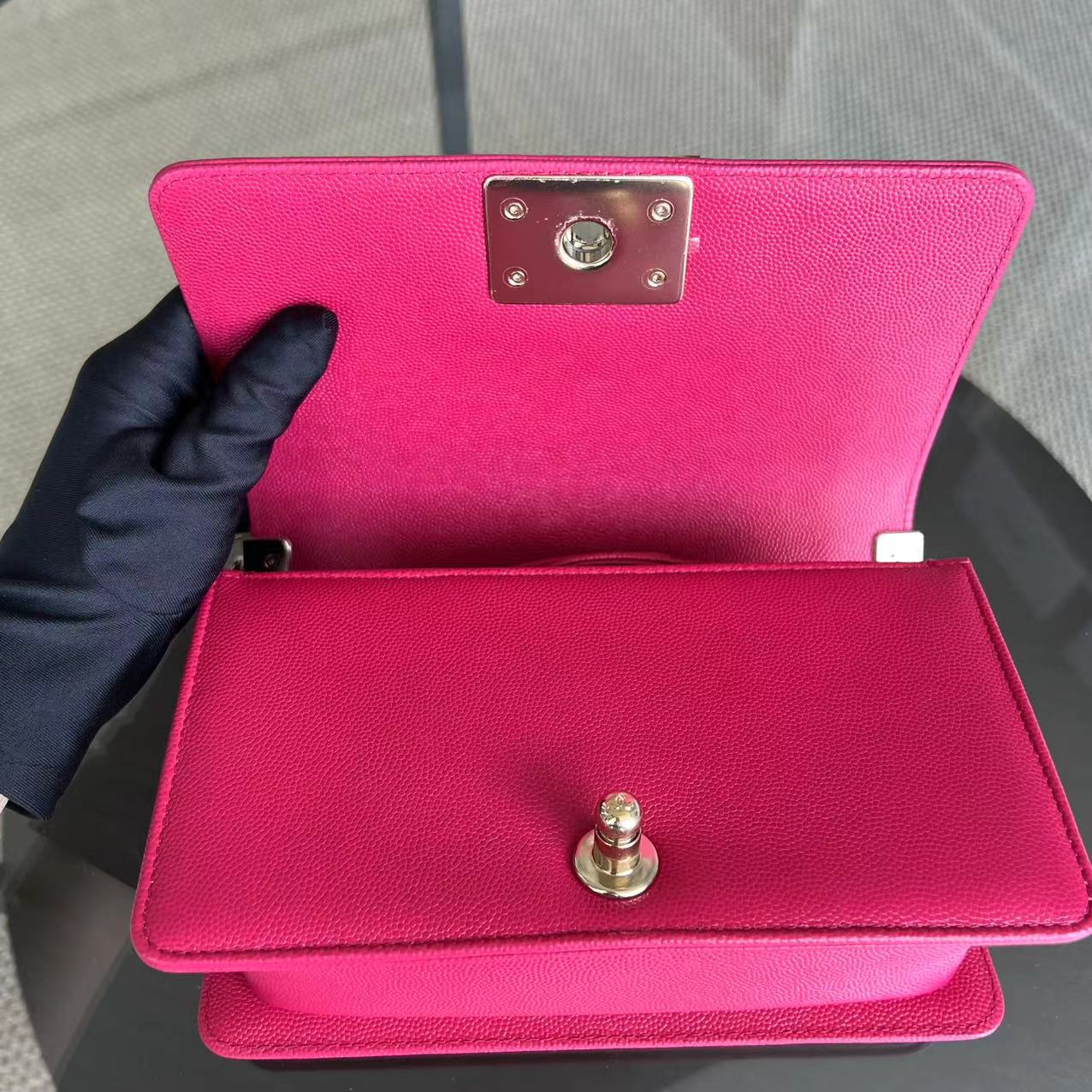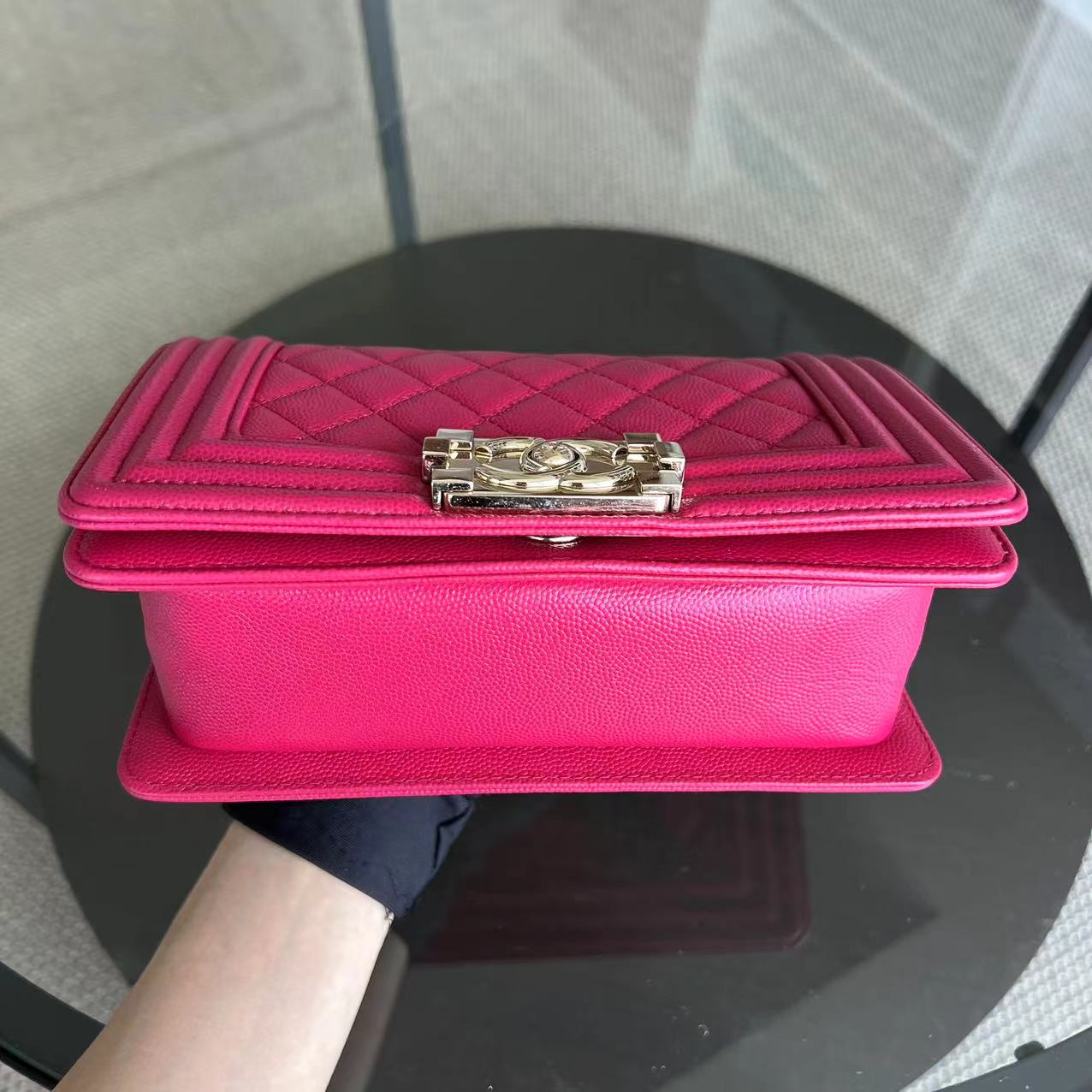 Caviar Boy Small 20CM Quilted Grained Calfskin Hot Pink Leboy Golden Hardware Series 23