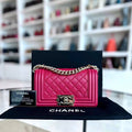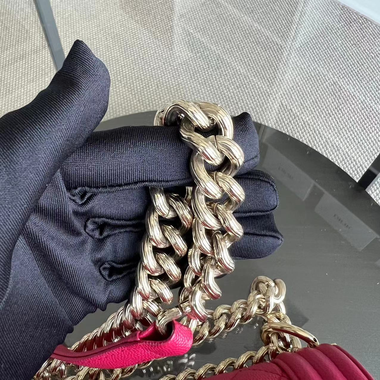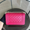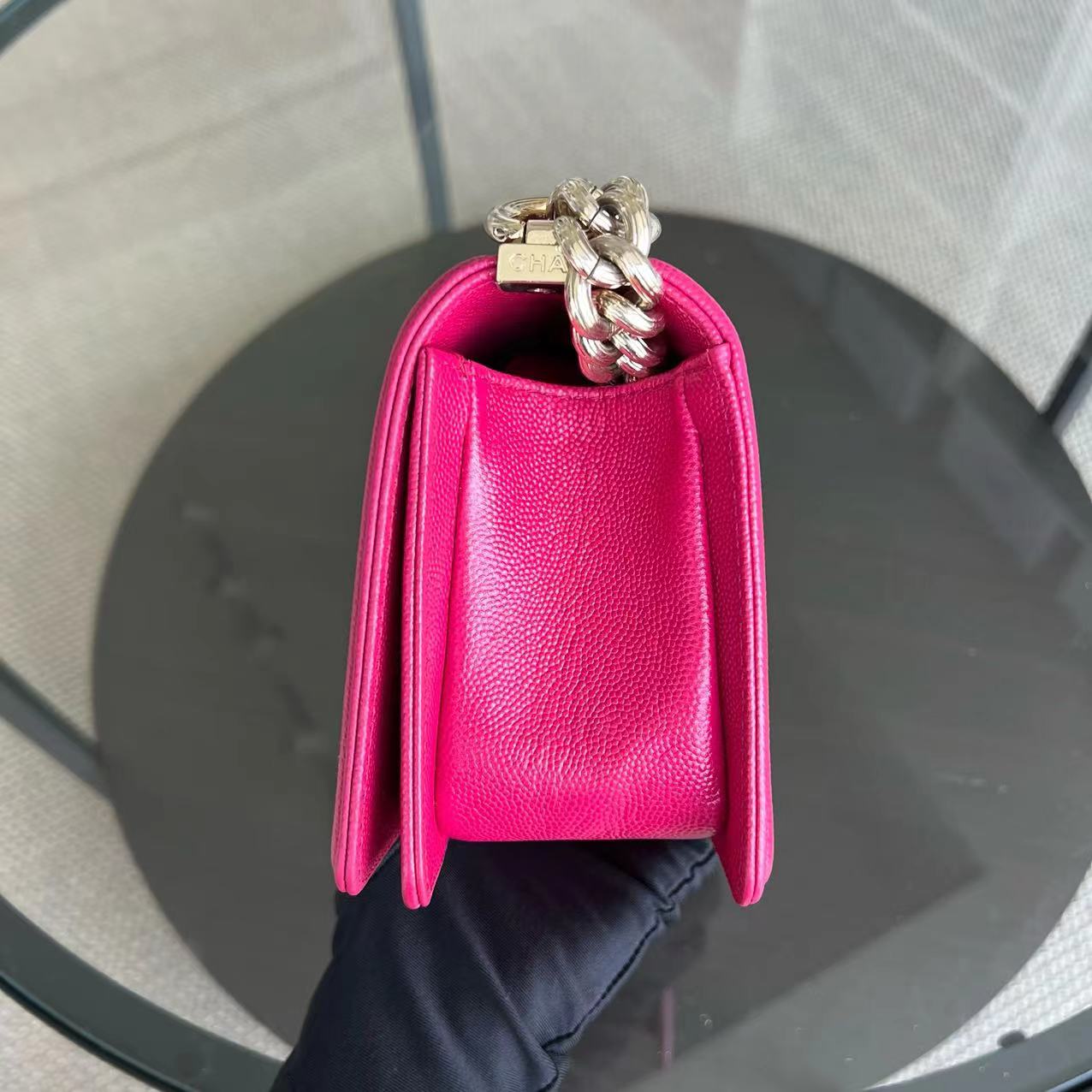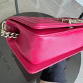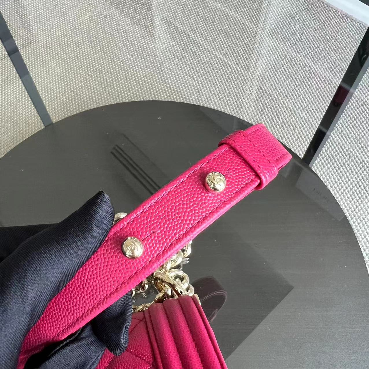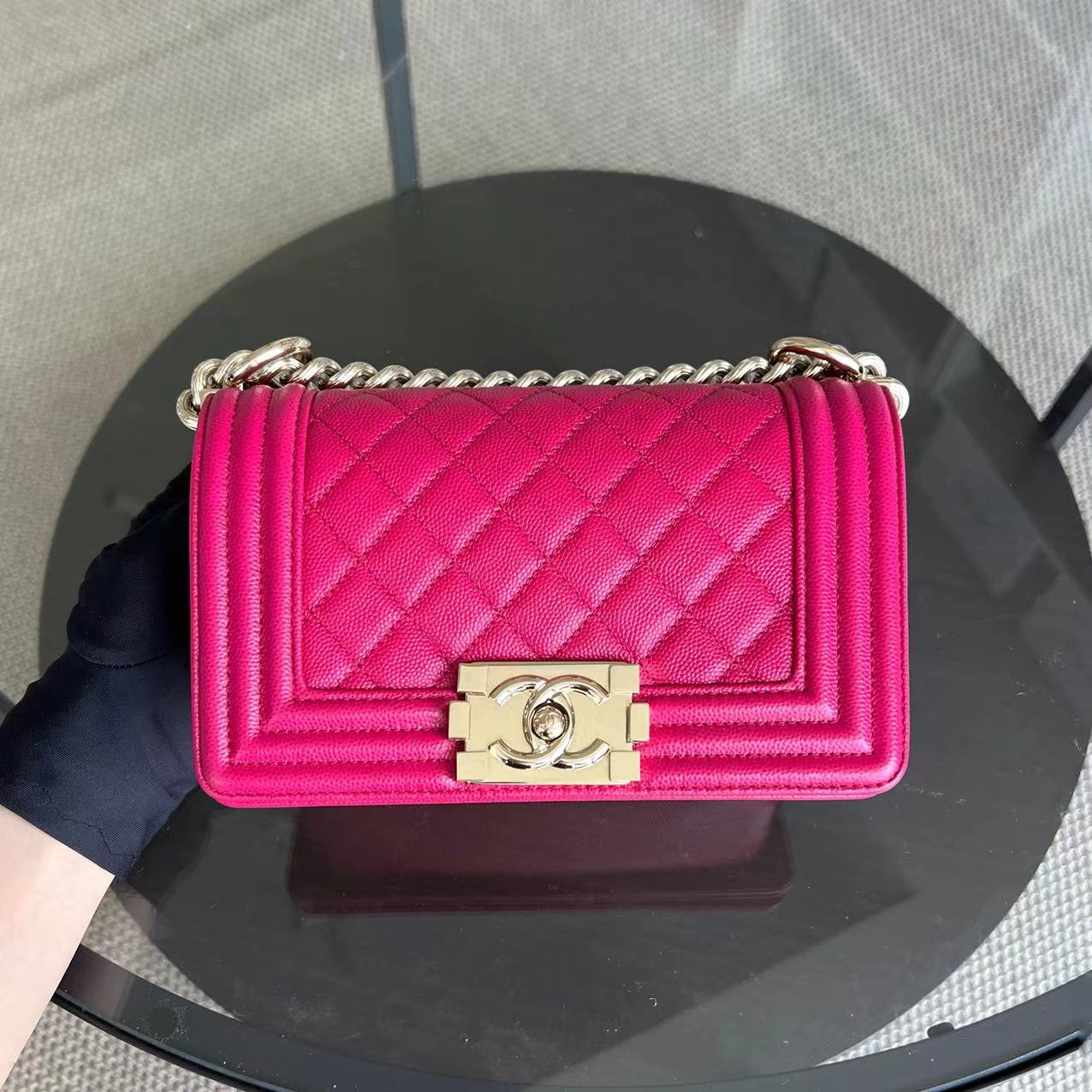 Caviar Boy Small 20CM Quilted Grained Calfskin Hot Pink Leboy Golden Hardware Series 23